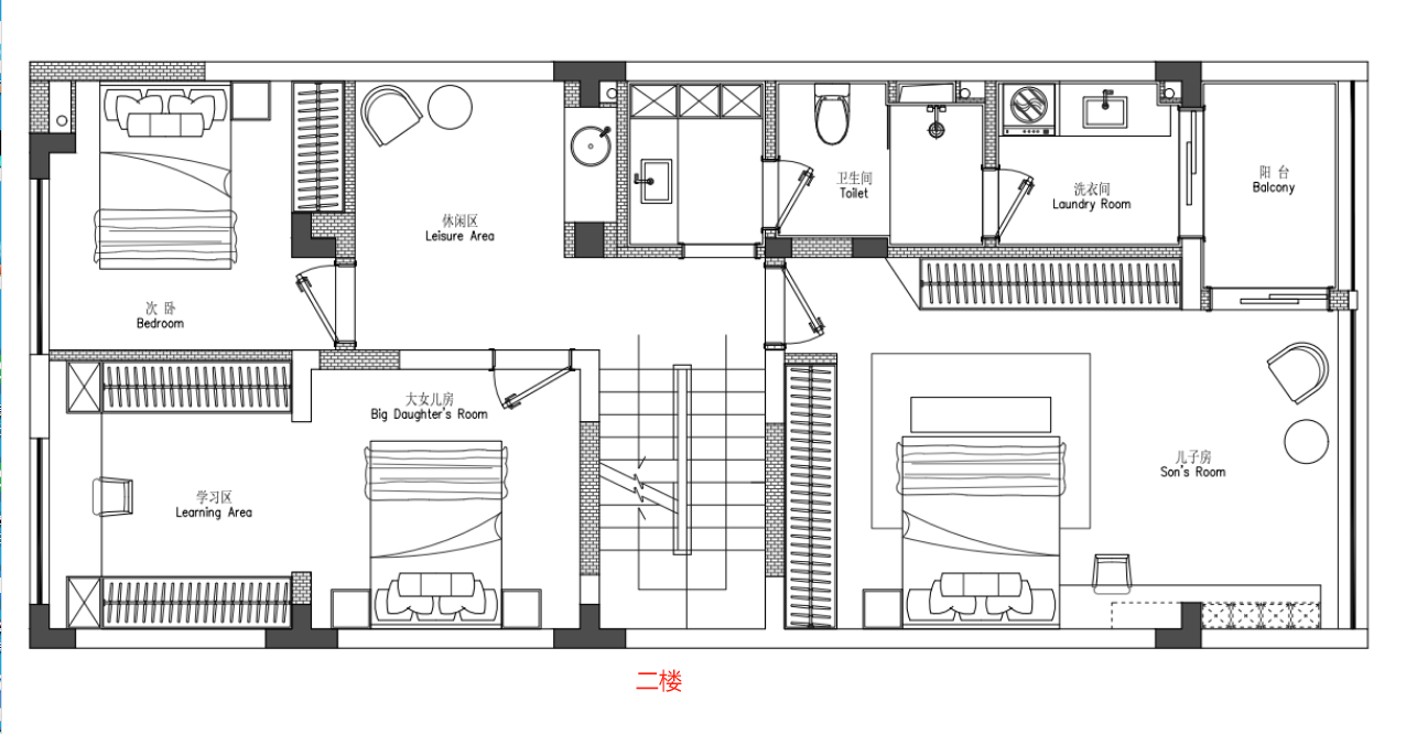 二楼主要是儿童房和老人房还有洗衣房的位置当然也做了水吧区方便小朋友接待自己的朋友