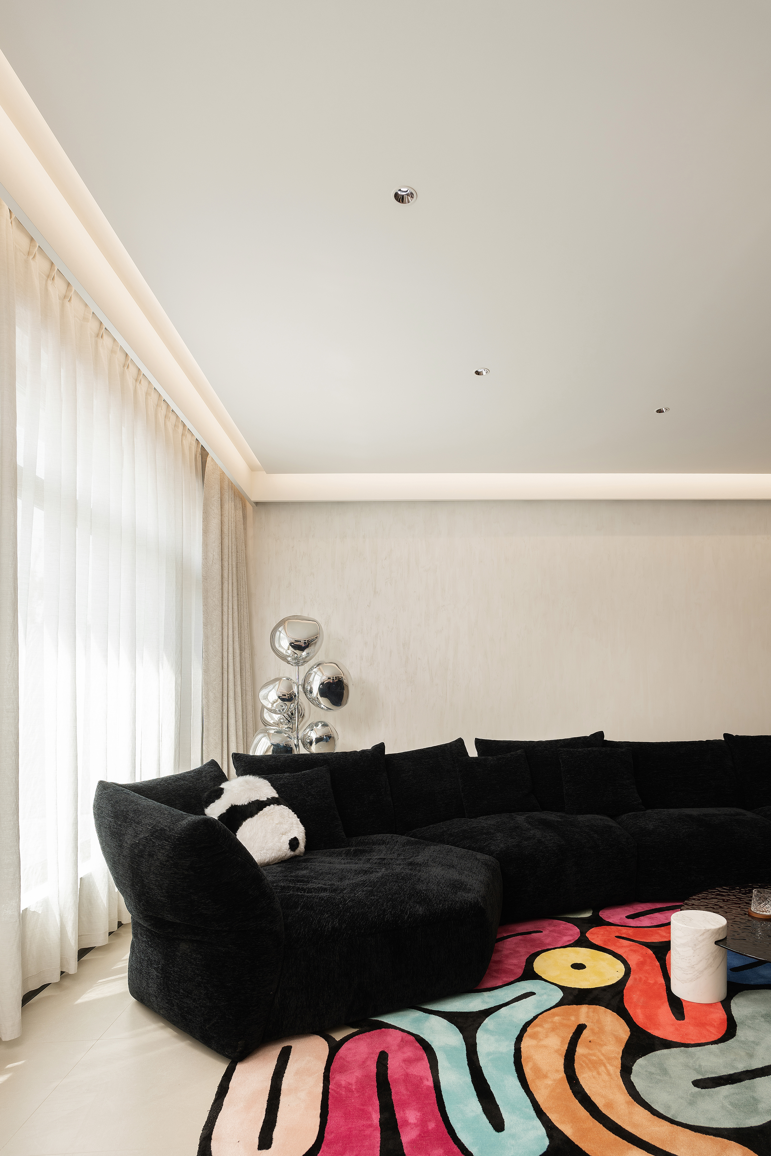 起居室改变传统布局,结合意式家具增加了整体空间氛围感。