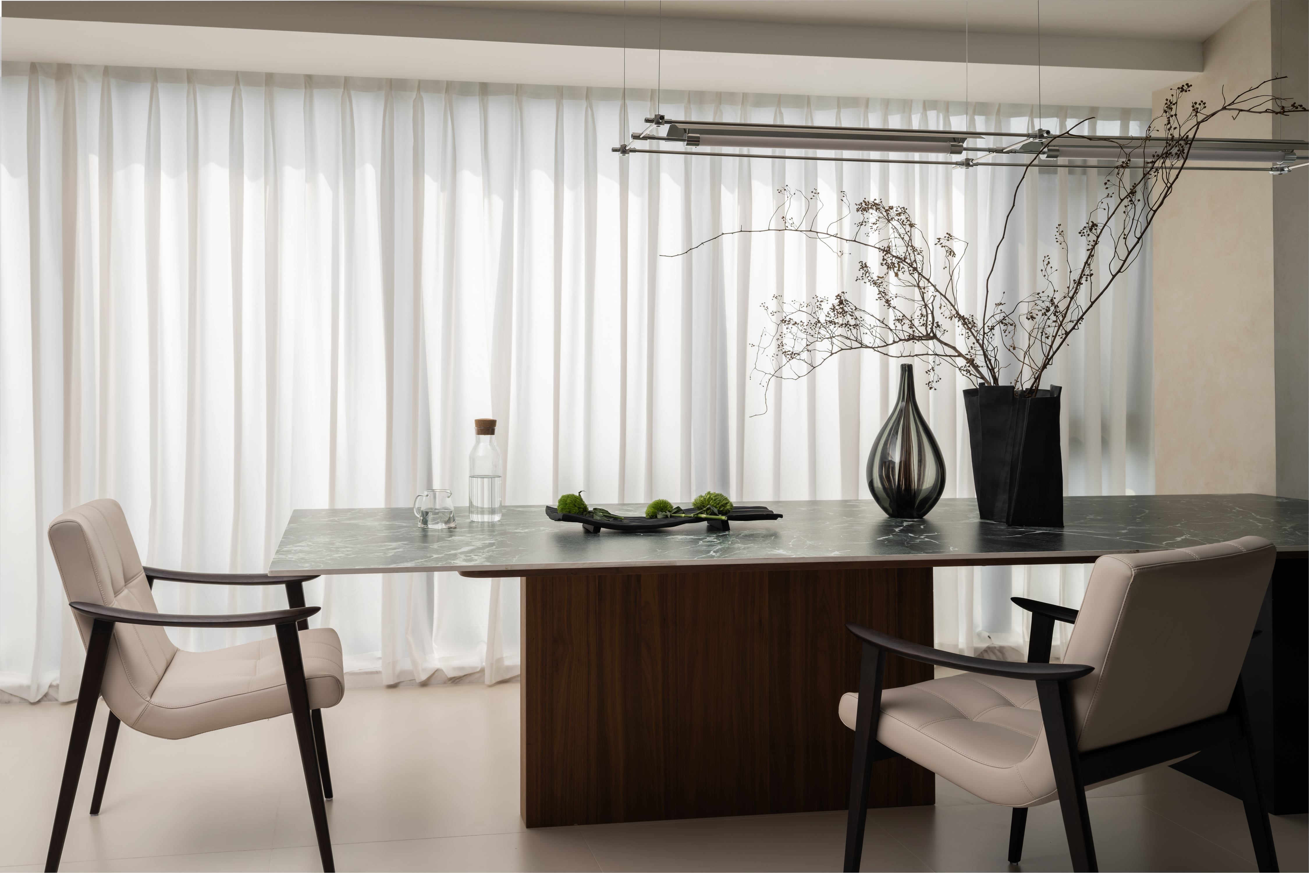 这张3米长的的大餐桌足以满足一家四口的日常用餐需求,即使在节假日有朋友来访,也能轻松容纳8人共进晚餐。