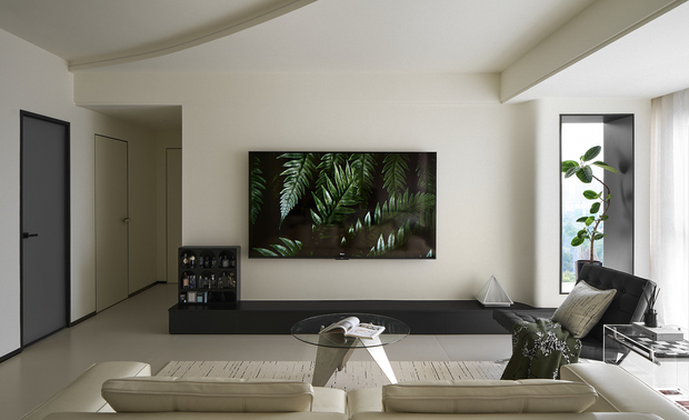 电视背景墙中间的镂空不仅能促进屋内空气的流通,还将电视背景墙向外移动,避免了走路时可能碰撞到电视的边角。