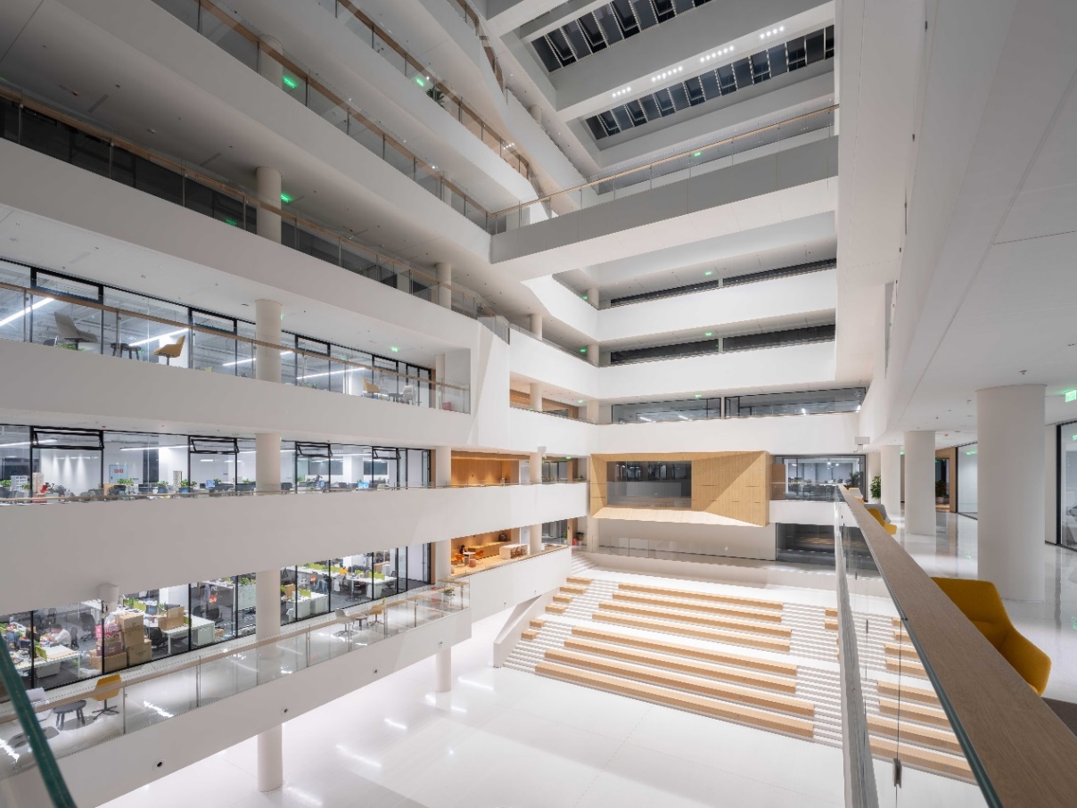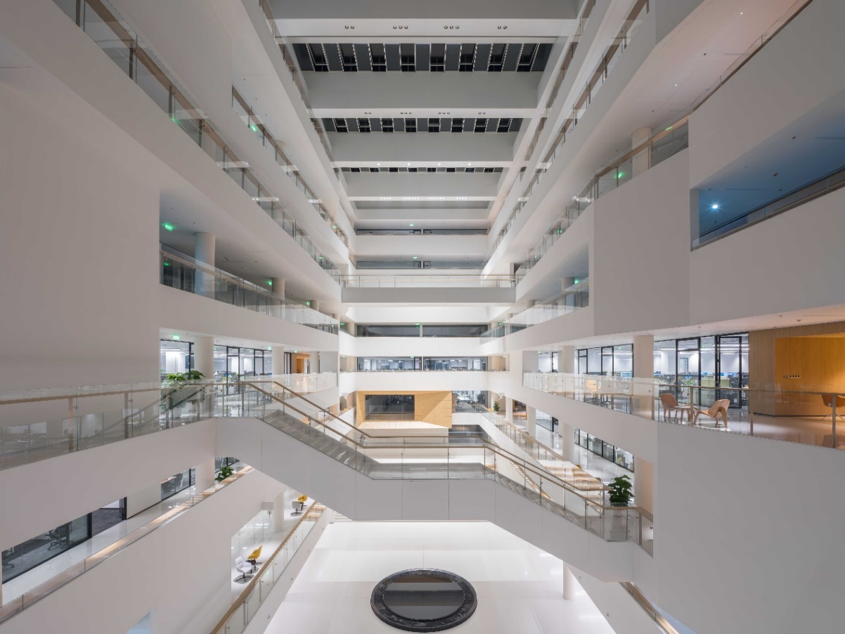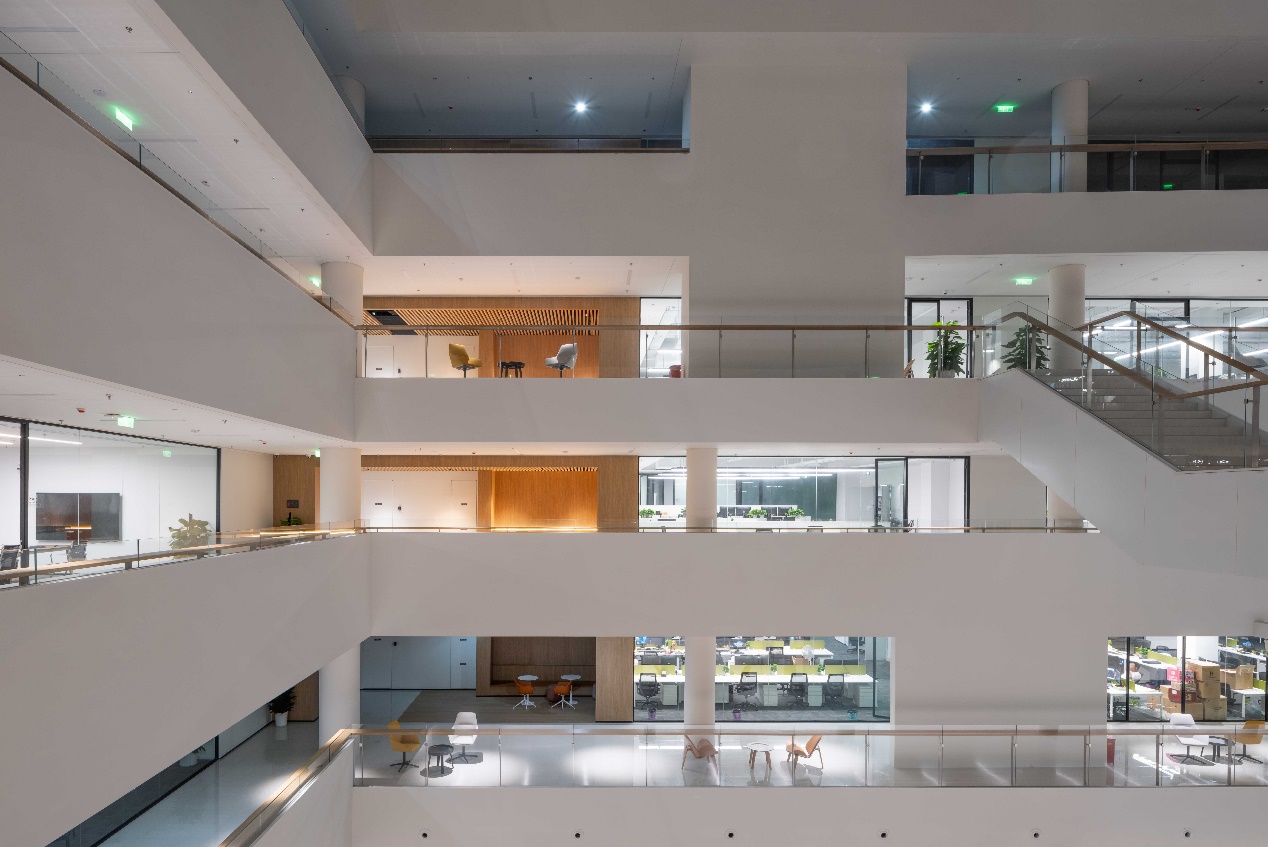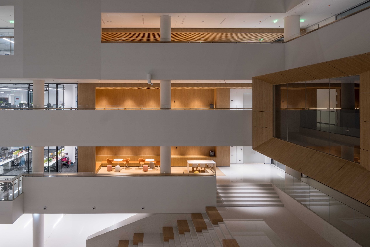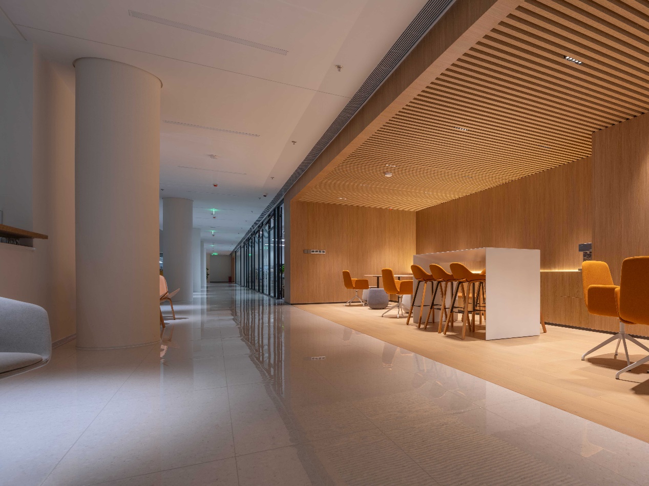 在基准方中总部大楼的照明设计中,我们更加注重结合德系建筑风格品质的塑造,突出高品质的光环境。通过以功能为核心的“功能美学”设计手法,呈现秩序感、理性化的空间美感,再赋予诸多亮点的点缀,实现了照明的整体统一。