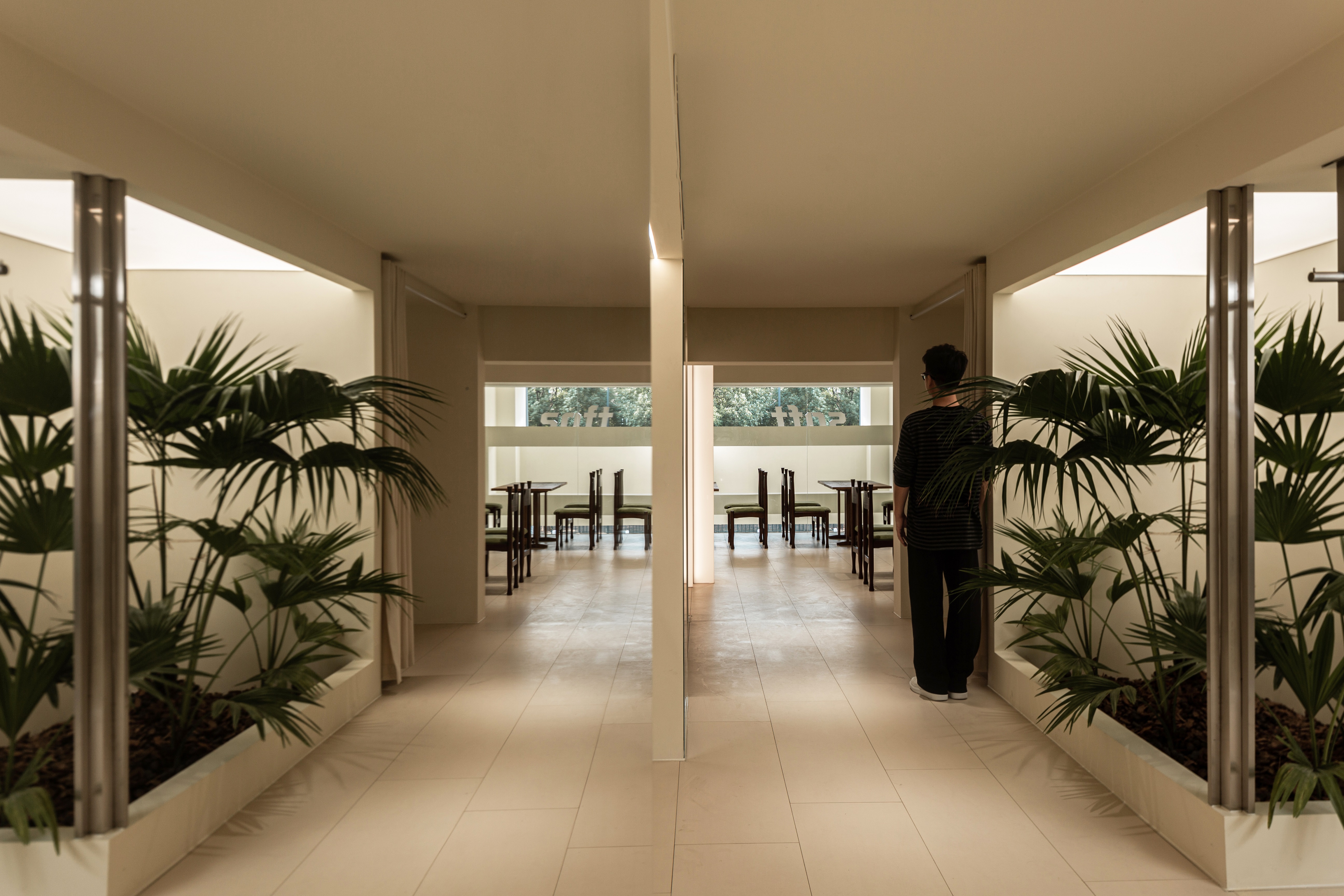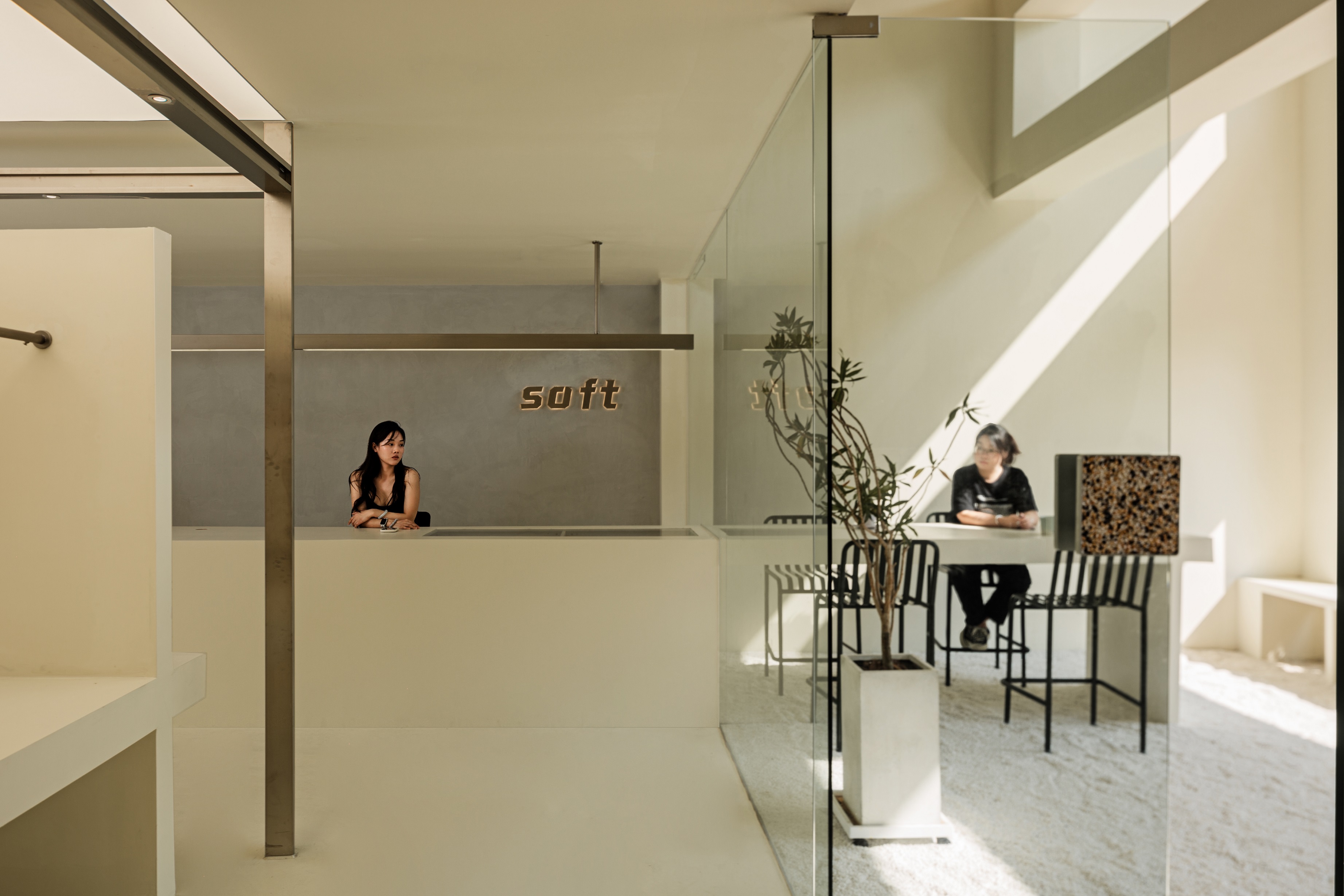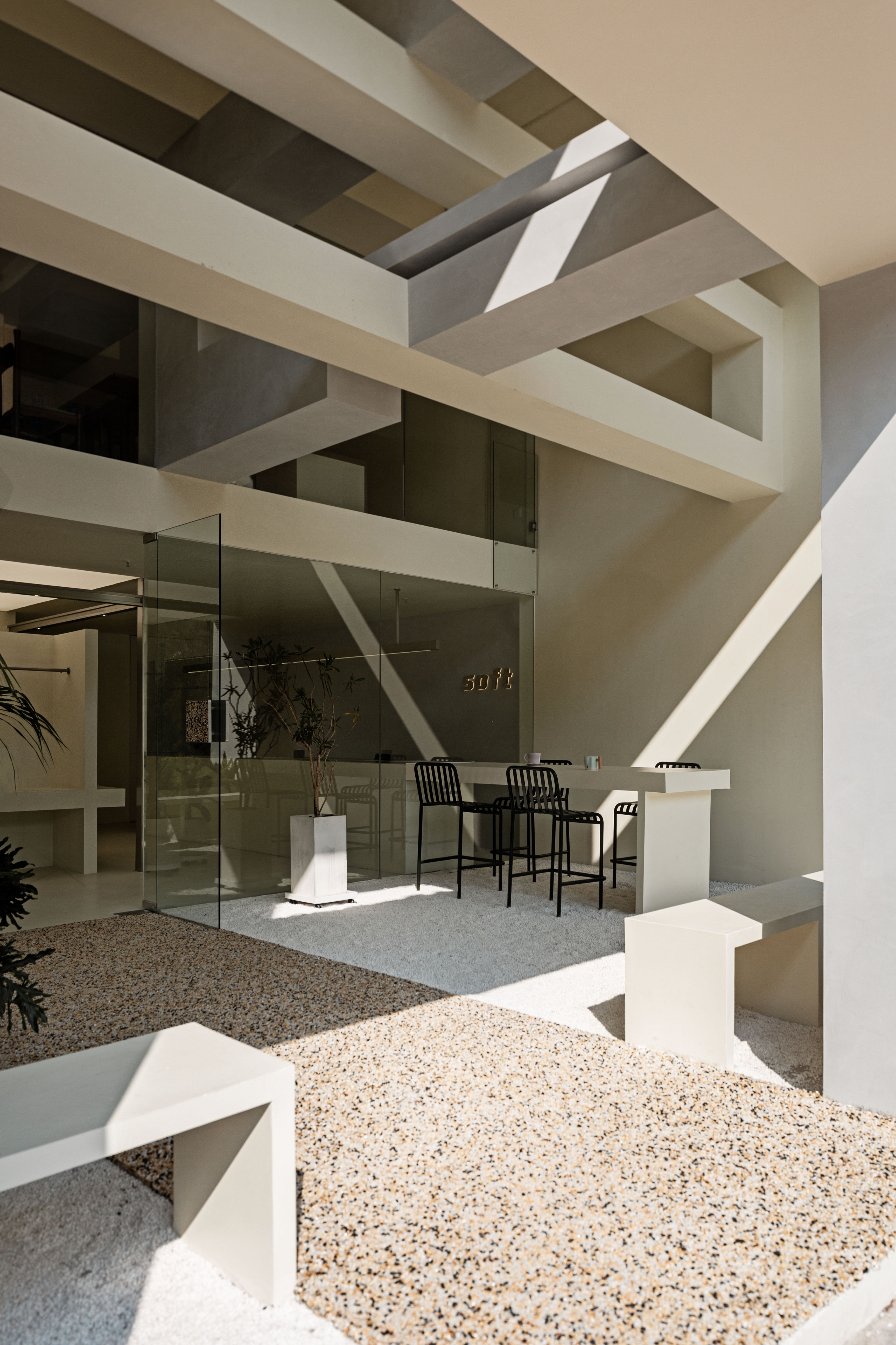 项目定位:LOGO“SOFT”给人以“松弛”之感,步入式挑高花园的设定,不仅最大限度释放出室内空间,而且寻求了环境之间的平衡。引入自然和天光让人更加亲近自然,随时感知四季的变化。