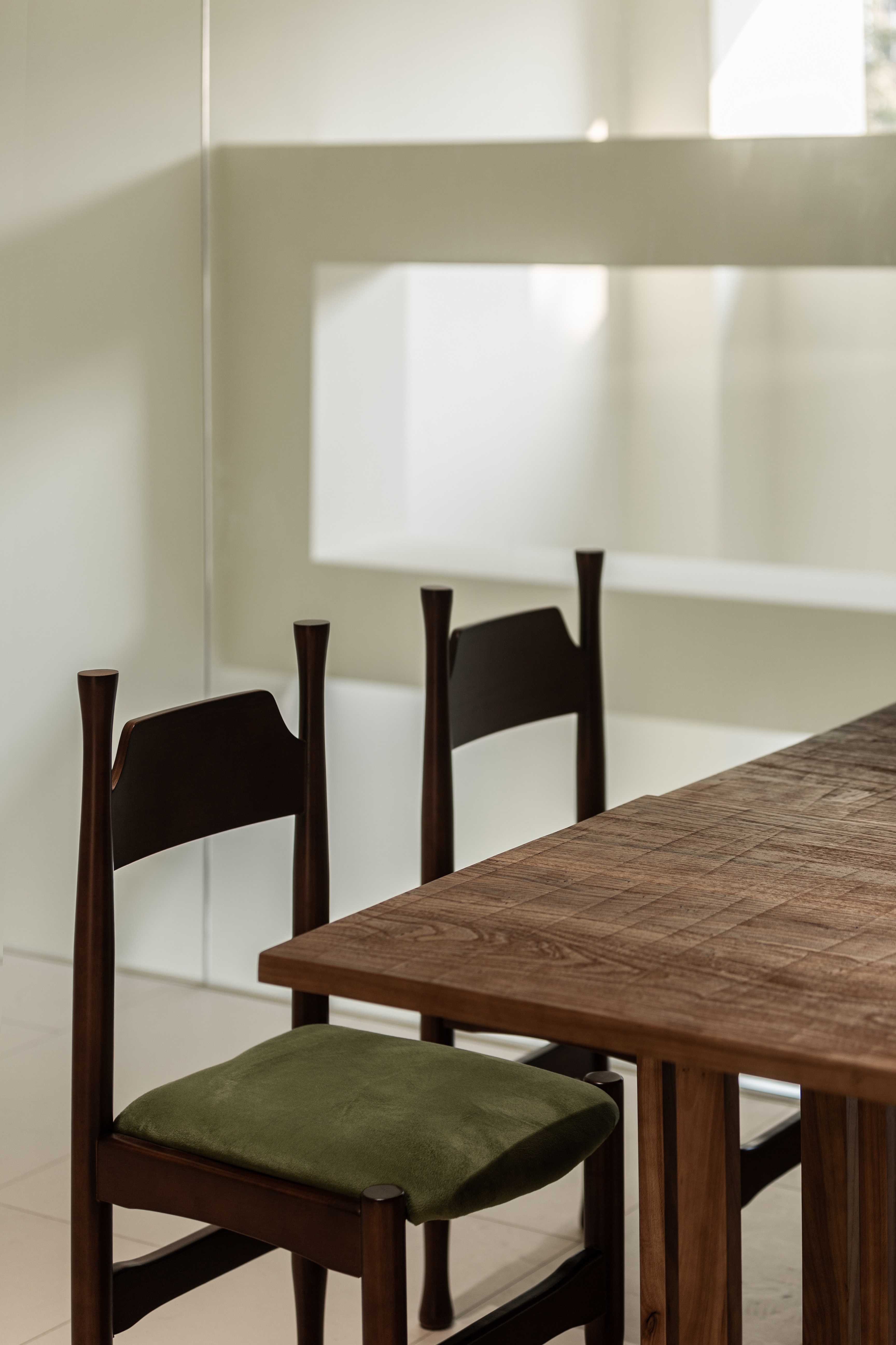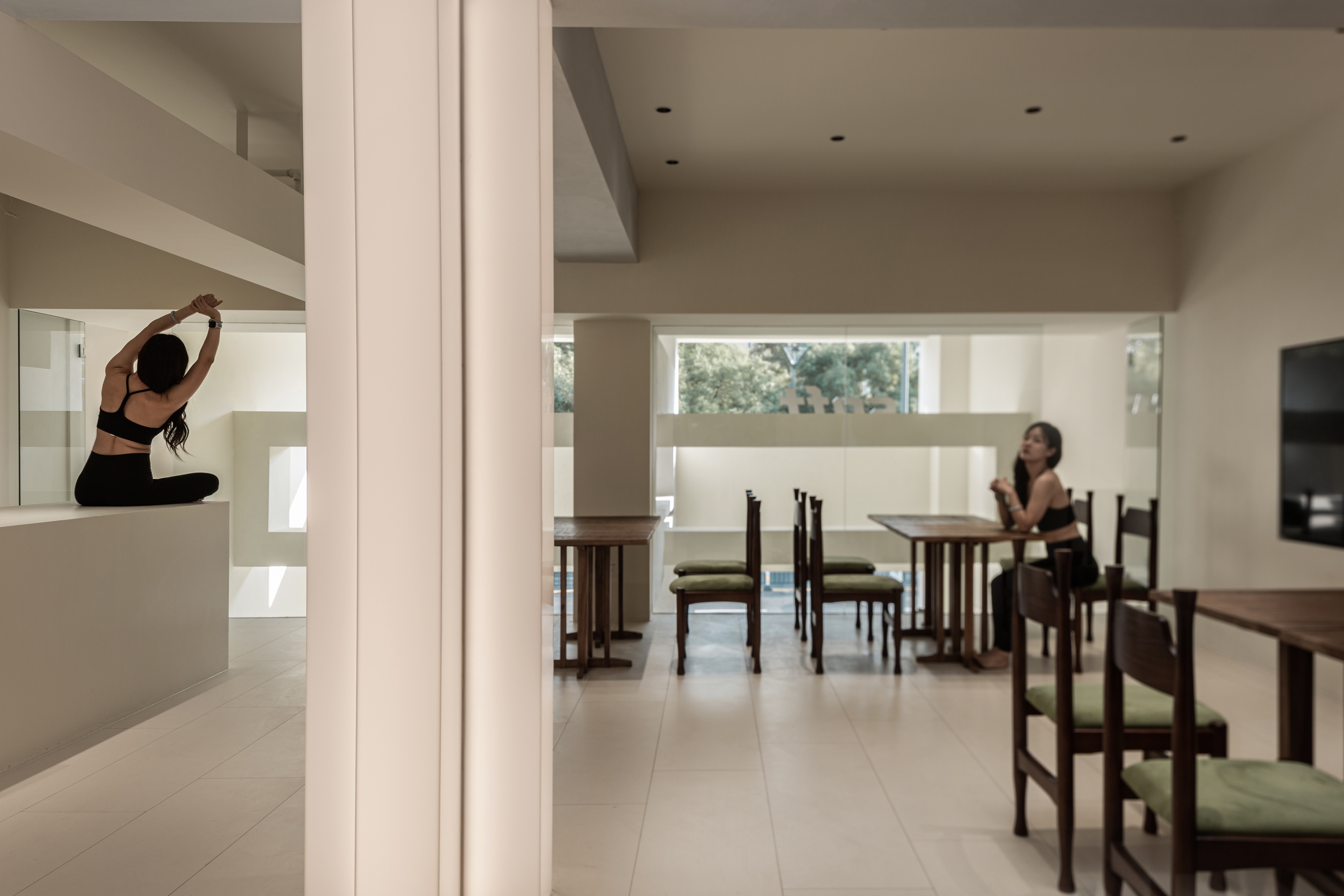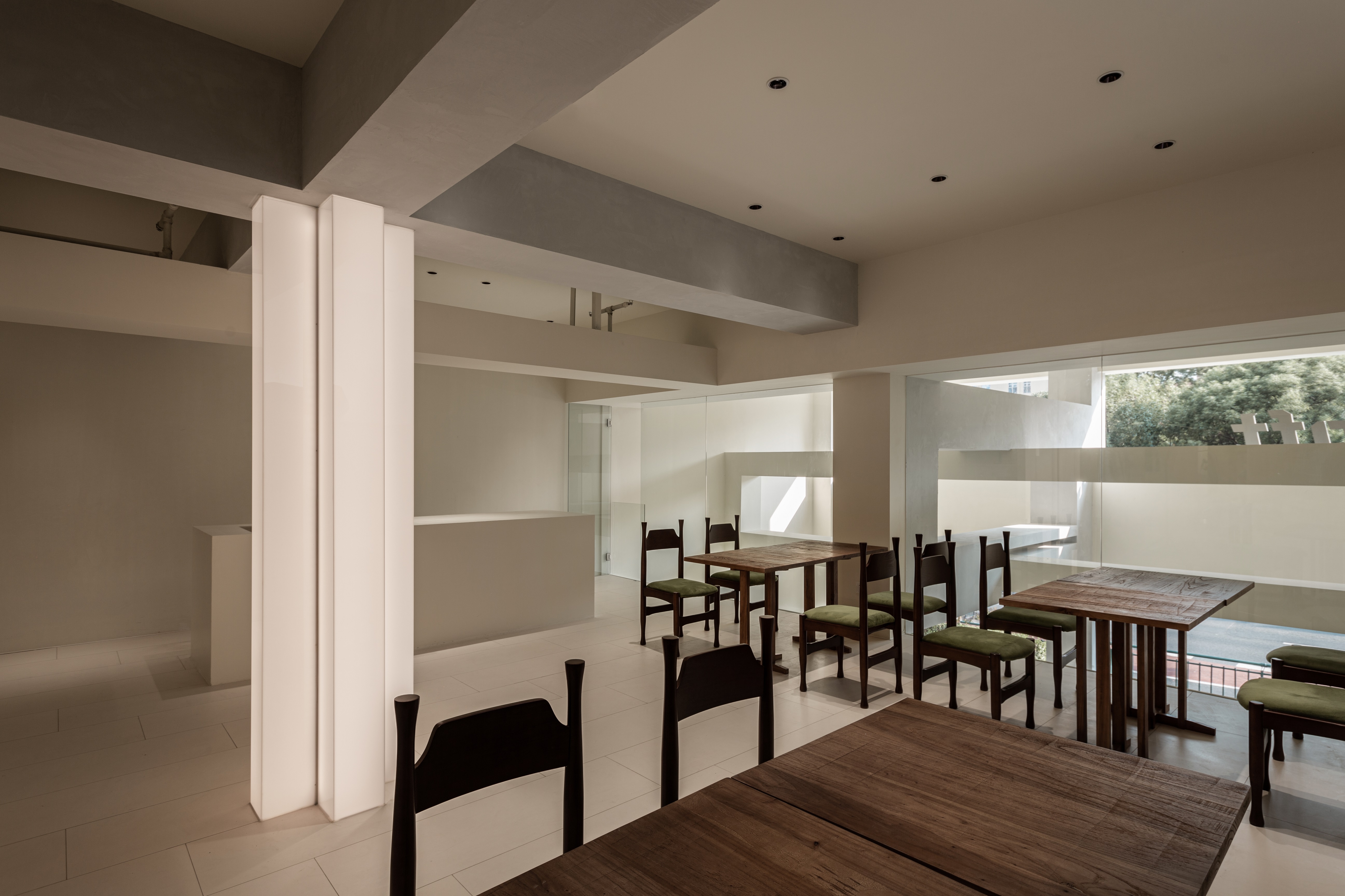 空间意境:在不同区位墙面上增加不同大小的镜面,借此扩展空间,增加层次感,同时也满足了客人随拿随照的需求。休闲区桌椅的选择上,既可减缩成双人位也可扩展成十人位,适配多种人群的使用,大面积落地玻璃扩展了空间视野,也更好的纳入了天光,可随时感知时间的变化。