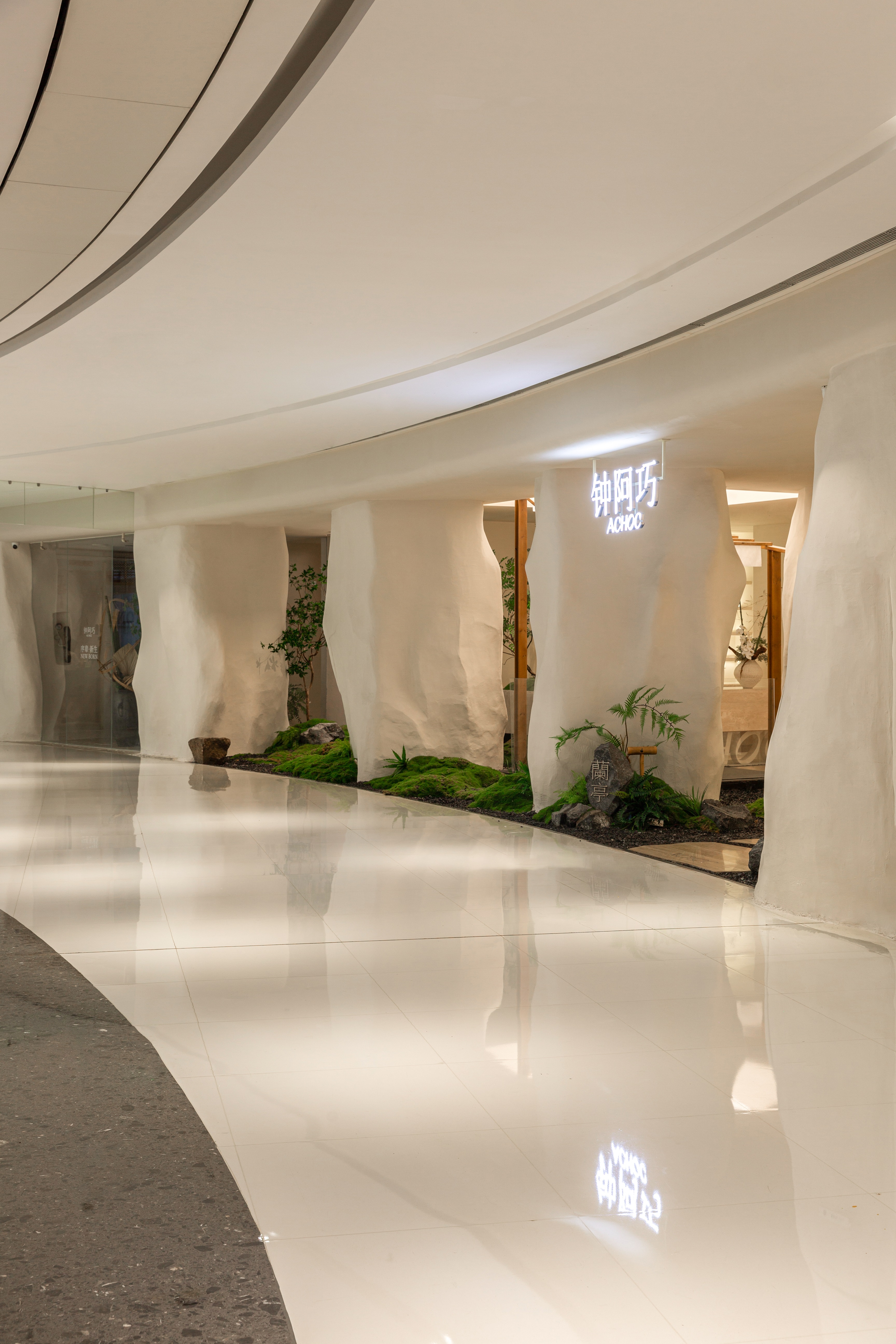 项目定位:在信息多元化的时代下,我们的消费者不光追求产品自身的单一表象,更希望从沉浸式体验中找到价值的认同感。通过空间动线塑造,自然性和流动感,将松弛感通过嗅觉与质感的生活方式凝为实体,从而更精准的表达品牌性。