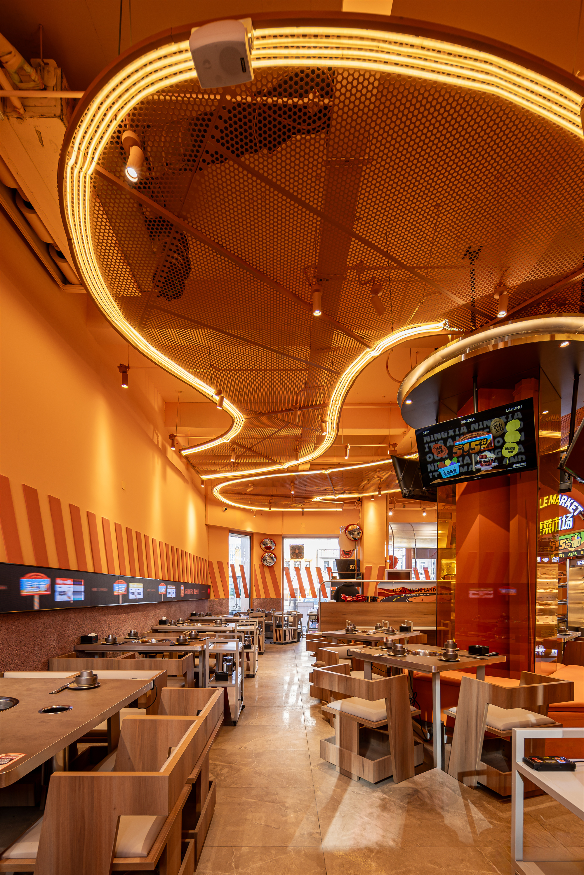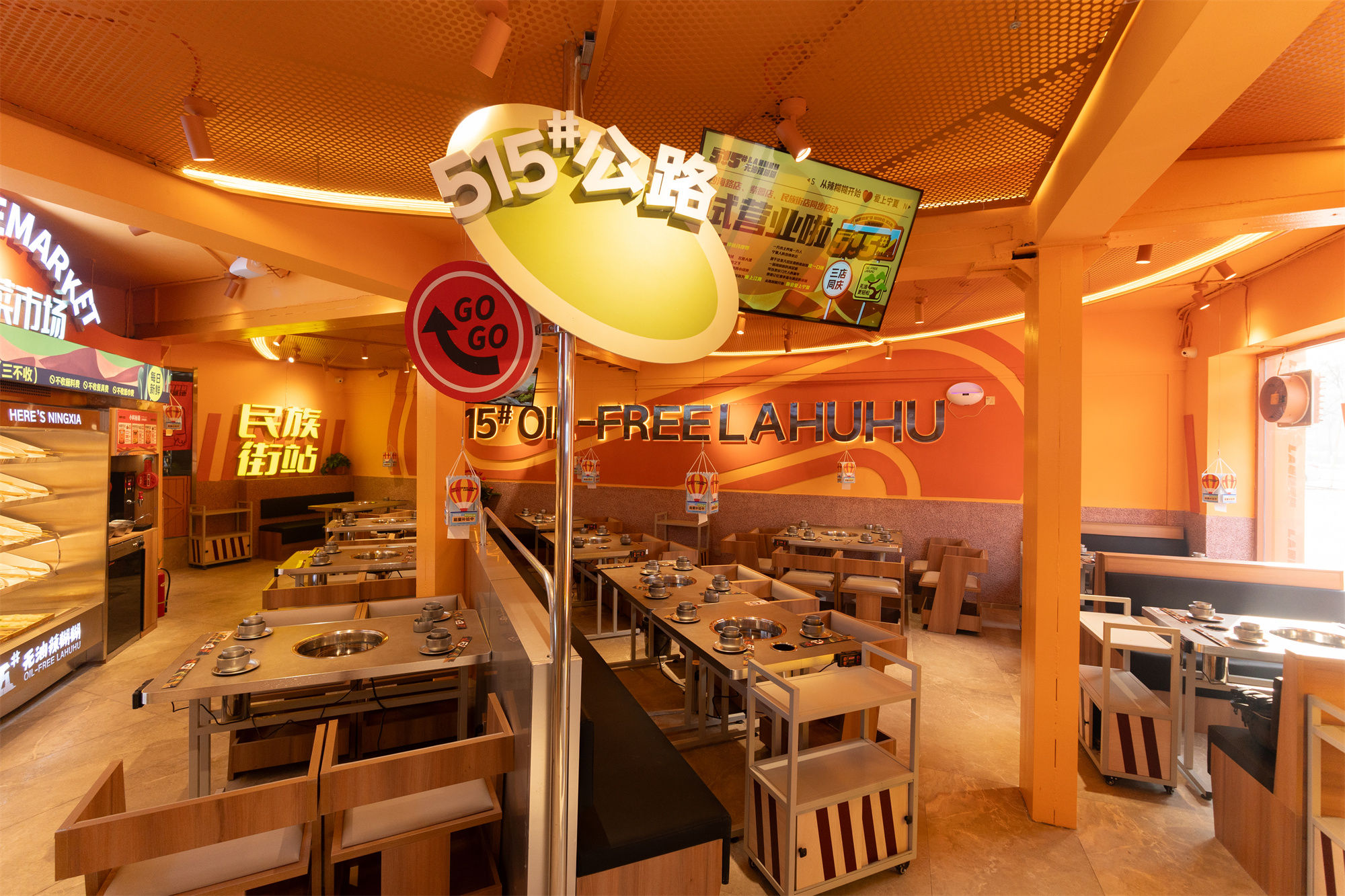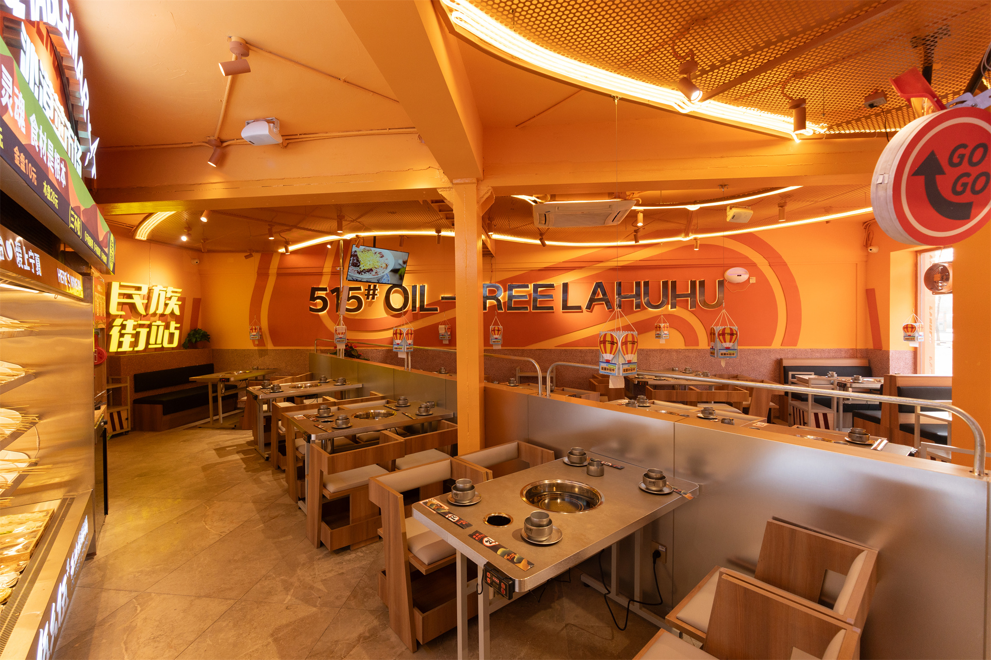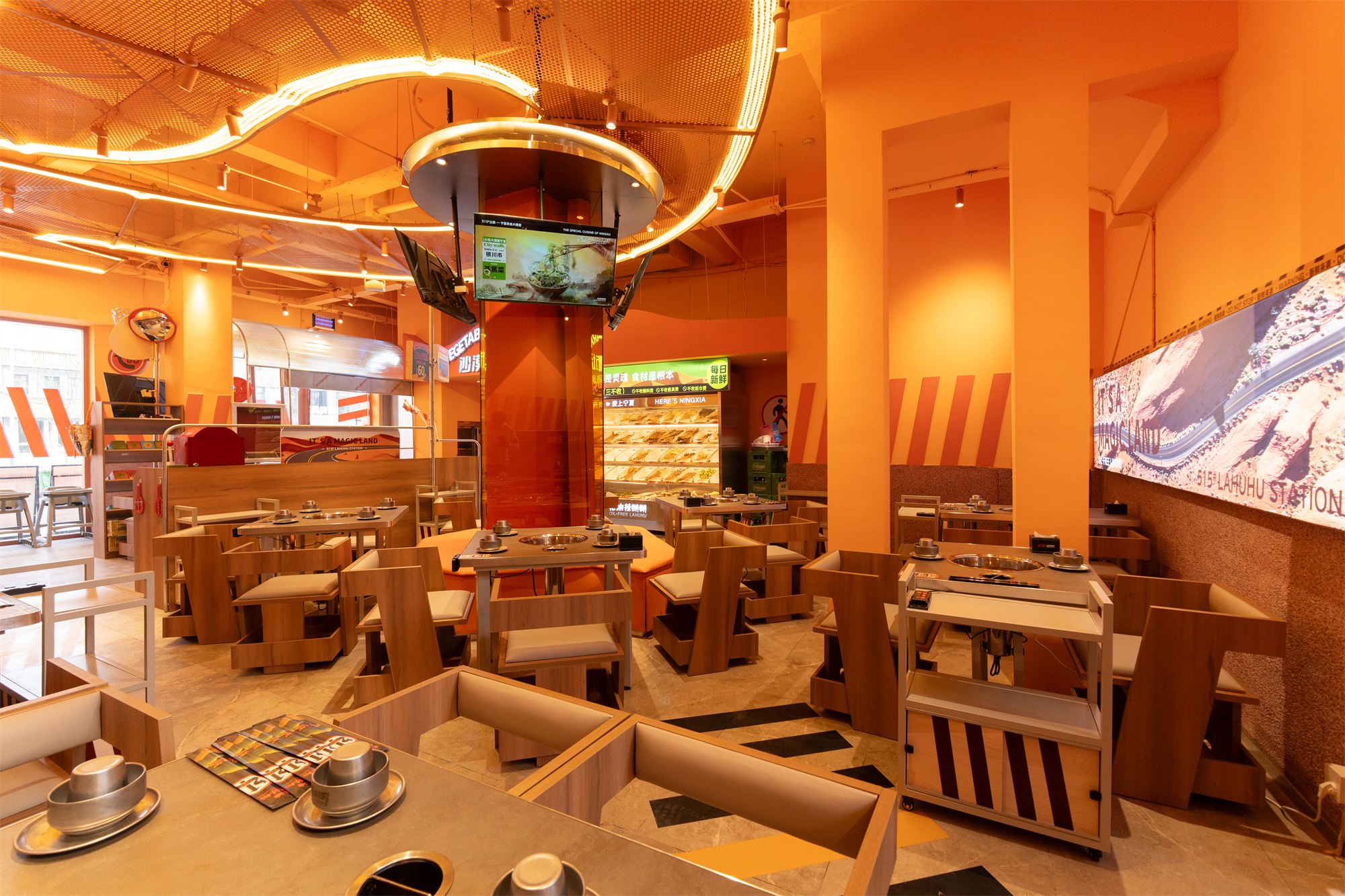 用户体验:这里的环境首先引人注目,整体装修设计显得热情而开放。鲜明的橘色调贯穿每一个角落,少量趣味性的元素交织其中,创造出独特的辣味文化氛围。暖黄色的灯光赋予空间活力和温馨。