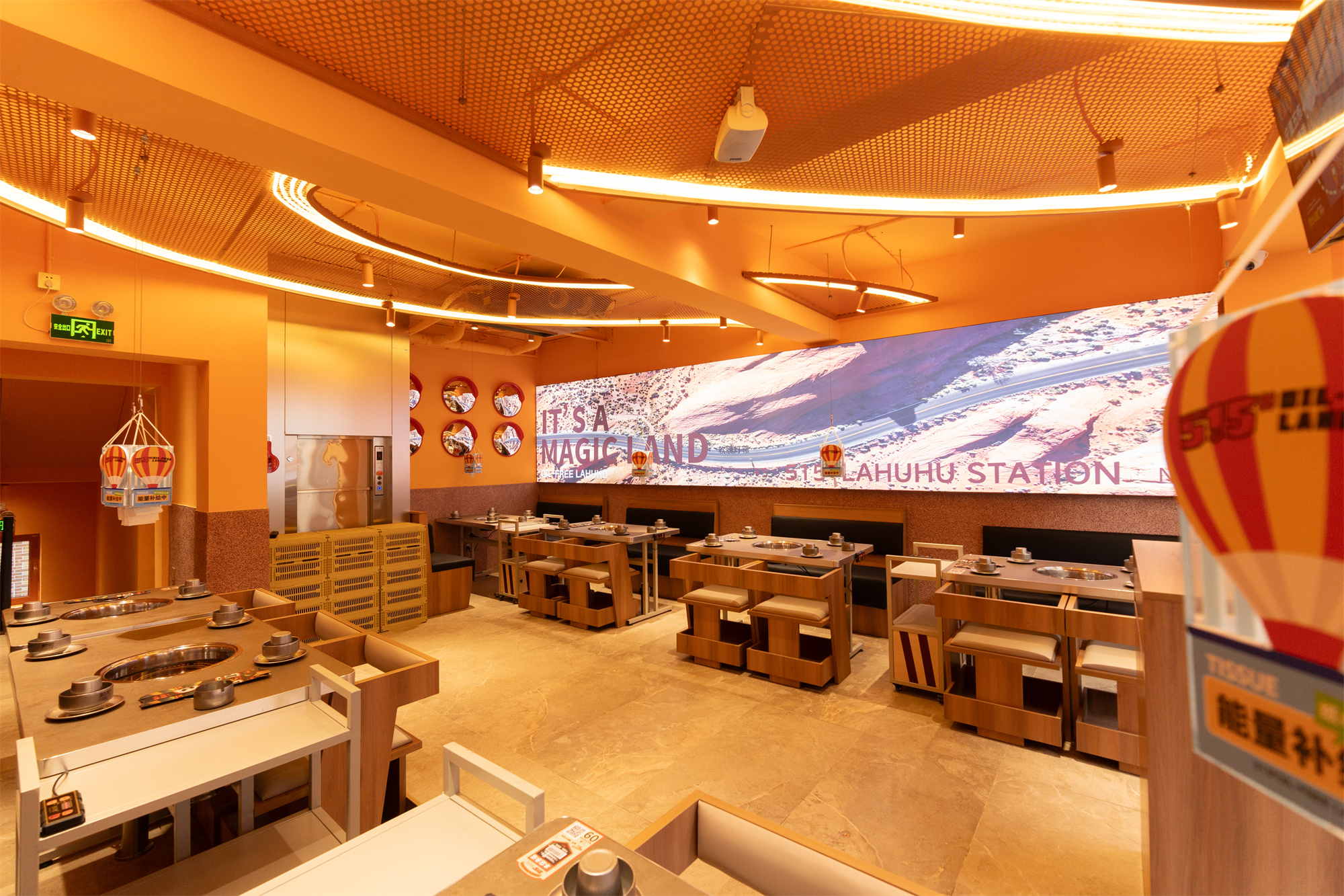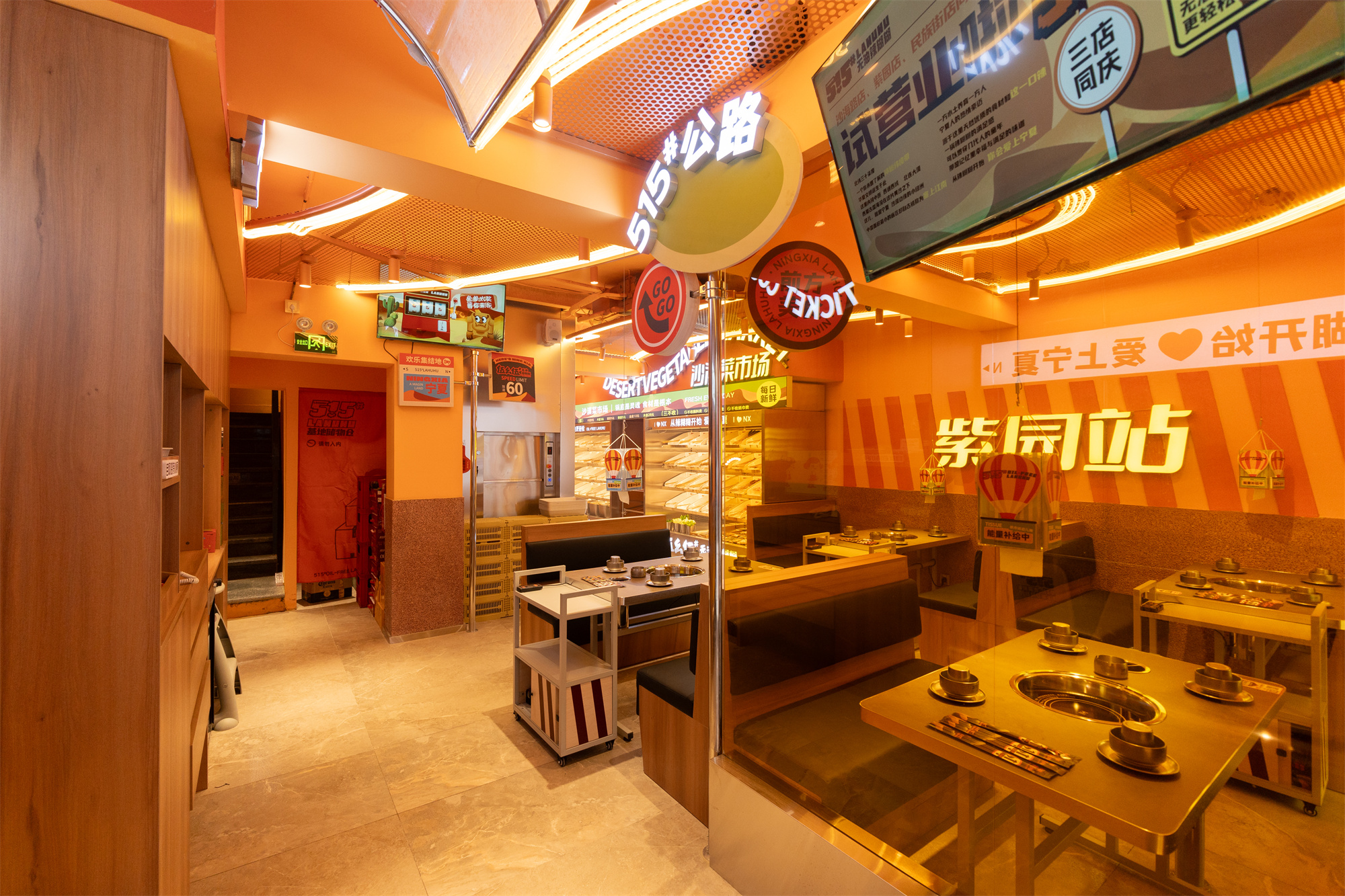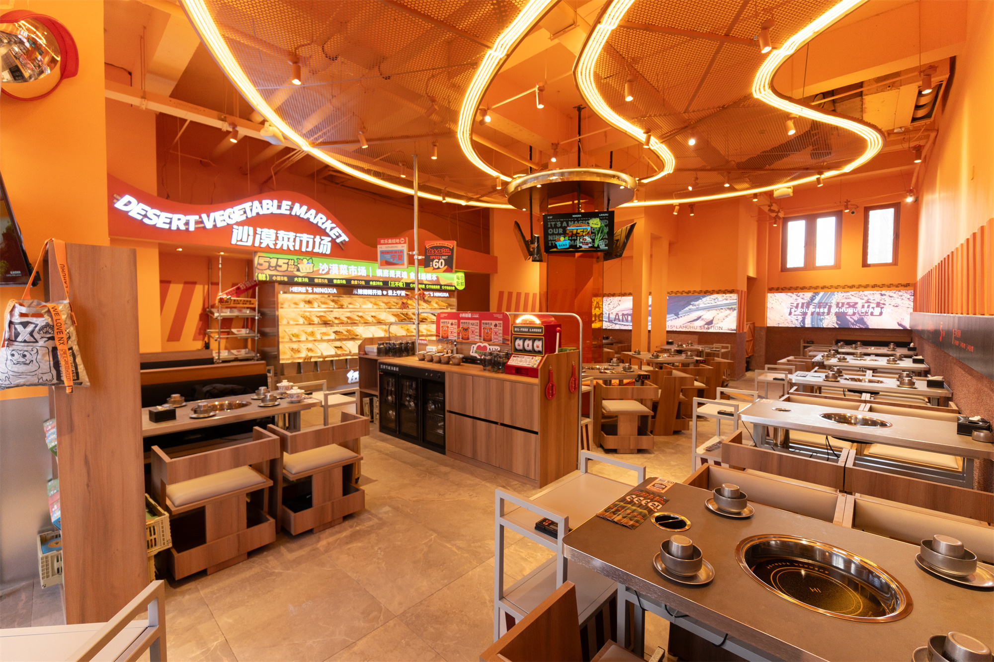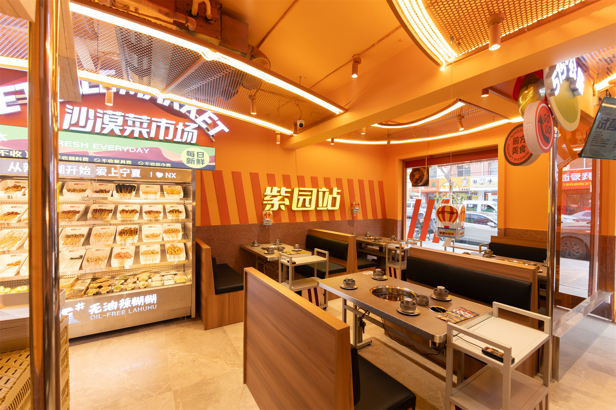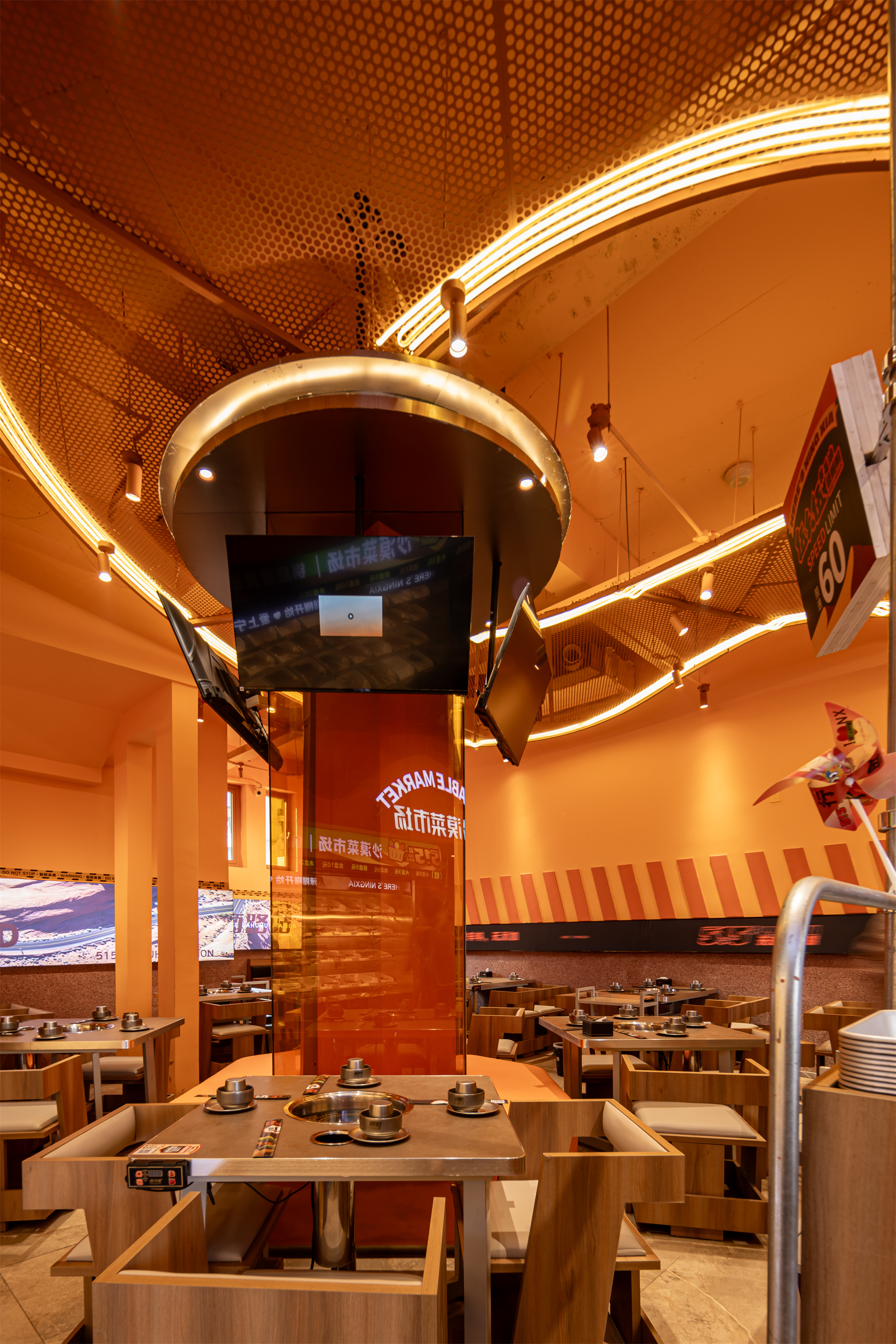 用户体验:这里的环境首先引人注目,整体装修设计显得热情而开放。鲜明的橘色调贯穿每一个角落,少量趣味性的元素交织其中,创造出独特的辣味文化氛围。暖黄色的灯光赋予空间活力和温馨。