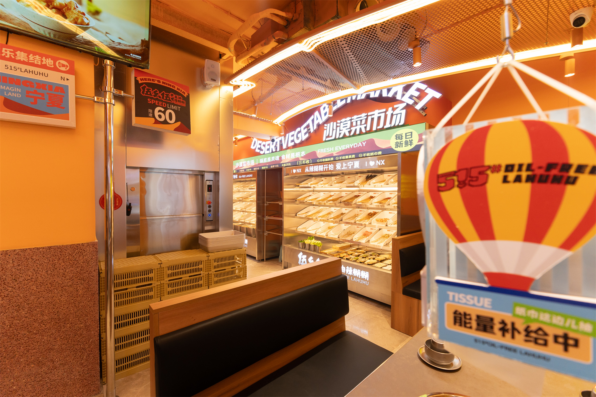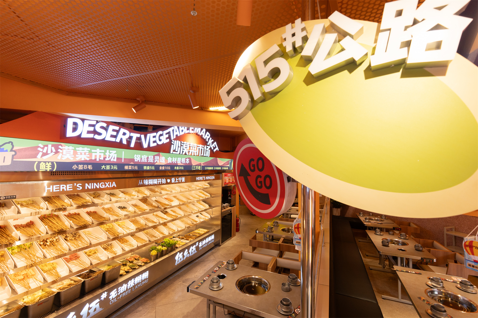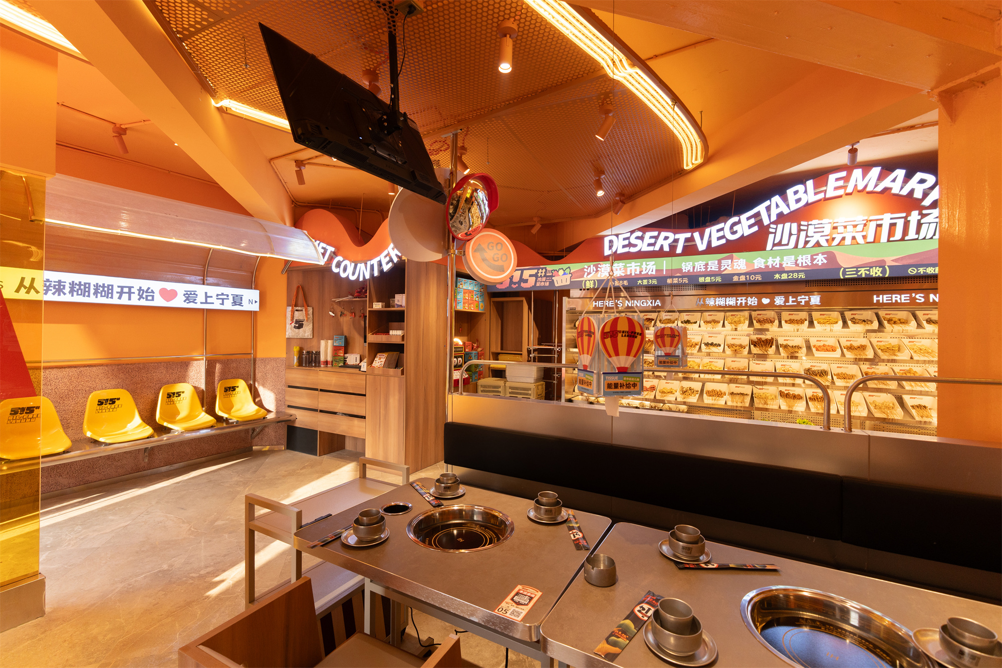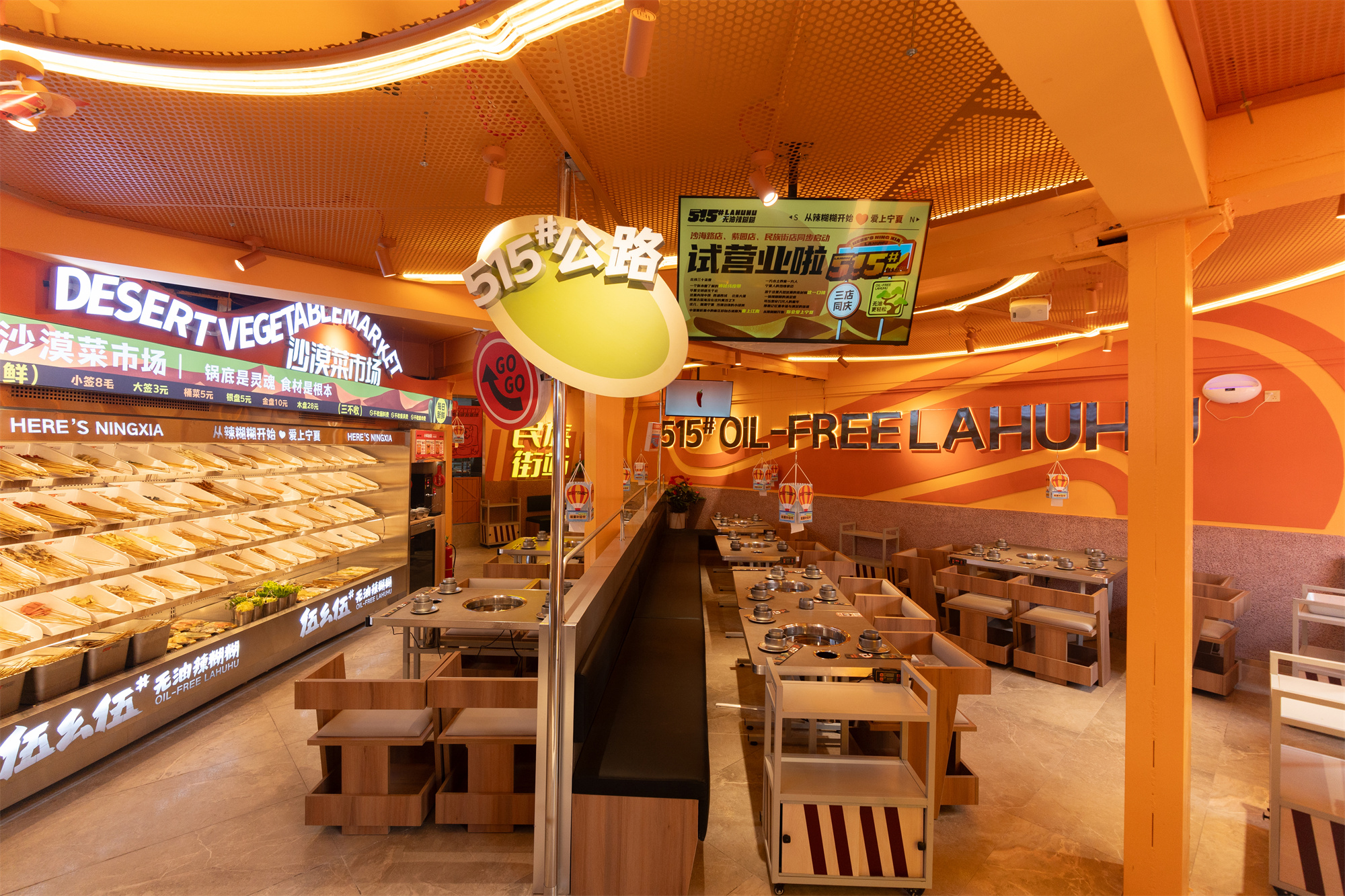 空间布局:我们在空间设计里,没有刻板的做宁夏文化,也没有煽情的植入情怀。而是把西北的公路文化代入空间,让它作为一个串联的纽带,不在情感上煽情扭捏,不在文化上杜撰,我们要做的是营造一个场域,一个可以让不同年龄段的人都可以在这里感受到热情,在空间里可以肆意欢乐的空间,这就是伍幺伍,我们用空间、设计、和味道来结合,让大家不同的欢乐都可以融合的地方。
