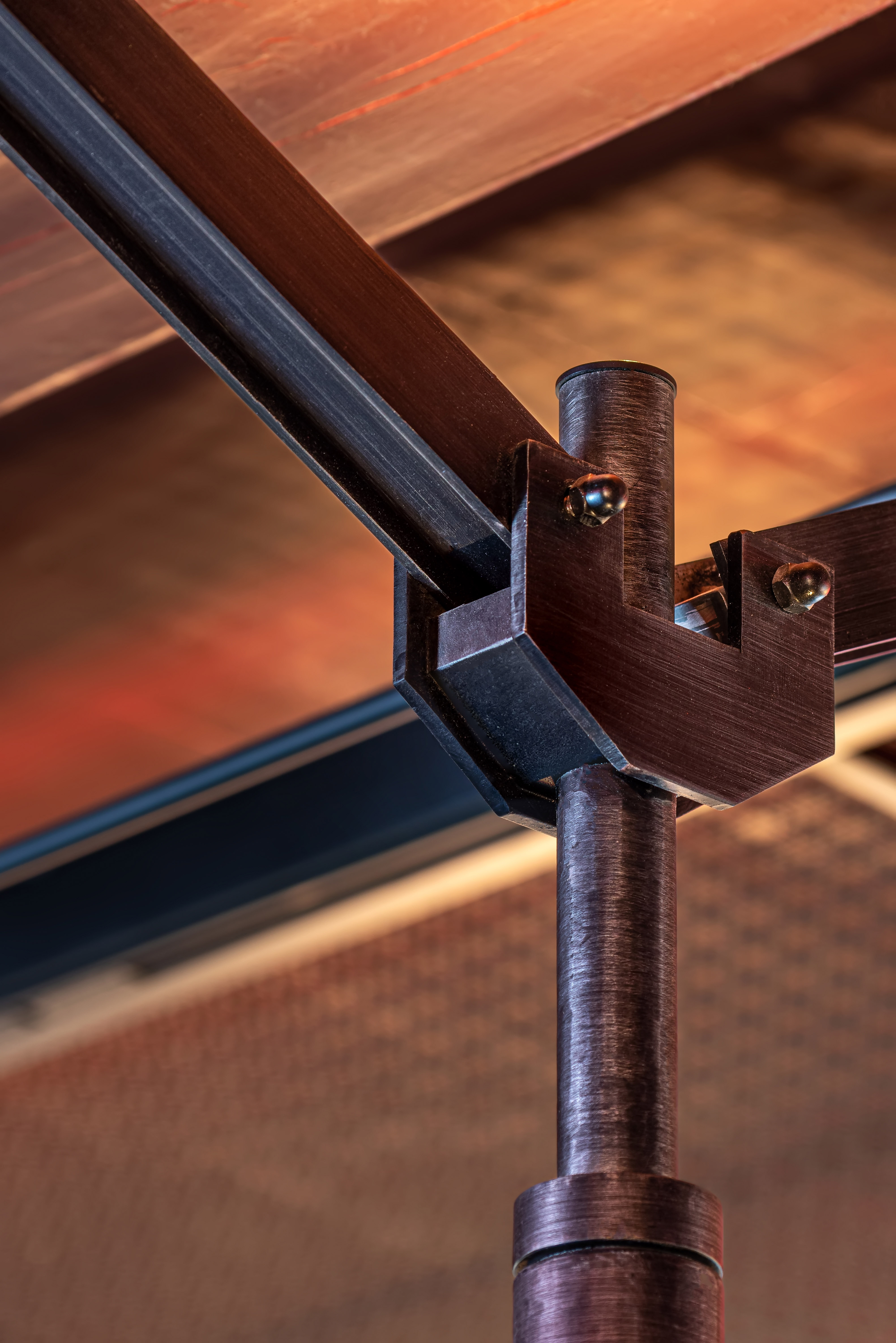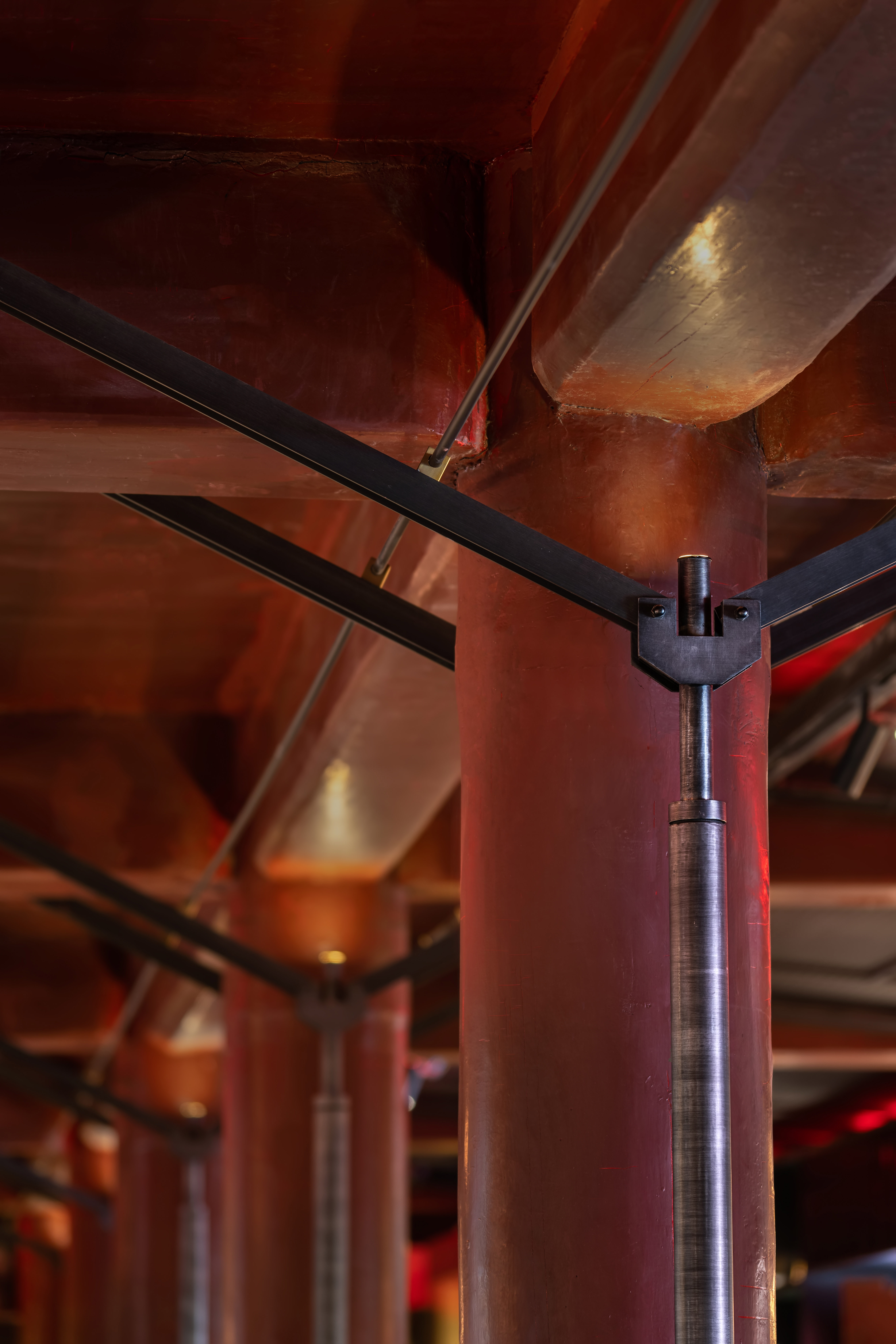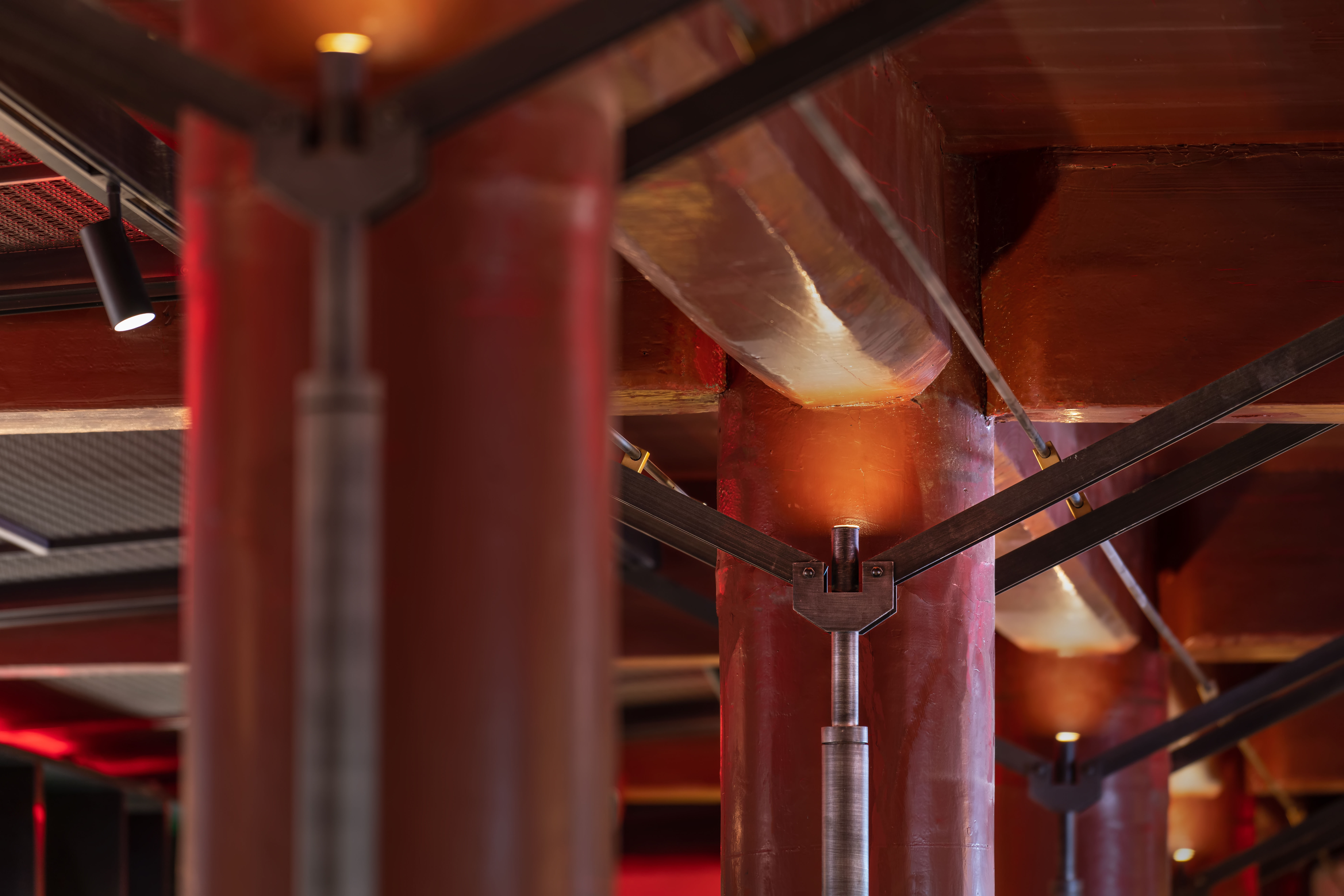 传统供暖系统避免大漆开裂。我们保留了原来的供暖系统,没有再加入过多的空调,空调会对古建筑的漆面产生一定程度的破坏,在北方寒暑季节交替的时候,温差变化是特别大的,同时对古建的破坏性也是非常大的,我们选择在原本的空调外部加盖一层金属网,金属网不仅能起到一个美观性的疏导,而且又非常有利于热能的传播。 -