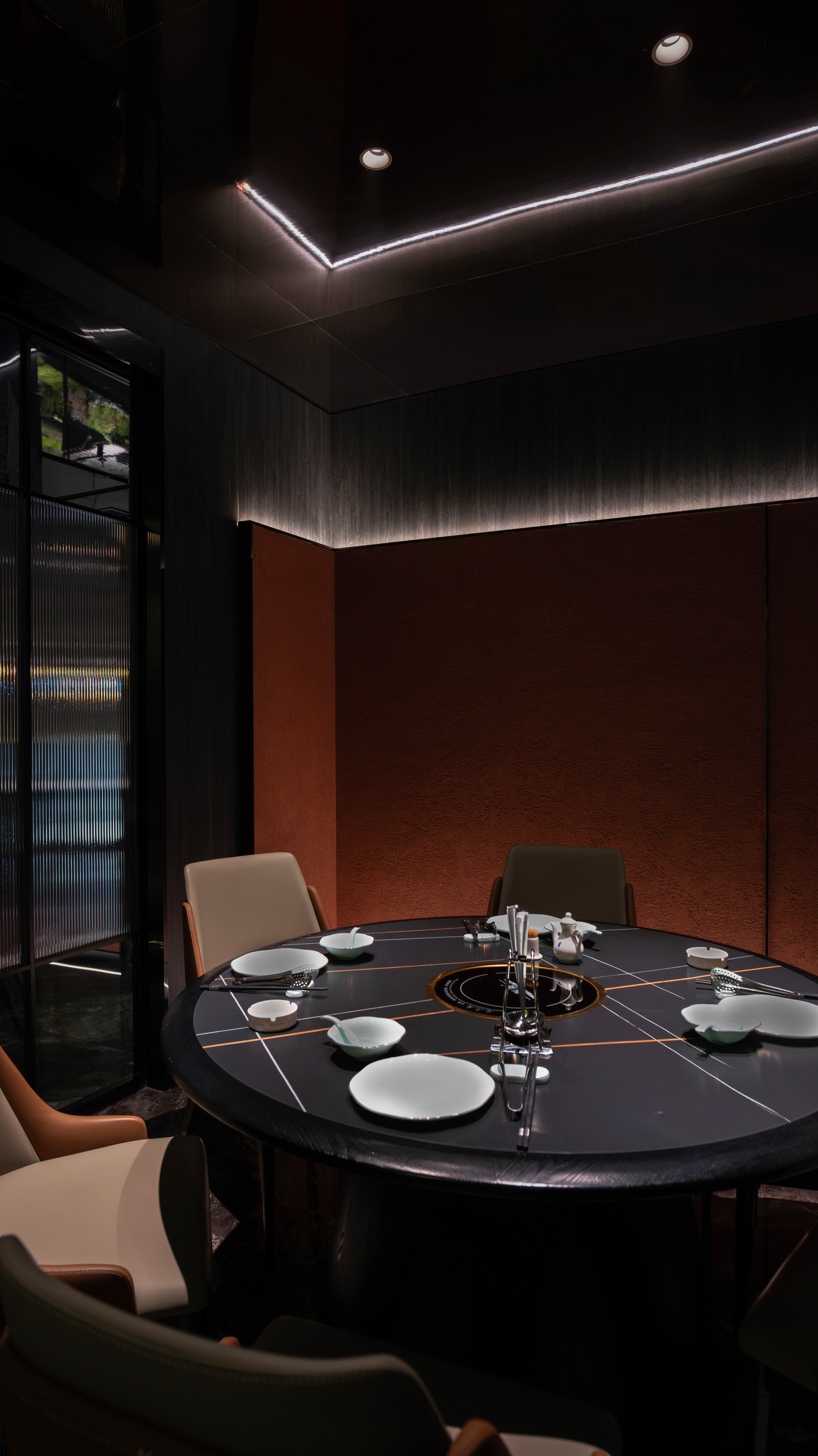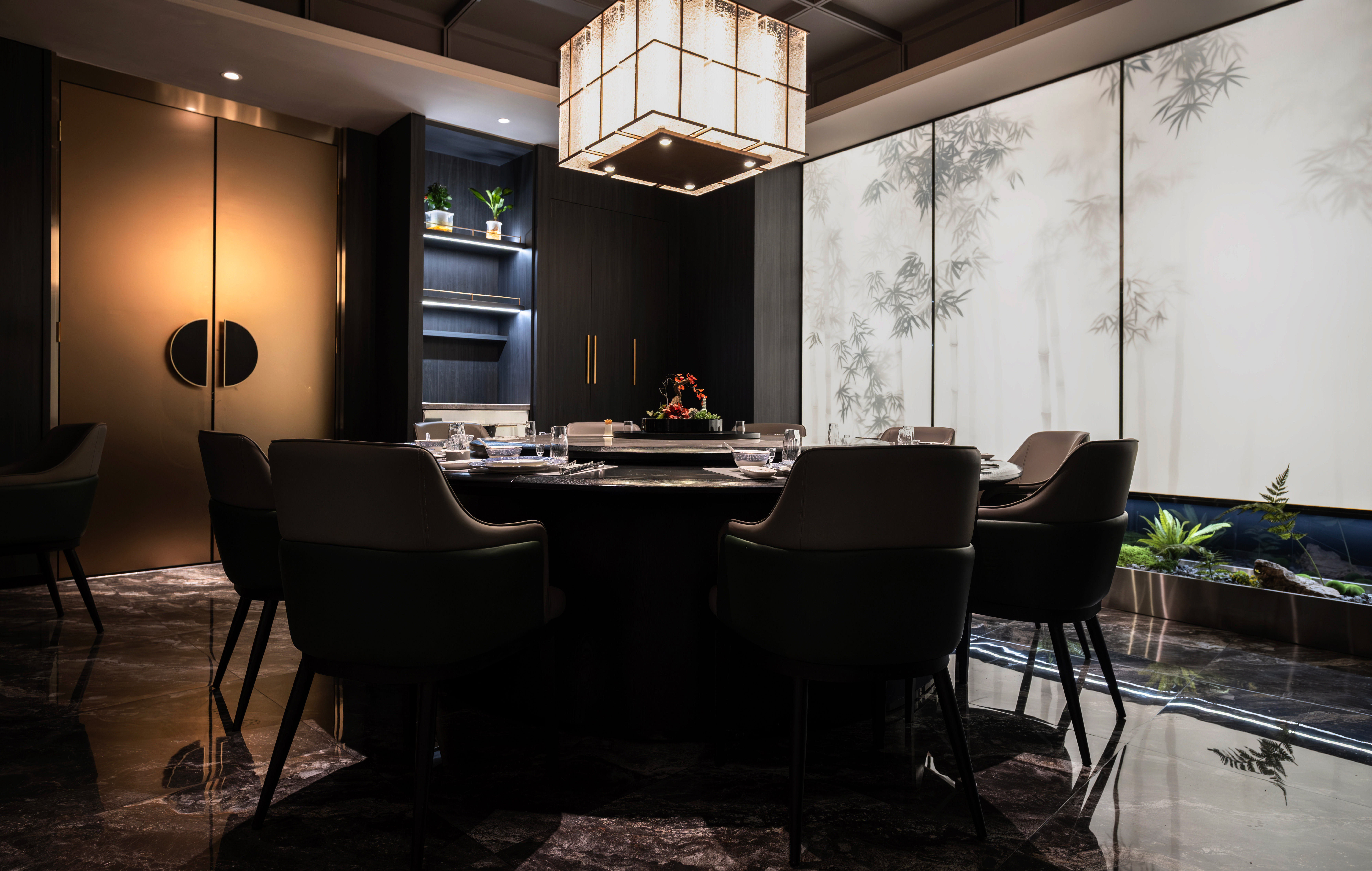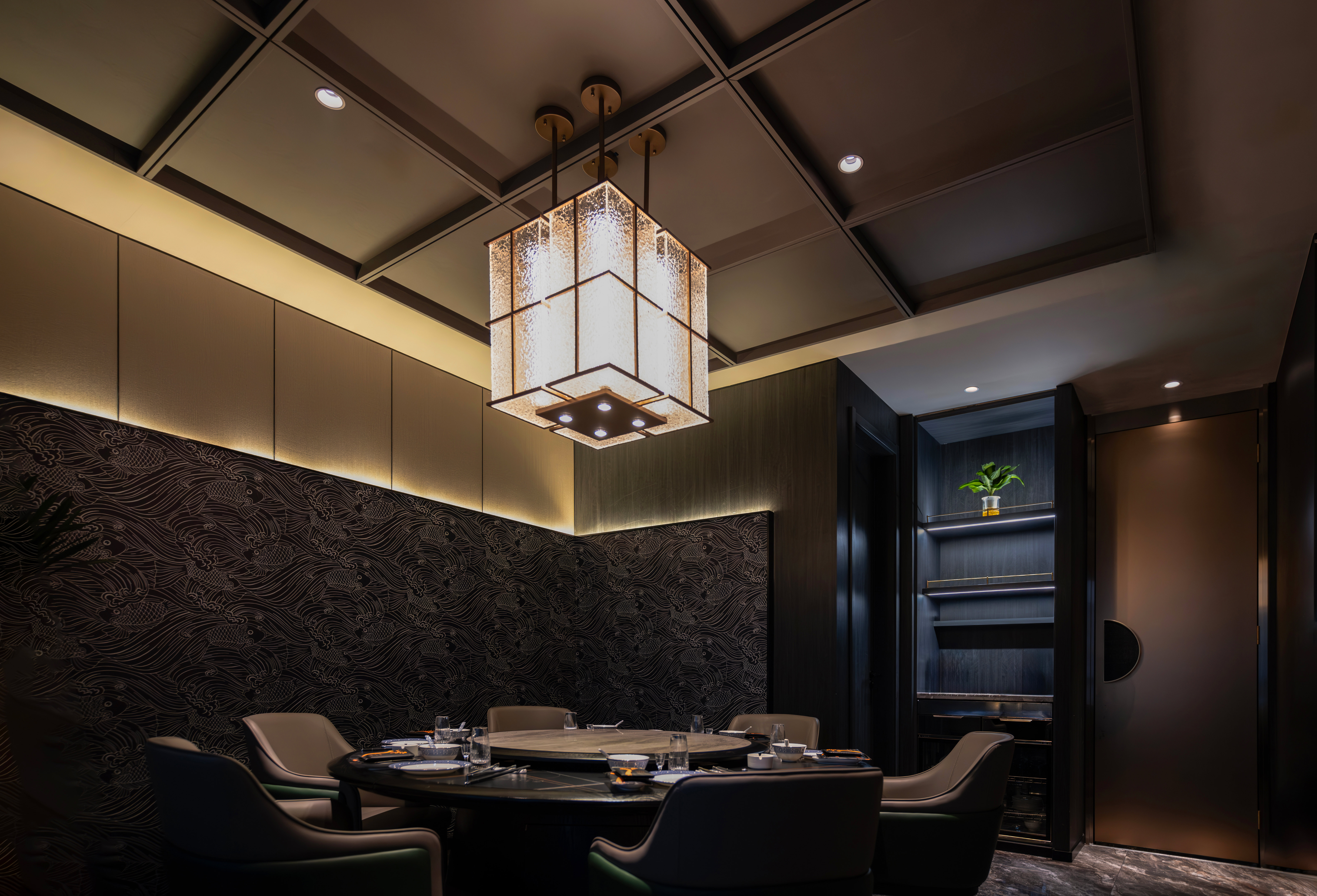空间布局:“以围为主,围中有透”,是本案空间布局设计核心体现。空间的使用功能与丰富的审美层次相结合,气韵生动、意境空灵,营造出良好的就餐气氛。