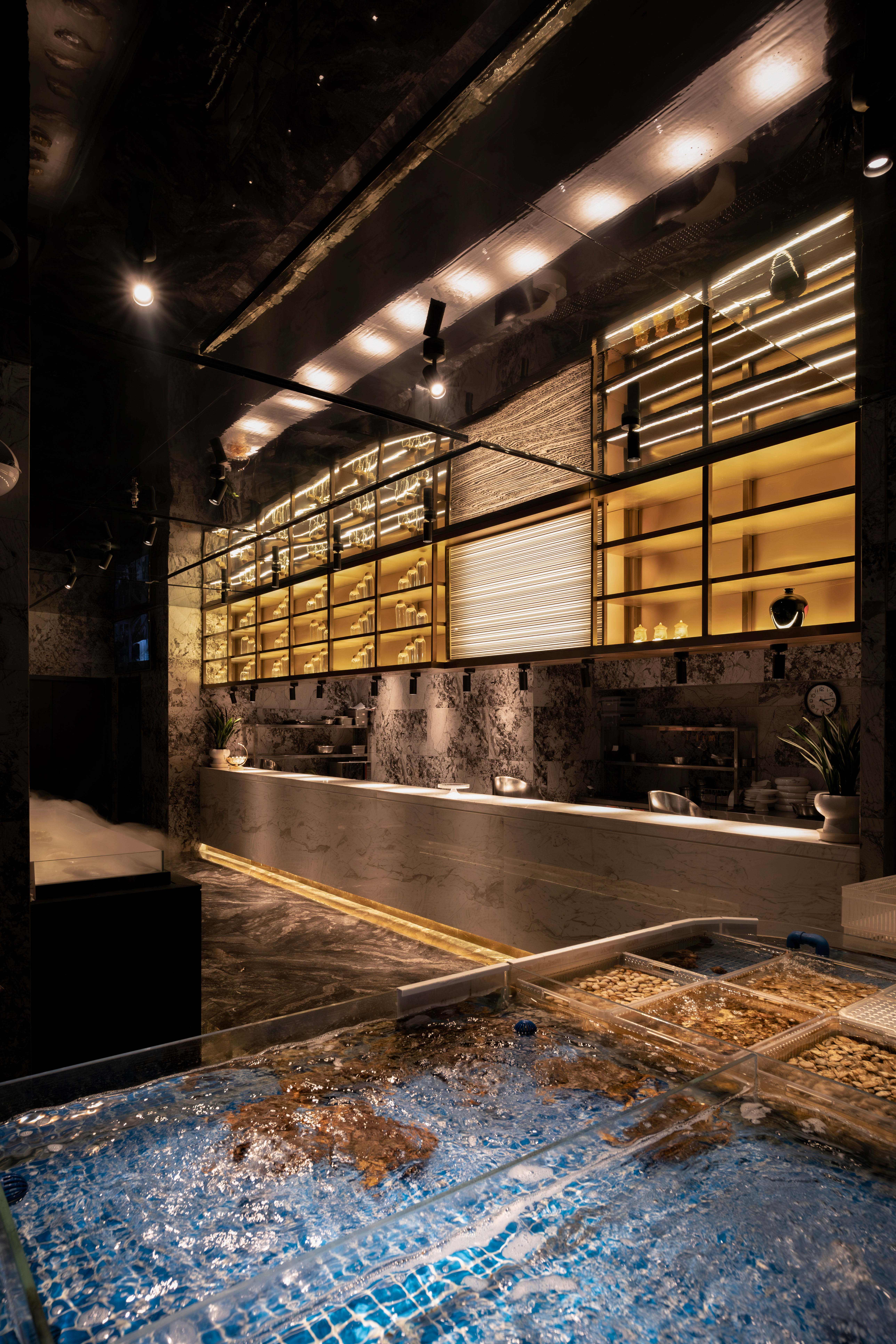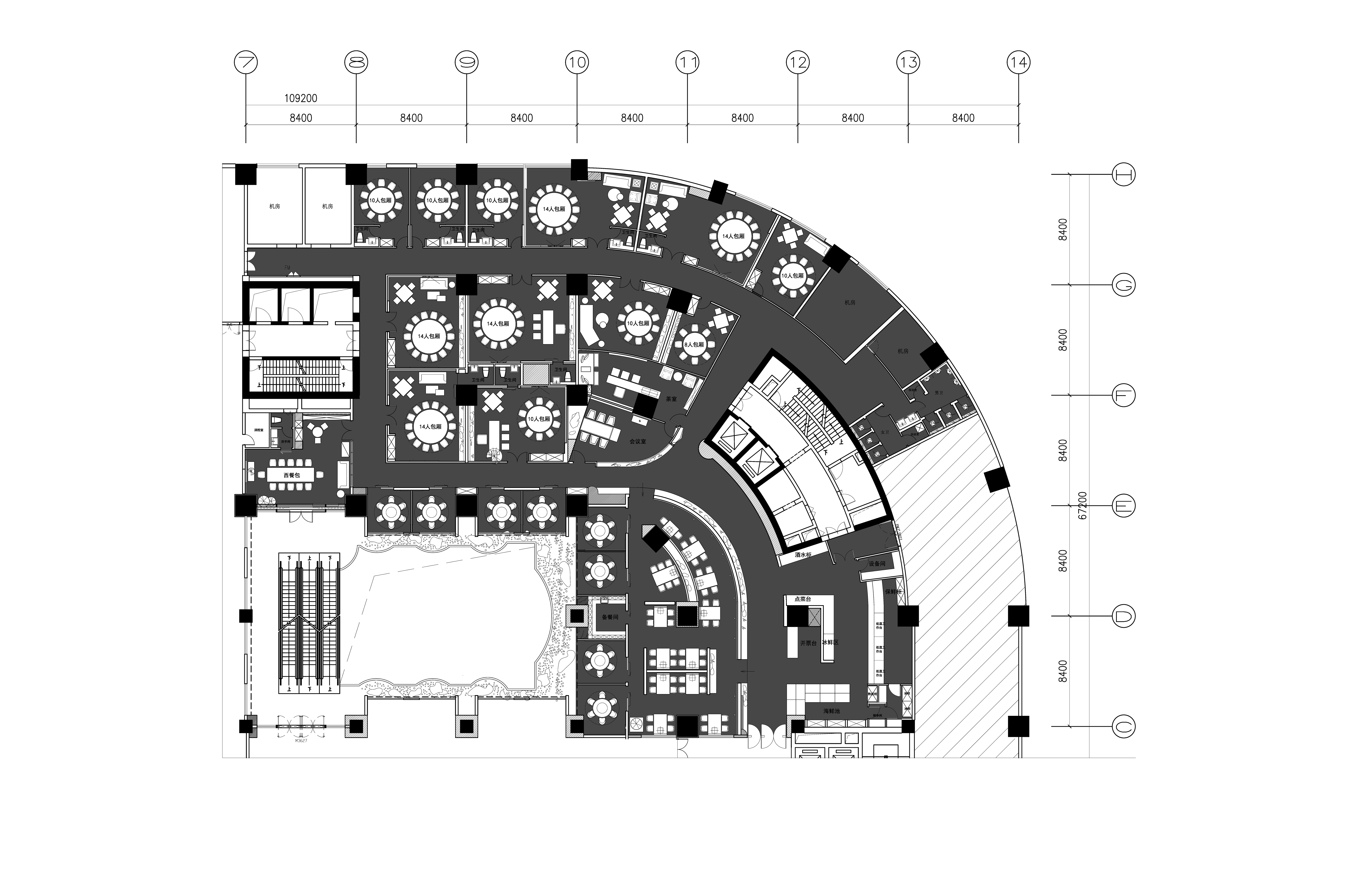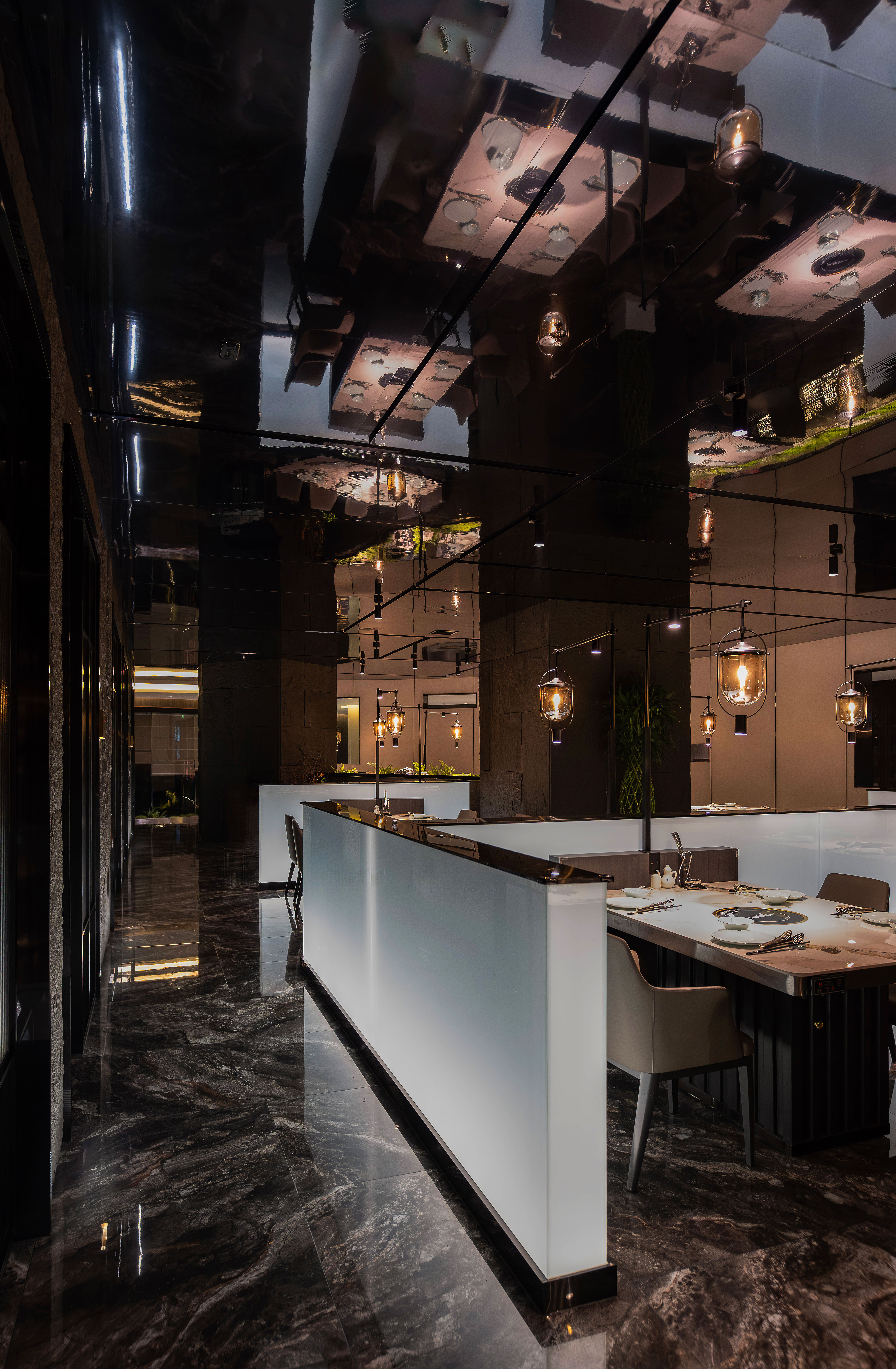 空间布局:“以围为主,围中有透”,是本案空间布局设计核心体现。空间的使用功能与丰富的审美层次相结合,气韵生动、意境空灵,营造出良好的就餐气氛。