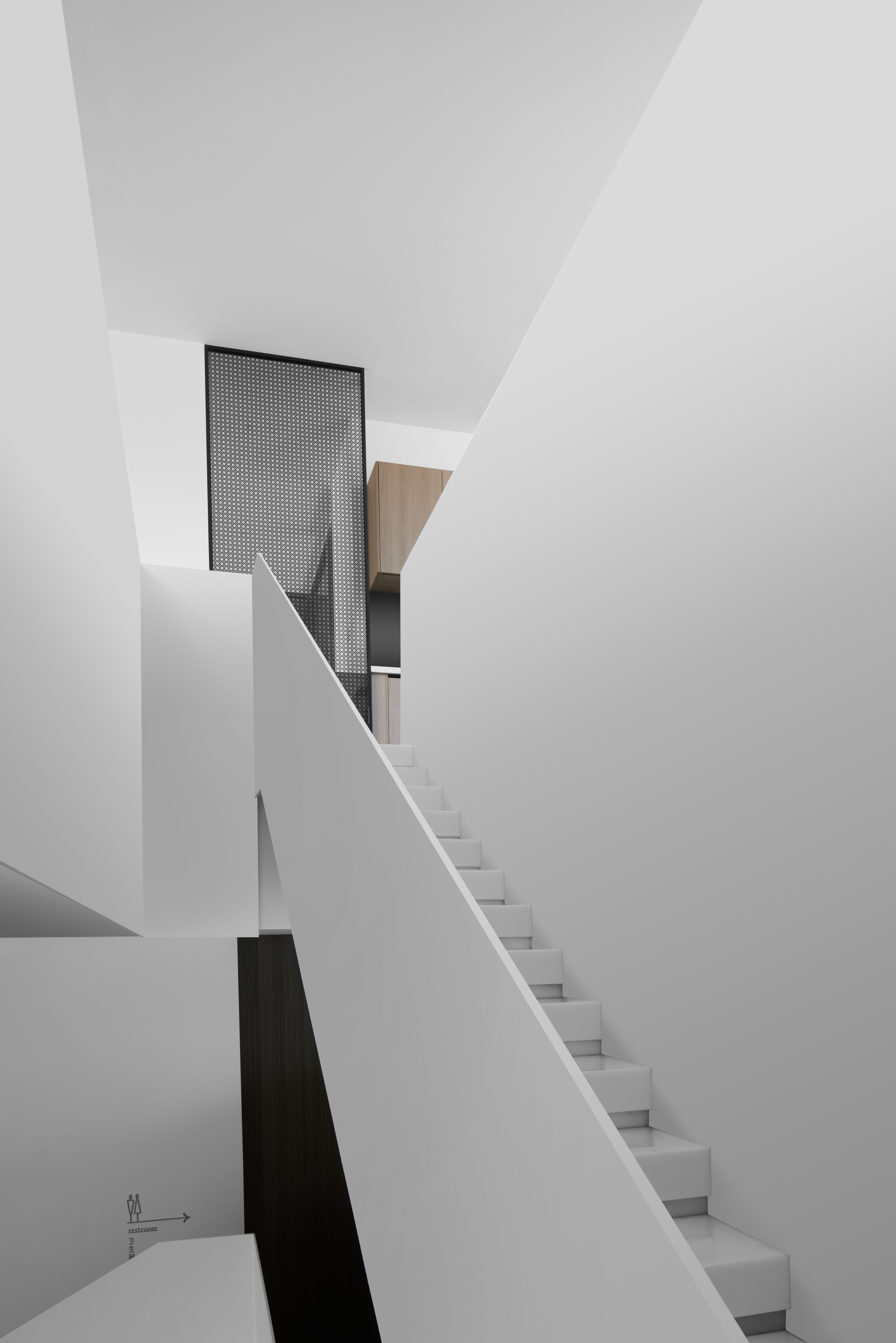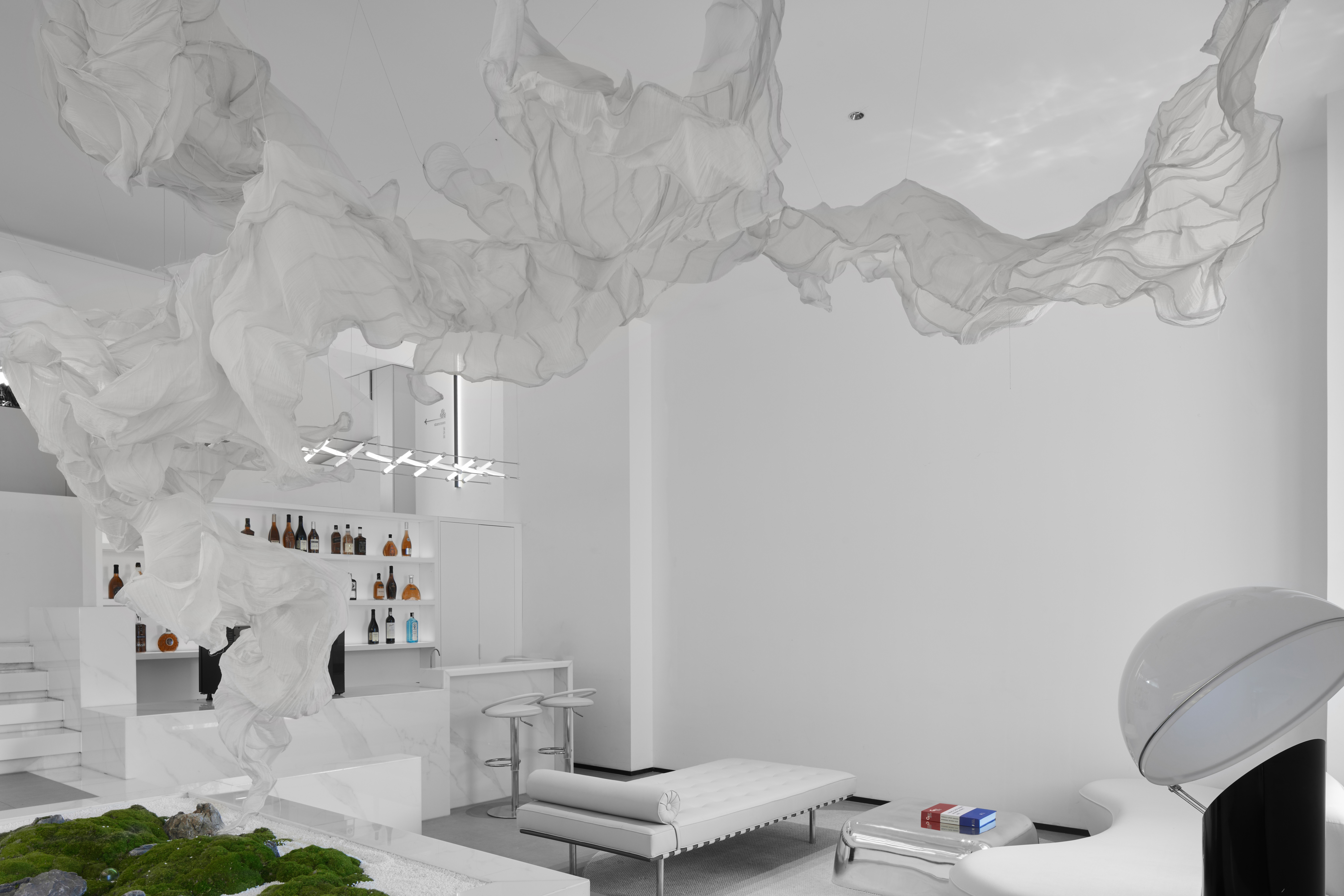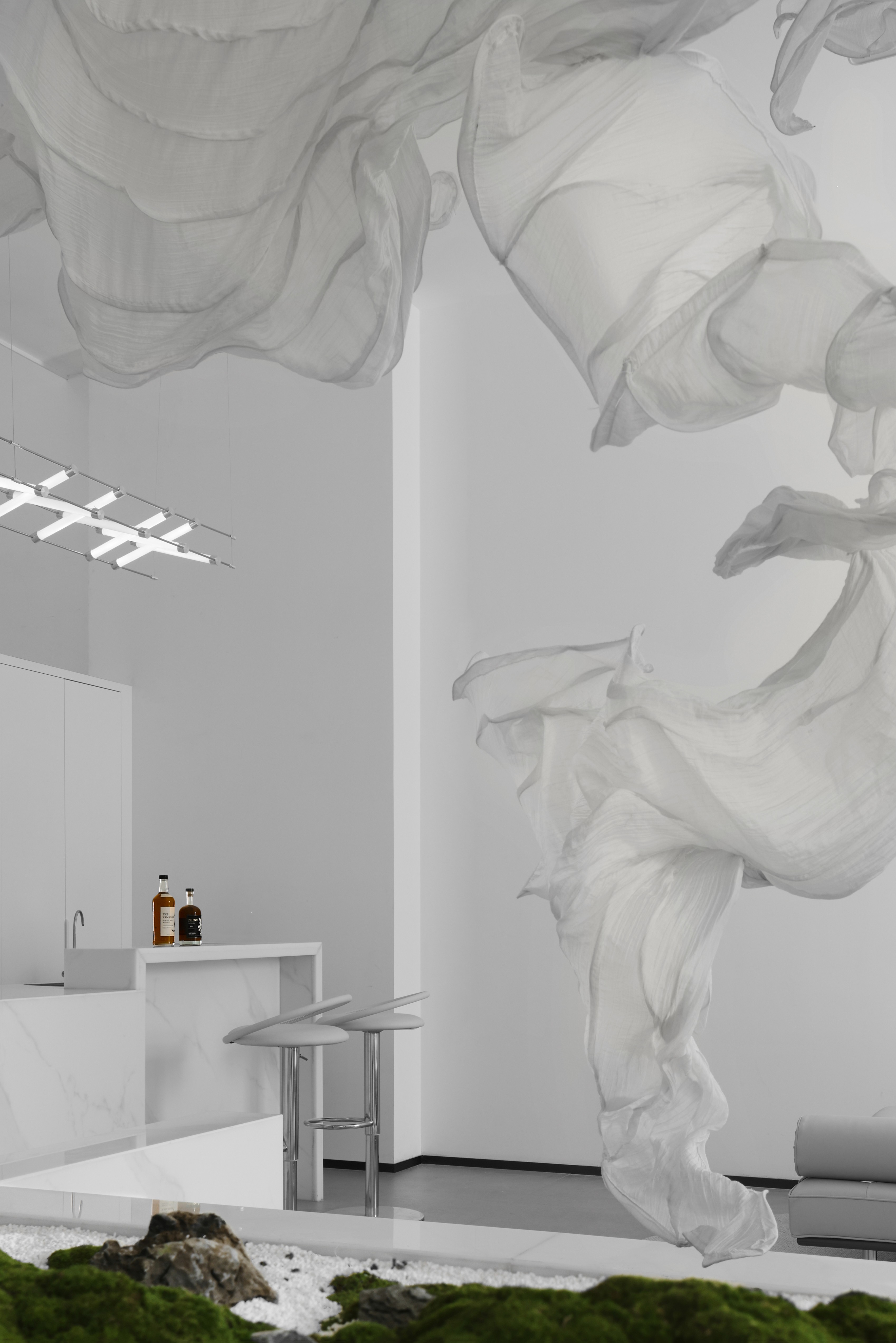 空间意境:以简洁克制的手法和建筑的语言表达空间本身的力量感。纯净的白,利落的线条,高级的材质,极简的布局,高低错落的结构起势,功能与美学的结合,可以激发我们的无限创造力,更好地去追寻自由。