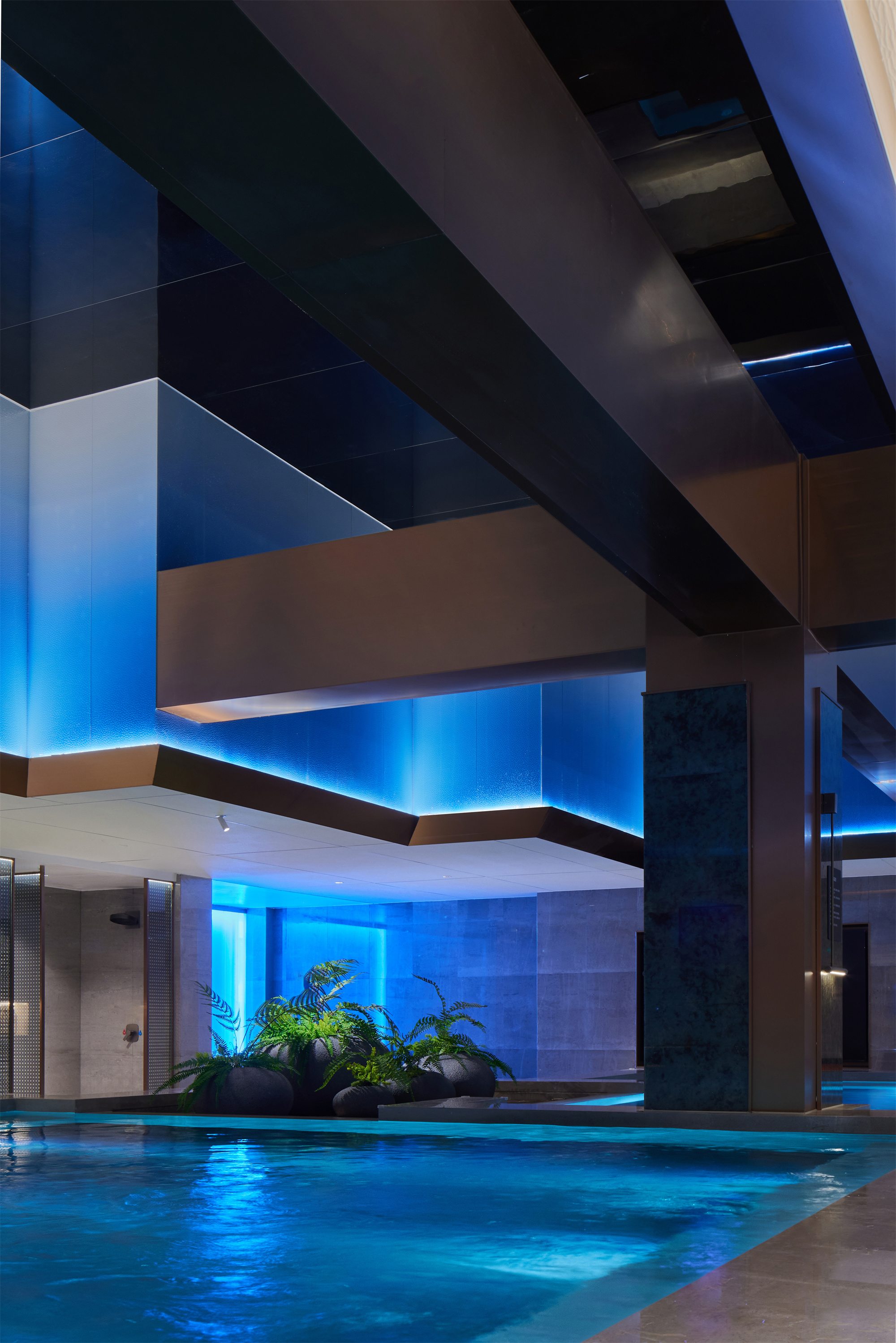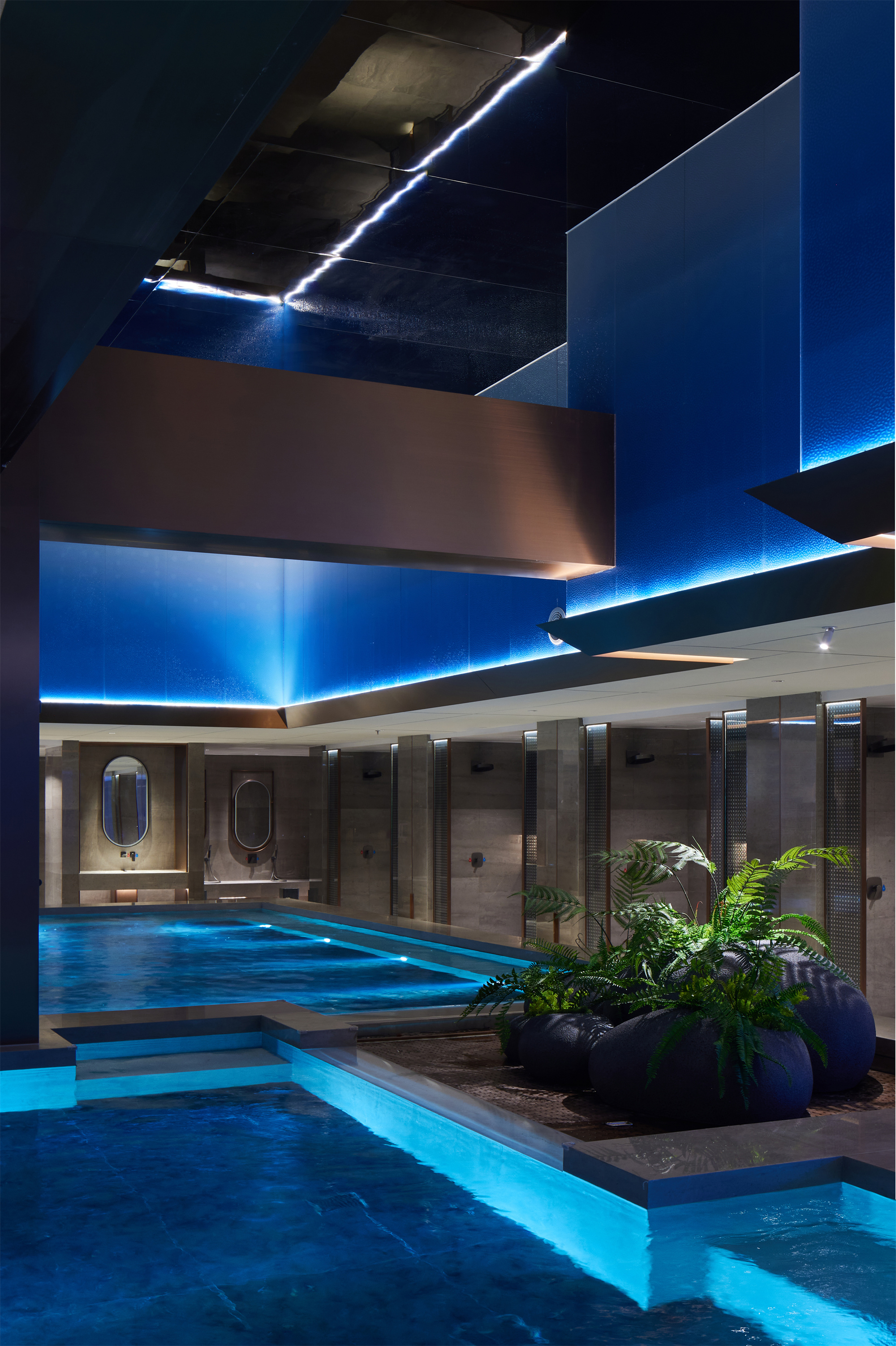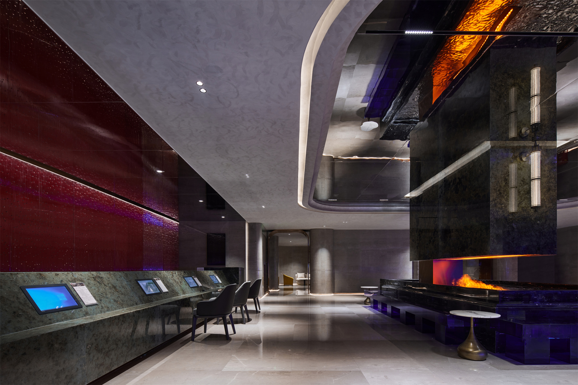用户体验:优雅、至简的设计触感贯穿空间始末,质感、色调、几何等要素搭建故事性场景,但各自独立性得以保留。设计师为当代年轻人献上的不止是一所休闲娱乐汤泉会所,更是一种享受当下的生活态度与价值共鸣。