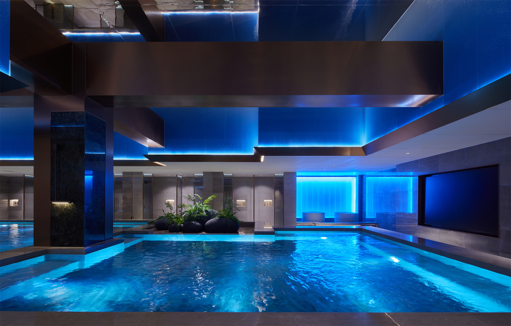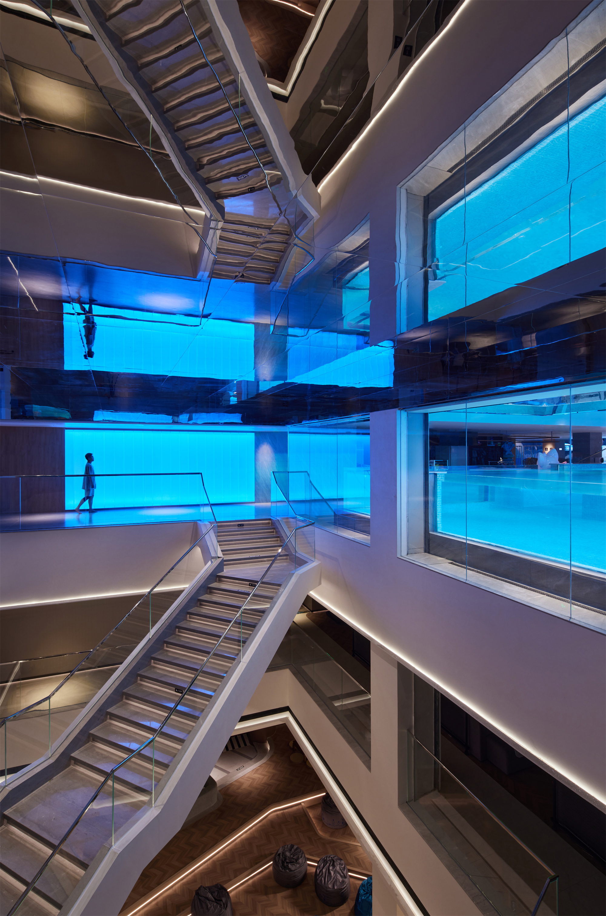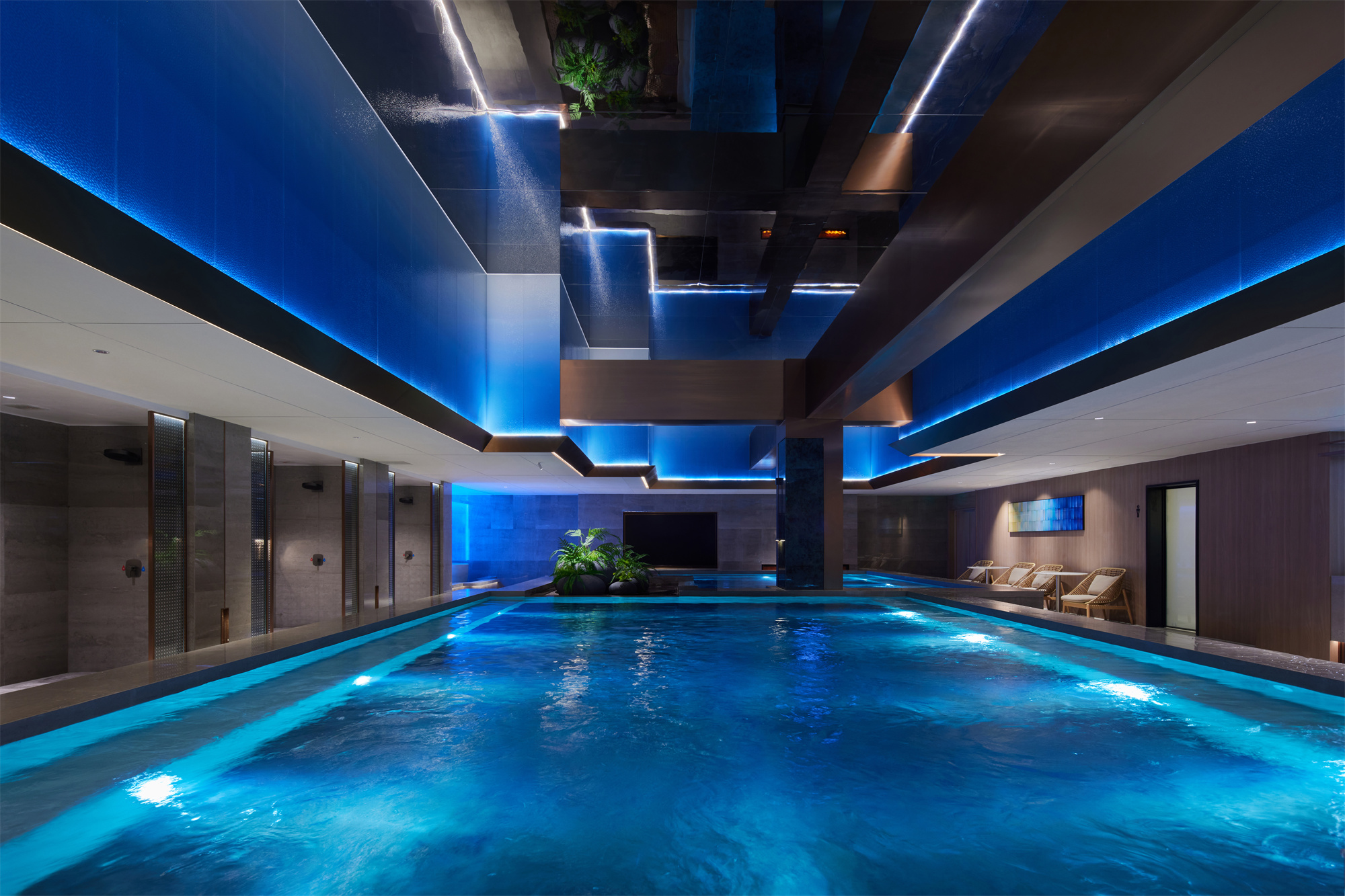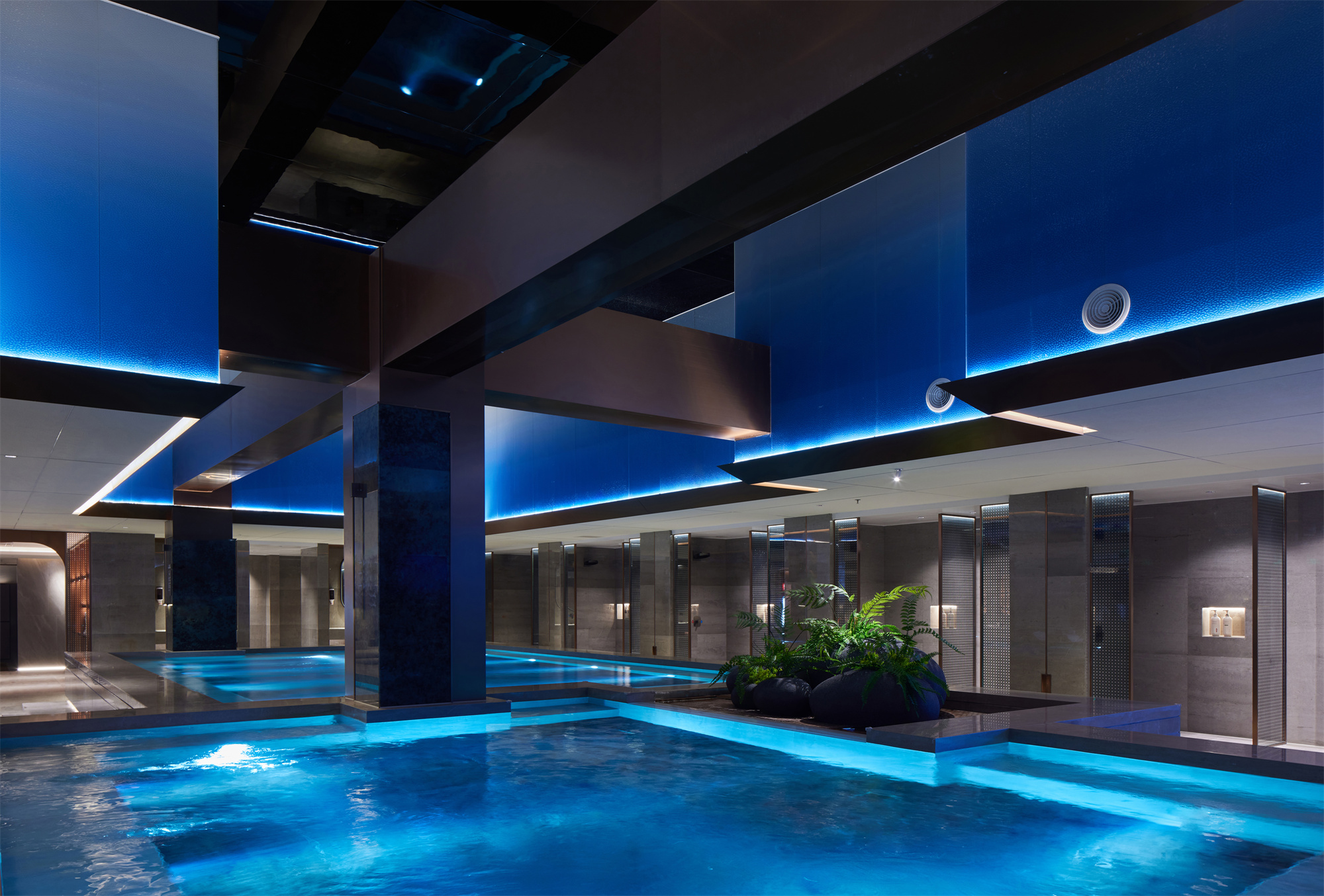 用户体验:优雅、至简的设计触感贯穿空间始末,质感、色调、几何等要素搭建故事性场景,但各自独立性得以保留。设计师为当代年轻人献上的不止是一所休闲娱乐汤泉会所,更是一种享受当下的生活态度与价值共鸣。