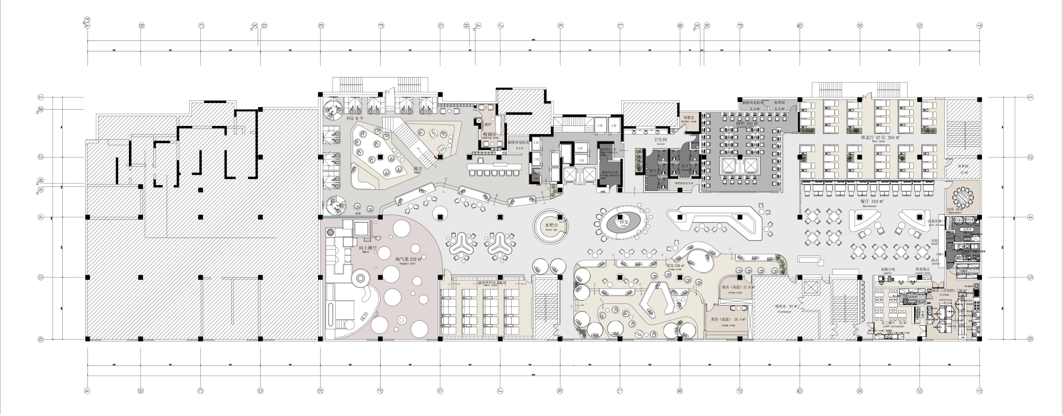 空间布局:设计多元化,结合高端,商务,休闲一体化满足各种需求