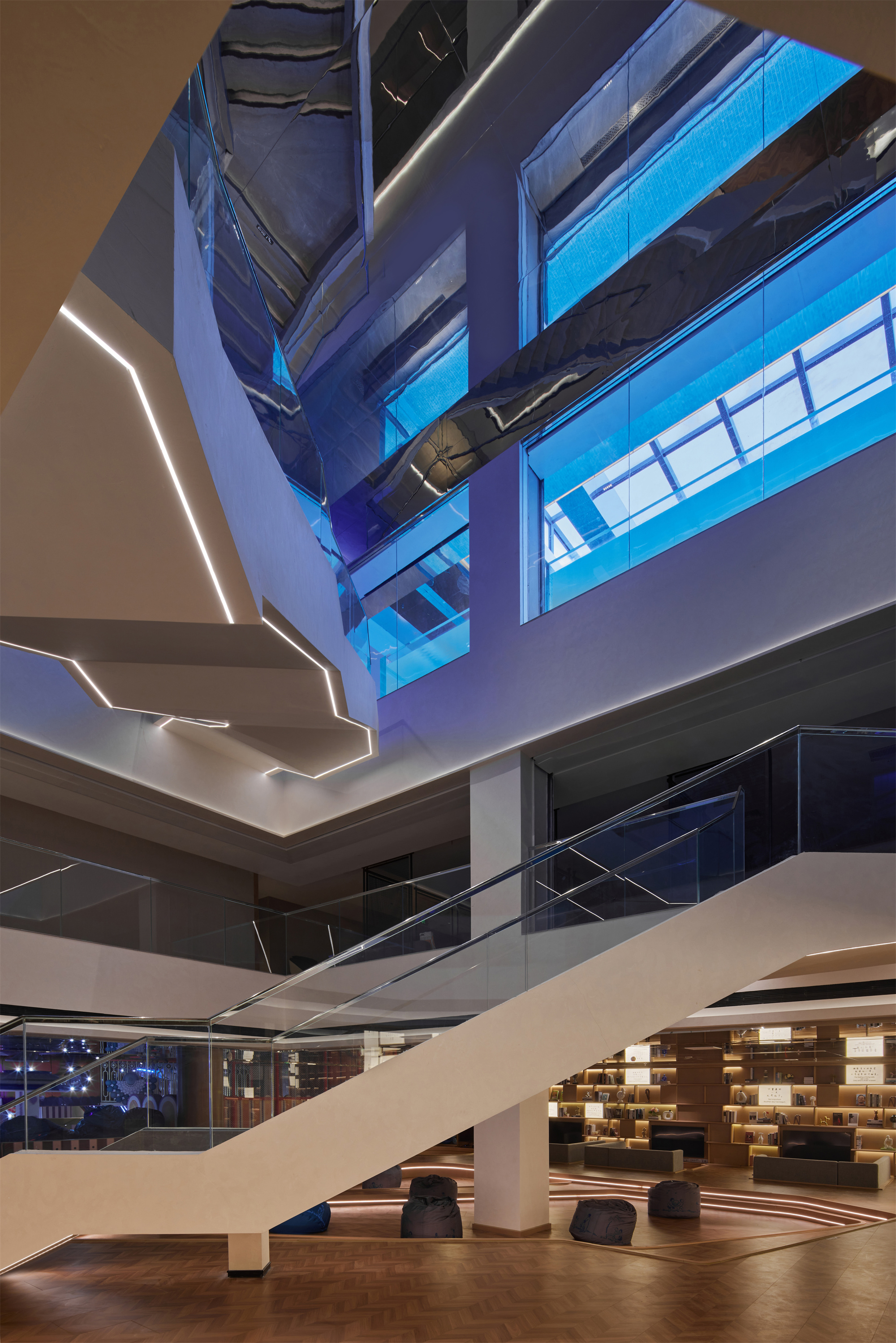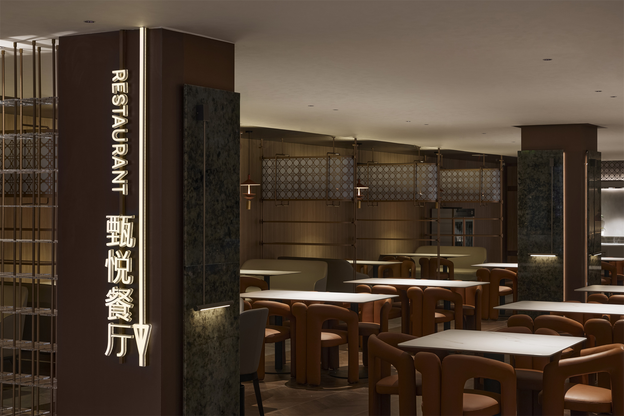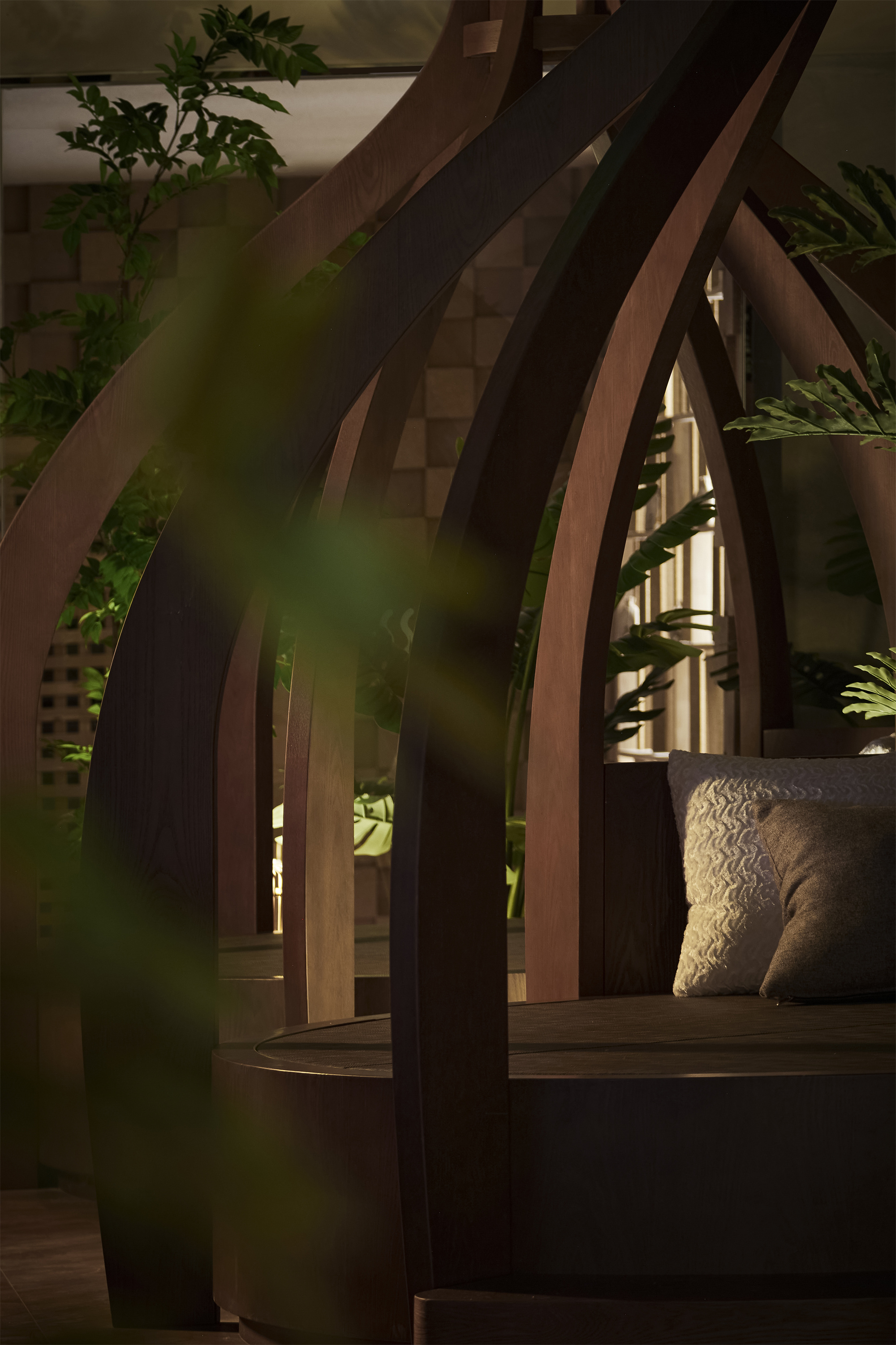 设计选材:将“城市客厅”理念融入空间的设计中,以空间为骨、艺术为翼、光为韵的设计手法,向每一位到访者演绎自然的“无为”与“不争”。取法自然,枝丫摇曳间,借光影,如山涧溪流,显玉石自然纹理,现安乐之质,注入空间自由与静谧。