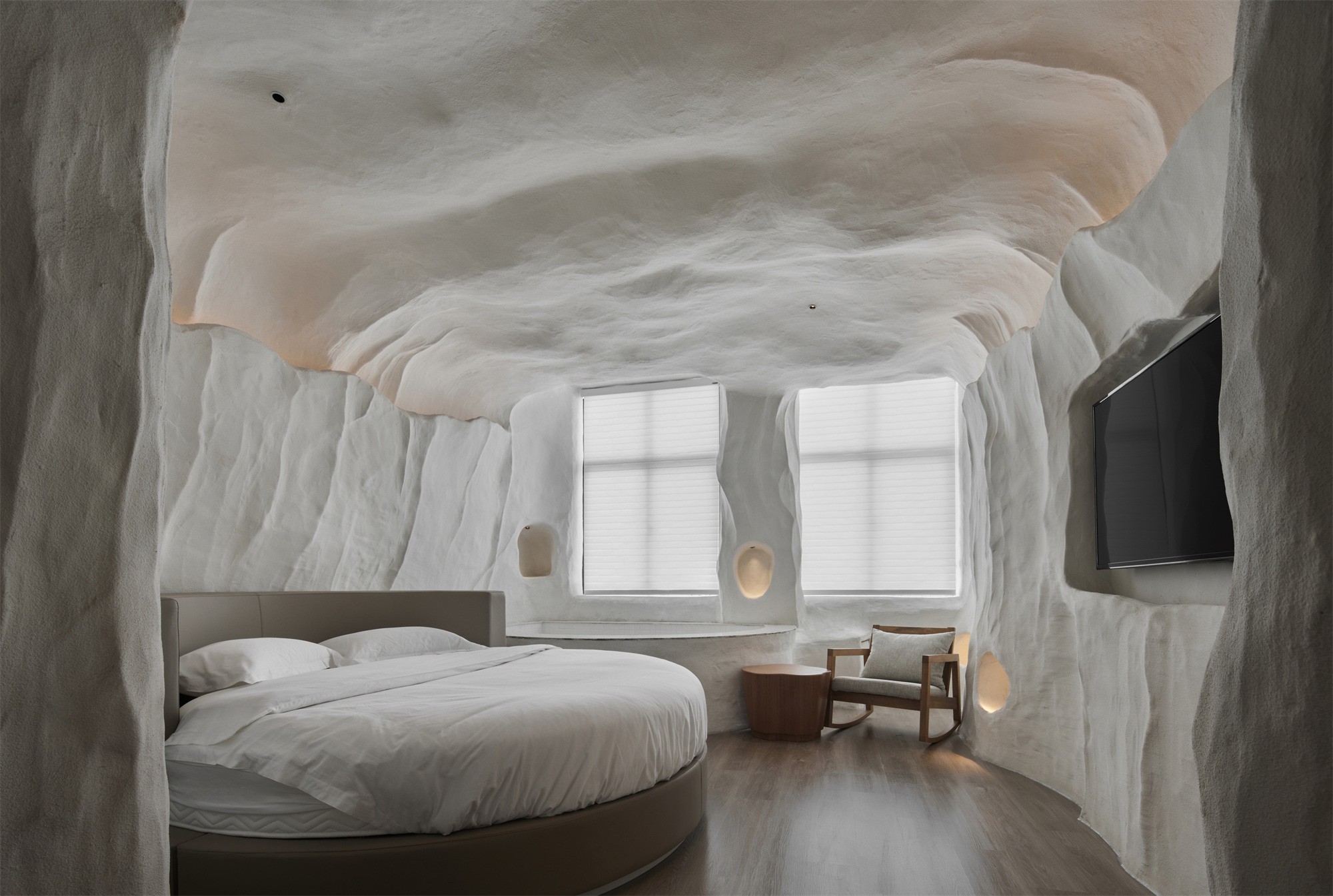 项目定位:以当代国际视野,思考人、自然与空间相互依存的艺术语言,探索极简主义,运用几何语言与微妙的材料肌理,于空间中相互呼应,虚实相生。