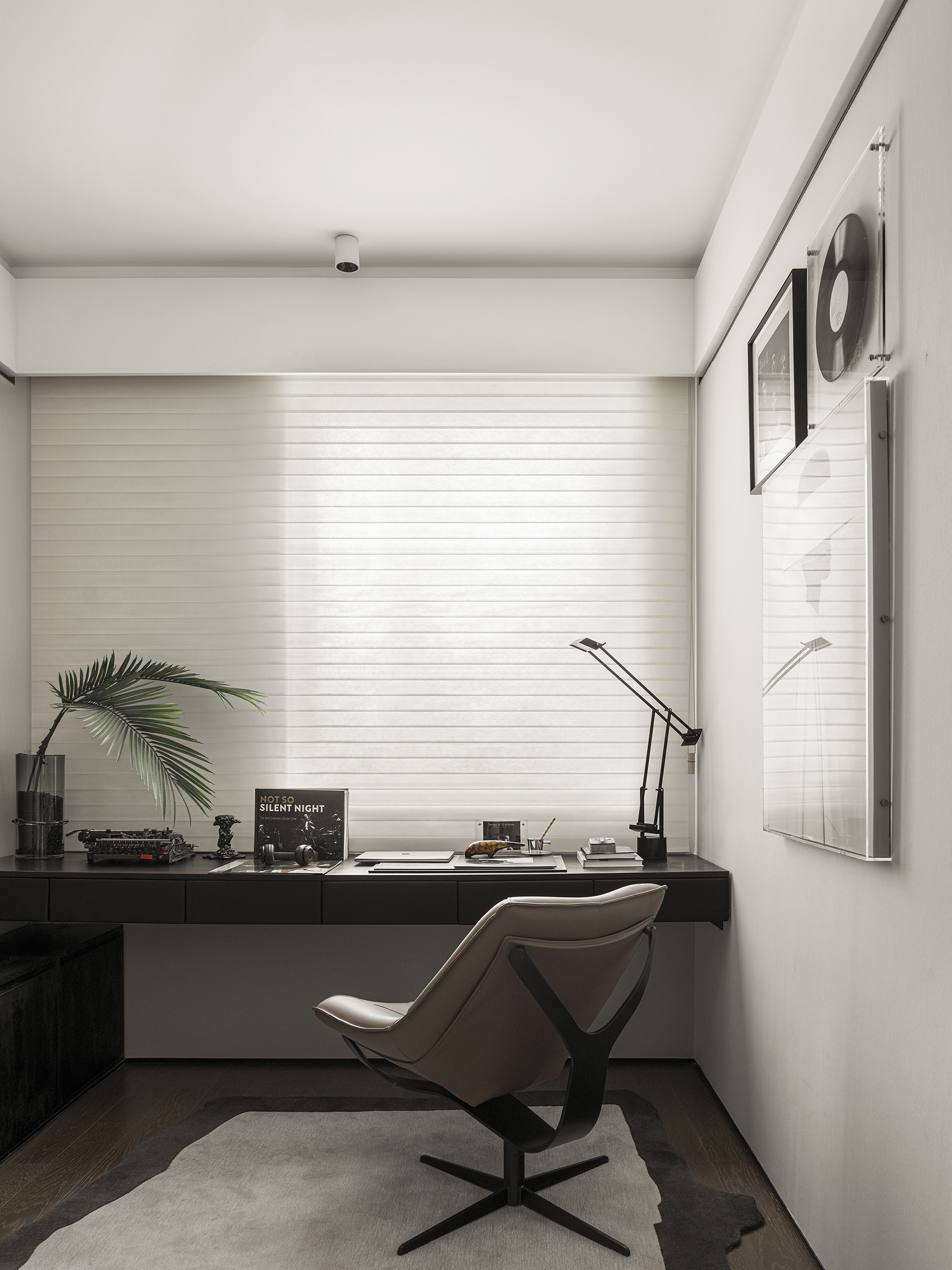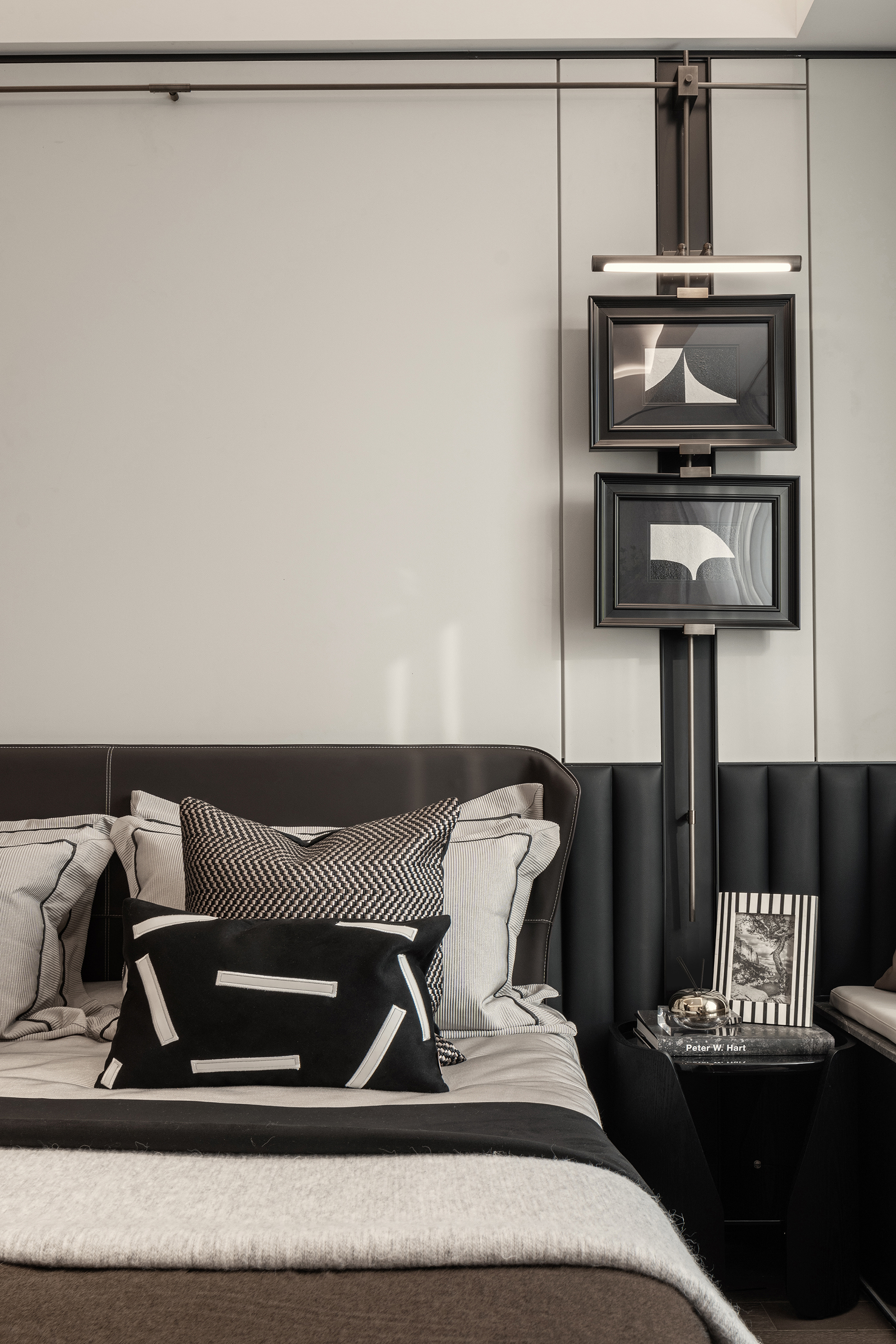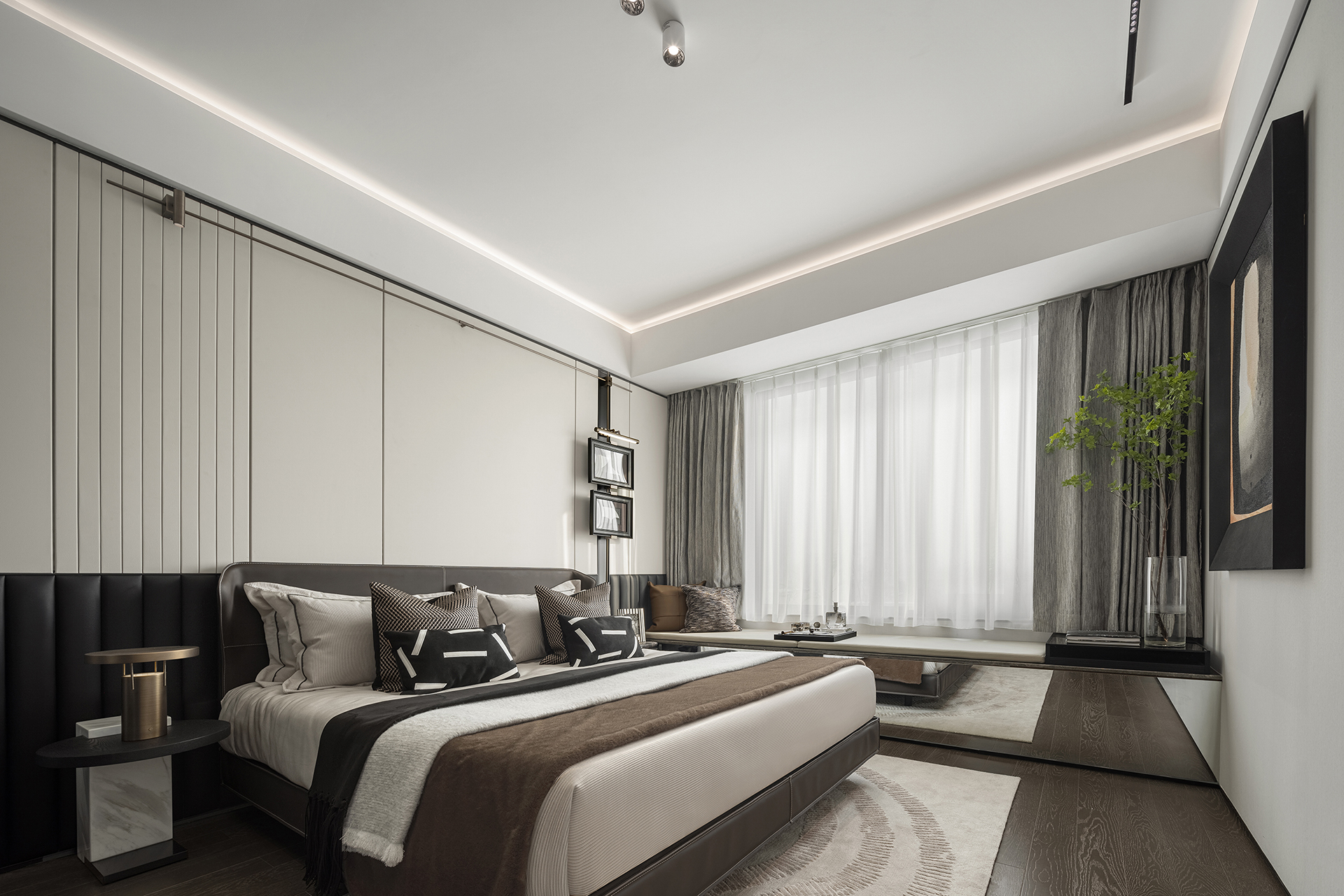 空间布局:作为私密的专属空间,主卧被打造为一处安逸的绿洲。美拉德色系贯穿于其中,让空间氛围更显温暖厚实;没有夸张的设计修饰,更加强调家居舒适的尺度以及品质感,这是心灵栖息的角落。