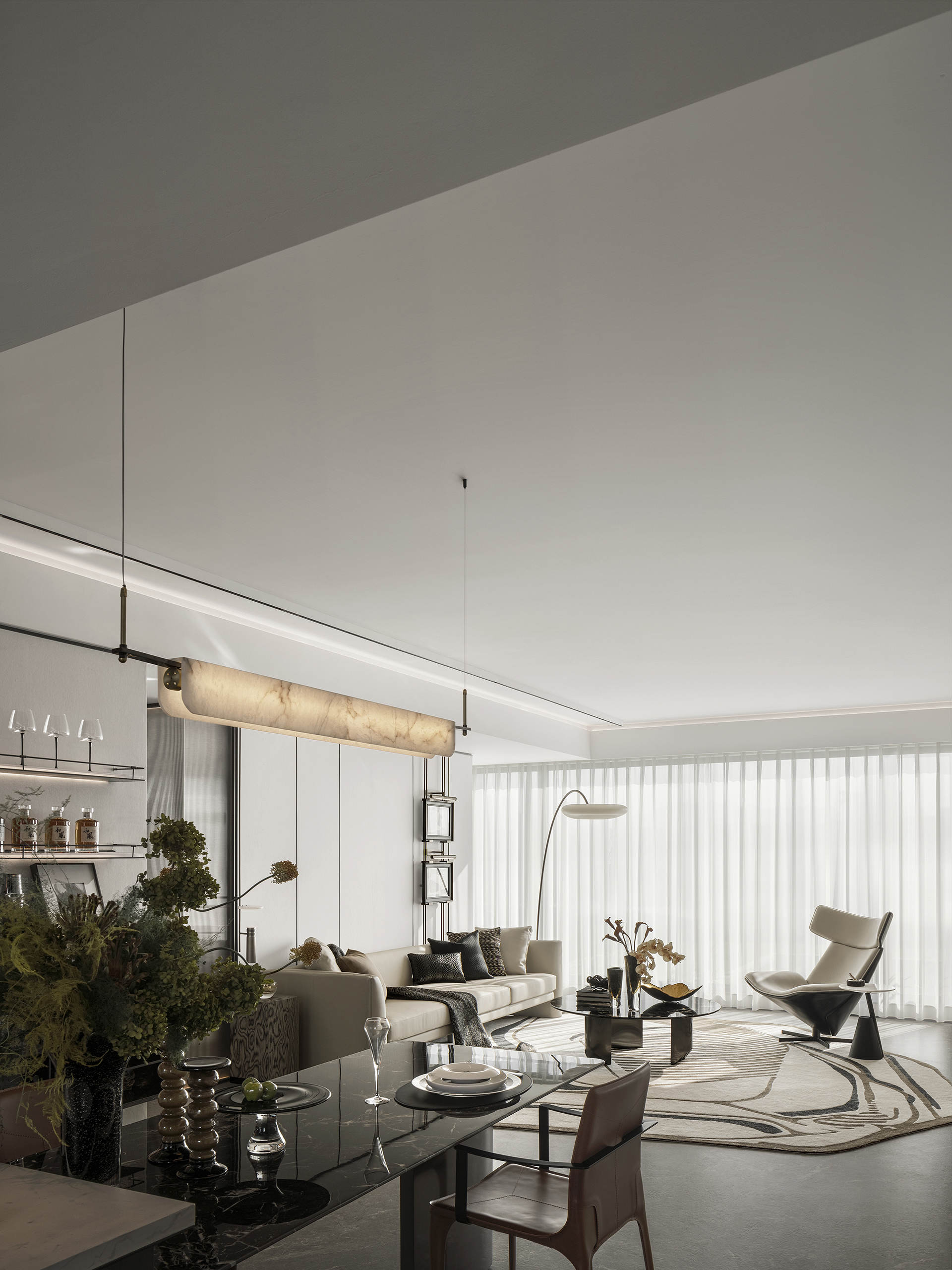 用户体验:青岛中海寰宇时代 · 雲境样板间,通过对都市生活的深入思考,在极致与时尚潮流之间寻求超凡的平衡感,展示了现代居住环境的尊享与舒适,打造都市理想栖息之地。