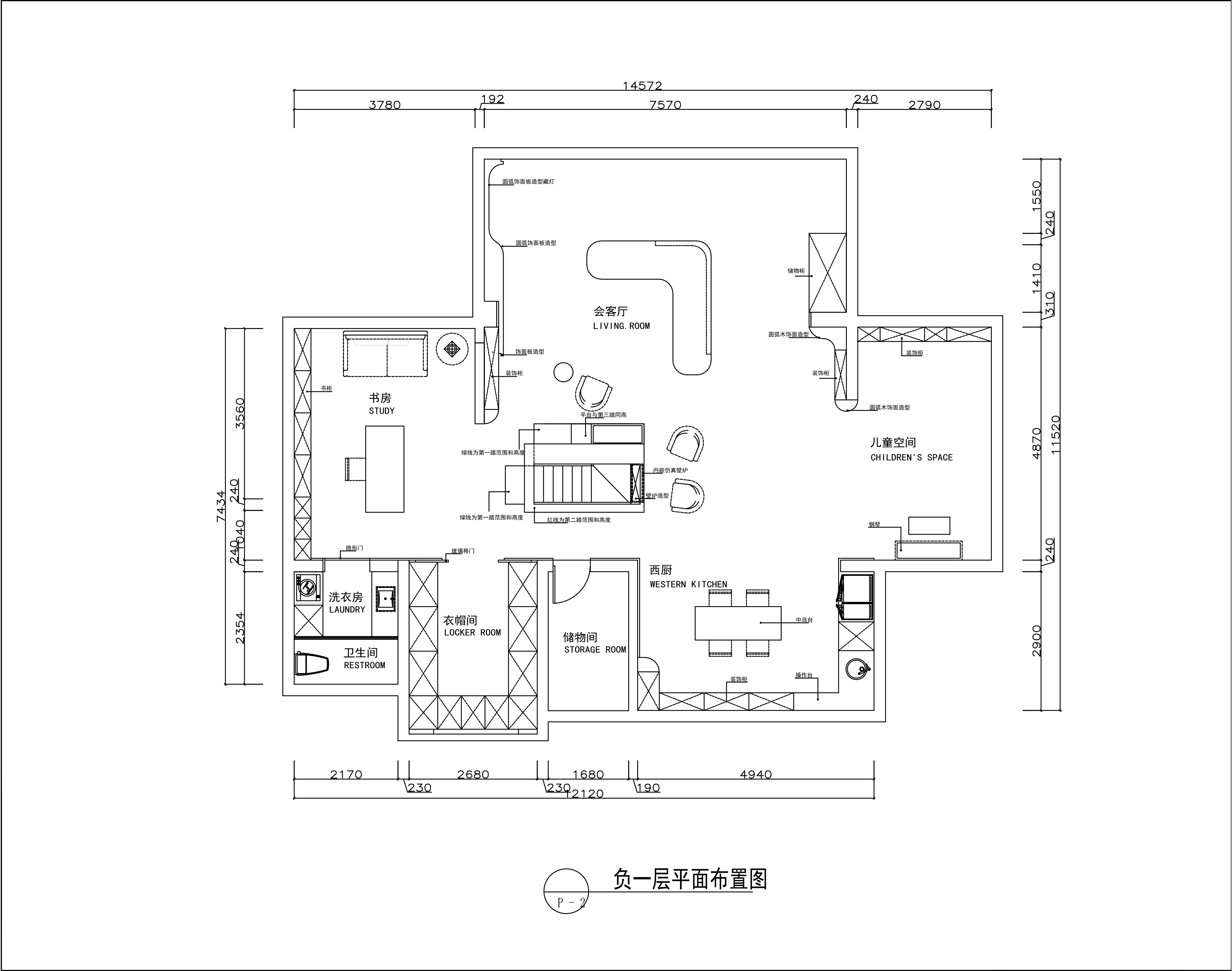 负一楼原始空间隔墙较多,空间比较分散,空间通透性和交互性较弱。