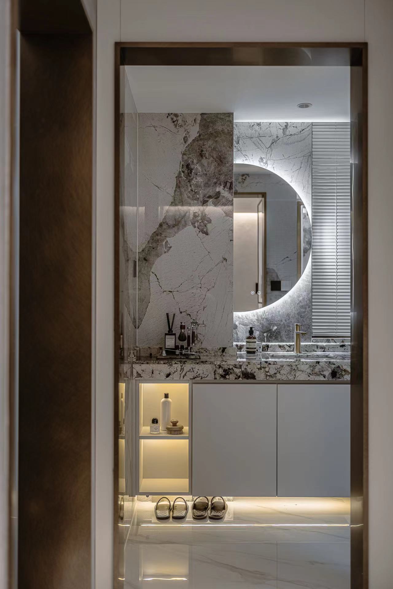 卫生间采用大理石纹瓷砖,搭配智能化的卫浴设施,彰显品质生活。 -