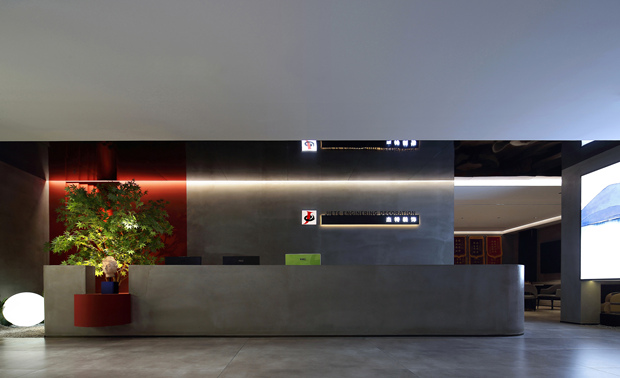 走道:大面积的素色水泥和深灰色砖构成项目基色,点缀浅原木色,使空间不再显沉闷。