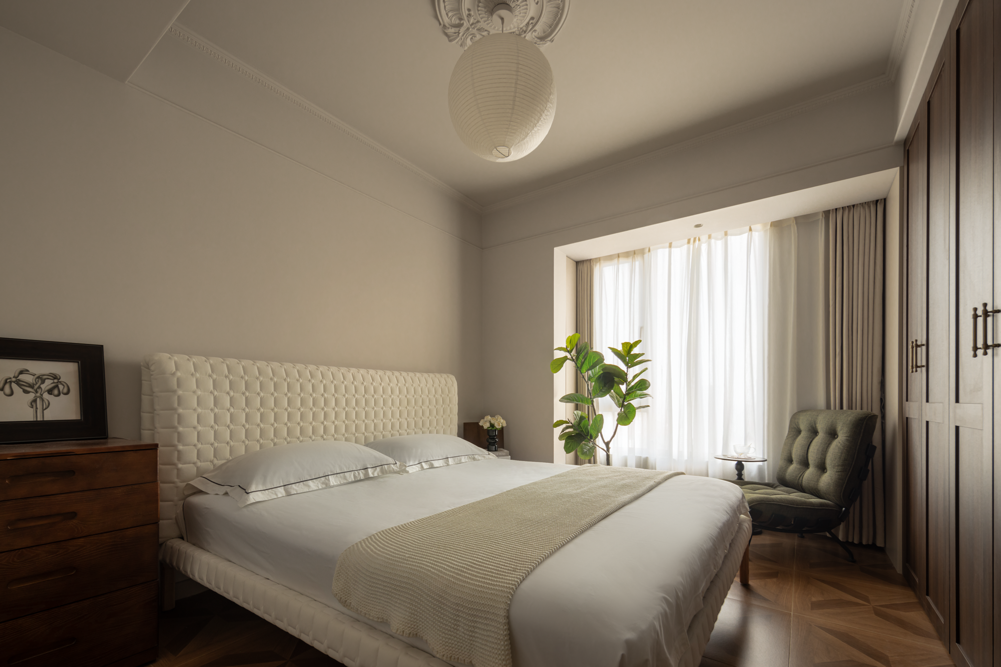 卧室空间延续了整体的中古基调。自由且优雅的氛围。这里,正是我们心驰神往的居所,既充满生活的趣味,又不失宁静与雅致,让每一天都充满着新鲜感与期待。