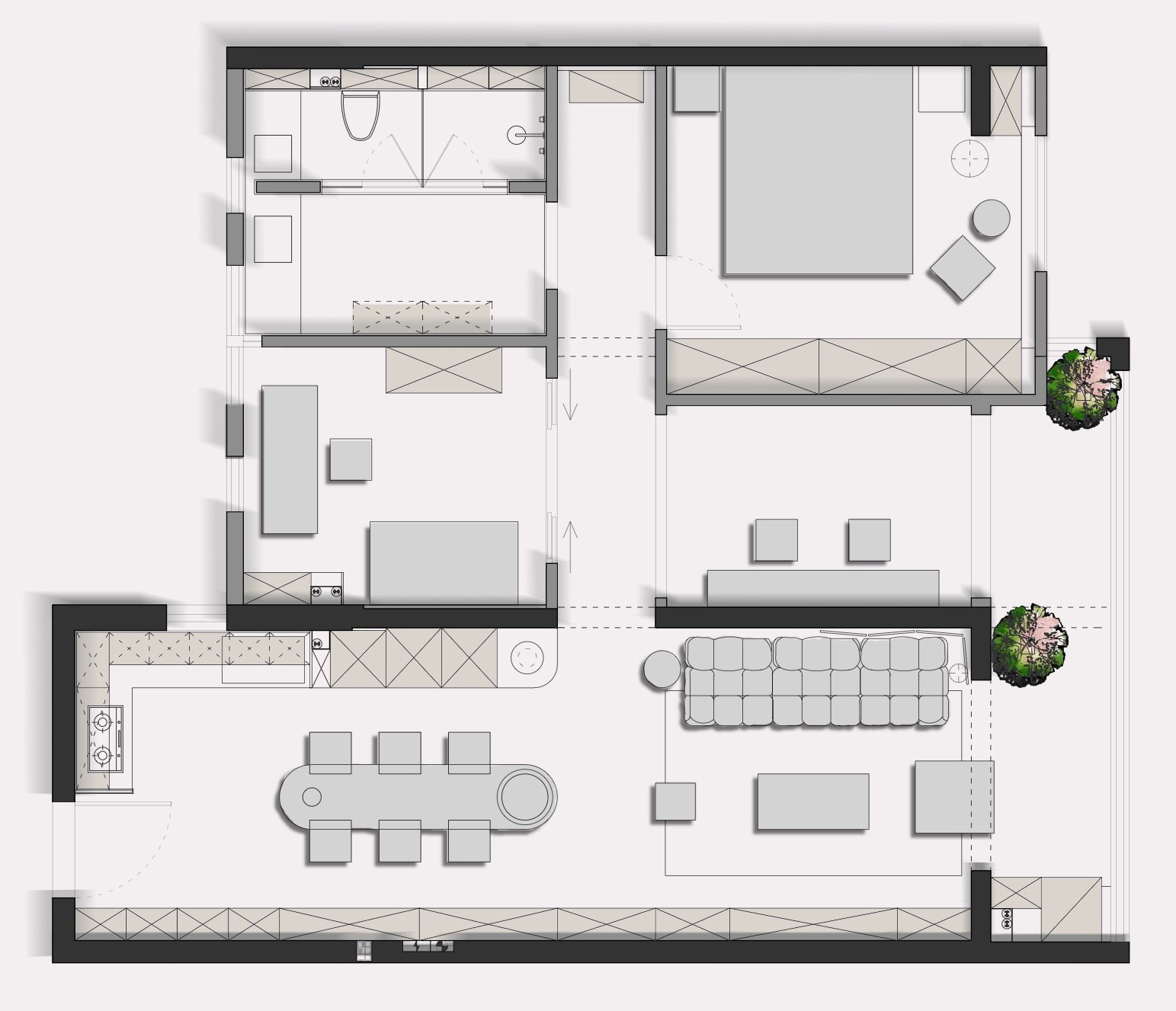 项目定位:本案设计理念旨在和谐,舒适且功能齐全,同时满足多样化需求基础上,通过绿植或微景观营造空间情绪价值。
