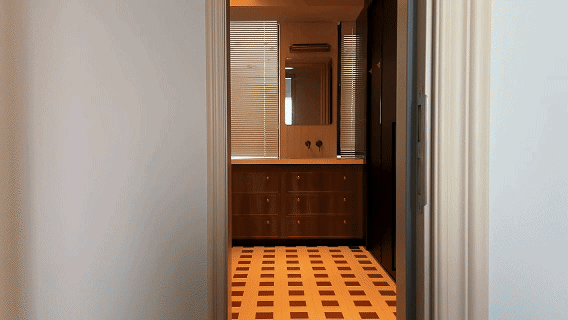 卫生间吊顶设计师也做了一些巧思,弧型顶拉高视觉层高,同时考虑空调出风口,所以做了错层吊顶,暗藏灯光和空调出风口。错落有致的顶部,自然光+暖性光源,让卫生间氛围质感拉满。