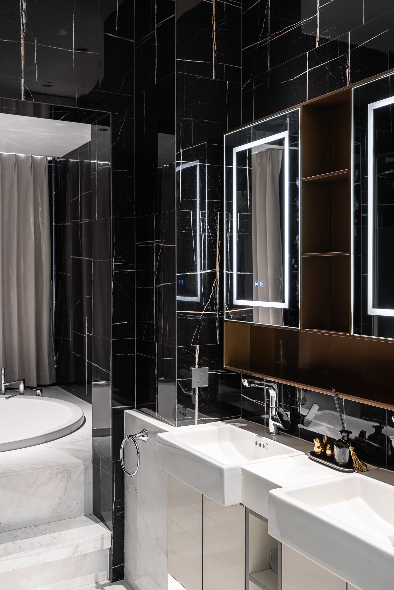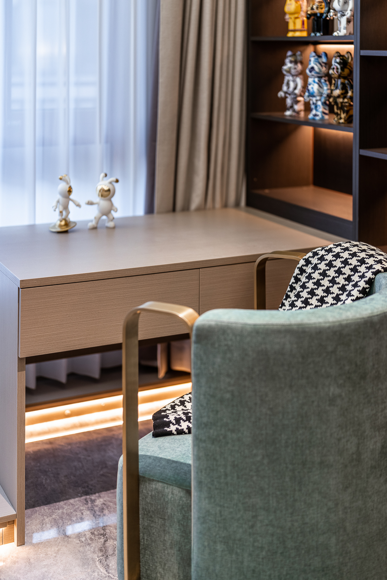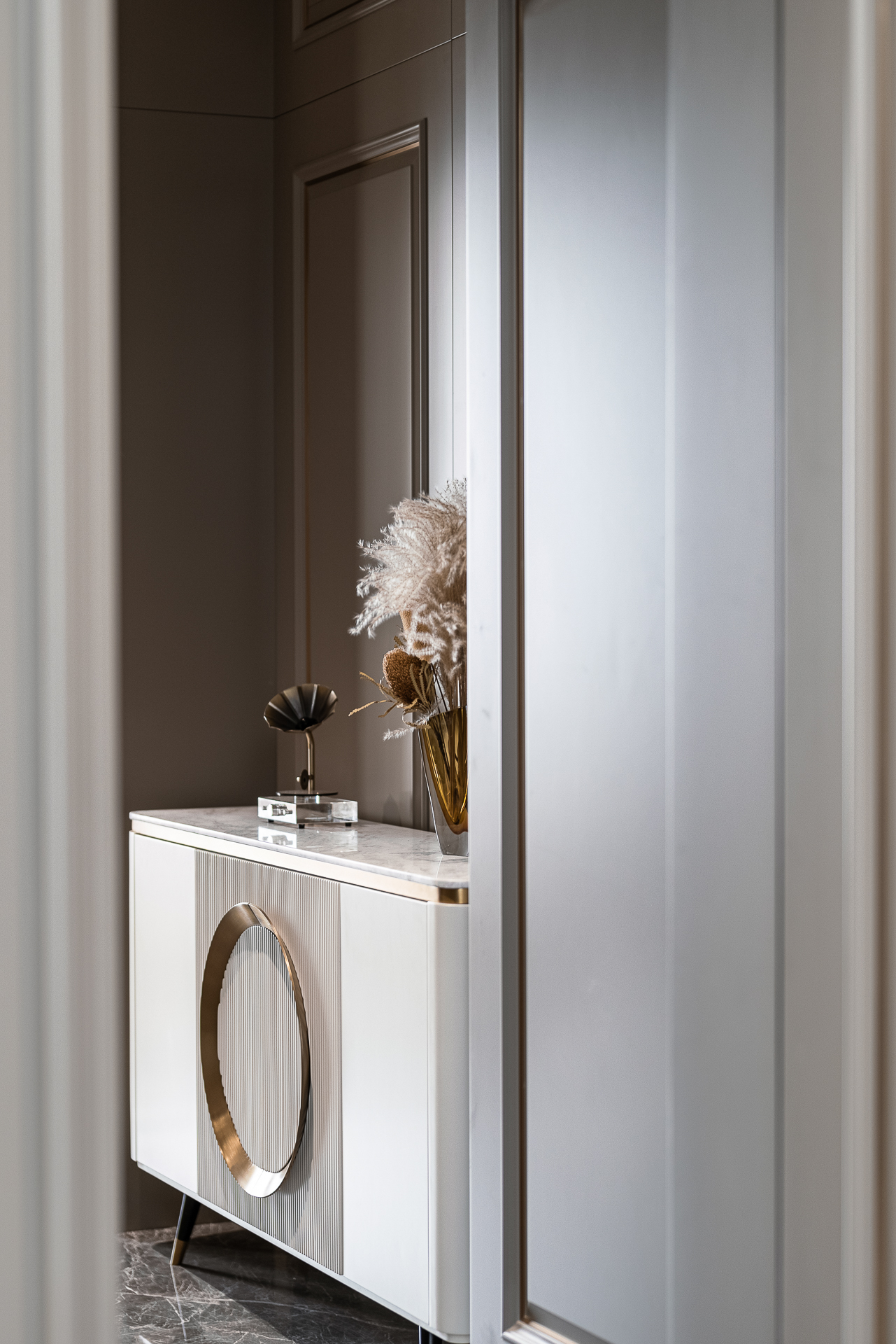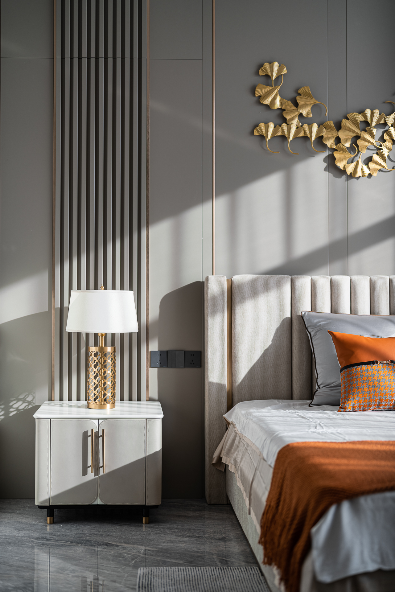 空间意境:通过简洁流畅的线条、精致细腻的材质以及恰到好处的装饰元素,营造出既现代又不失温馨奢华的氛围。以中性色调为基底,巧妙融入金色、铜色等金属质感,增添空间的层次感和高级感。