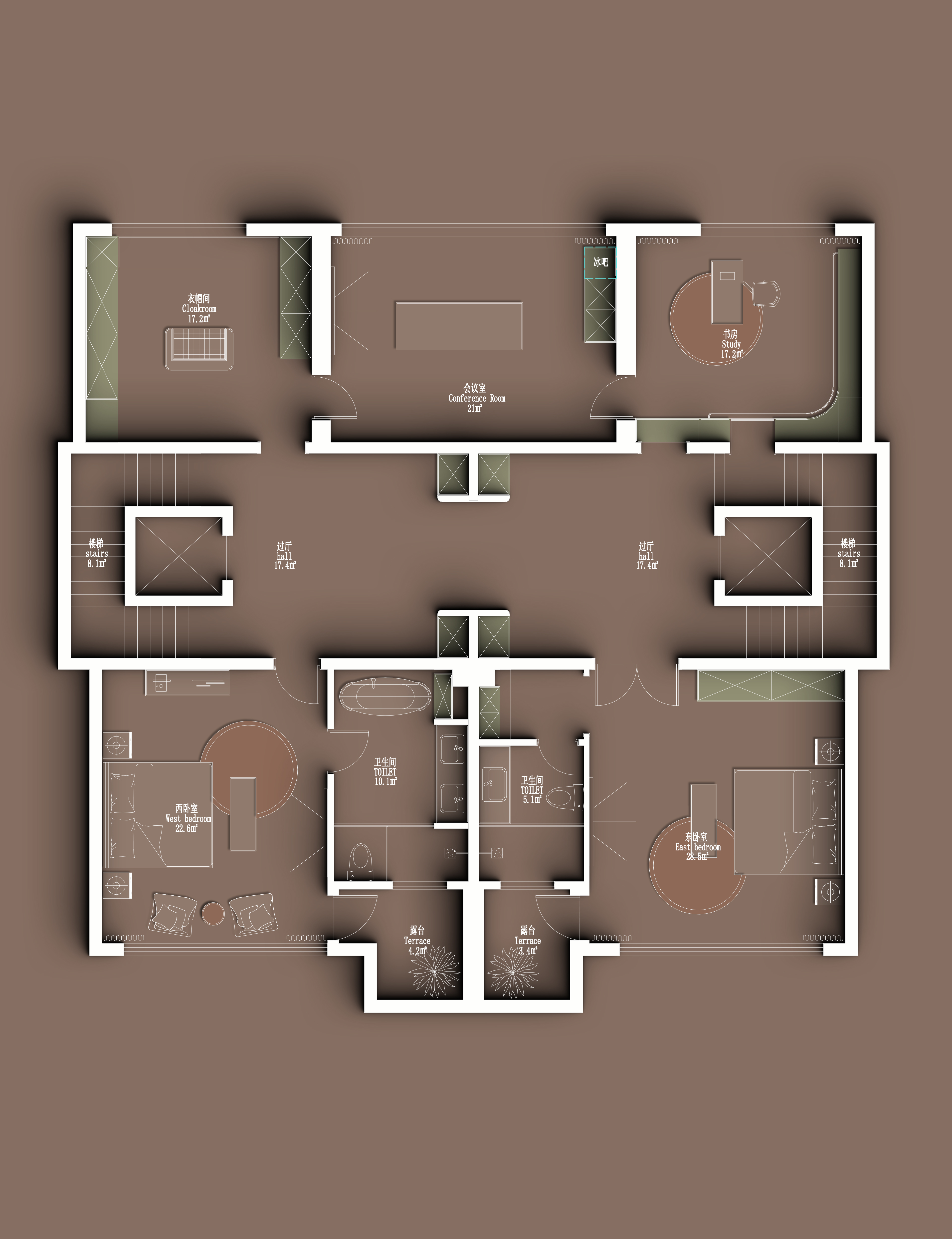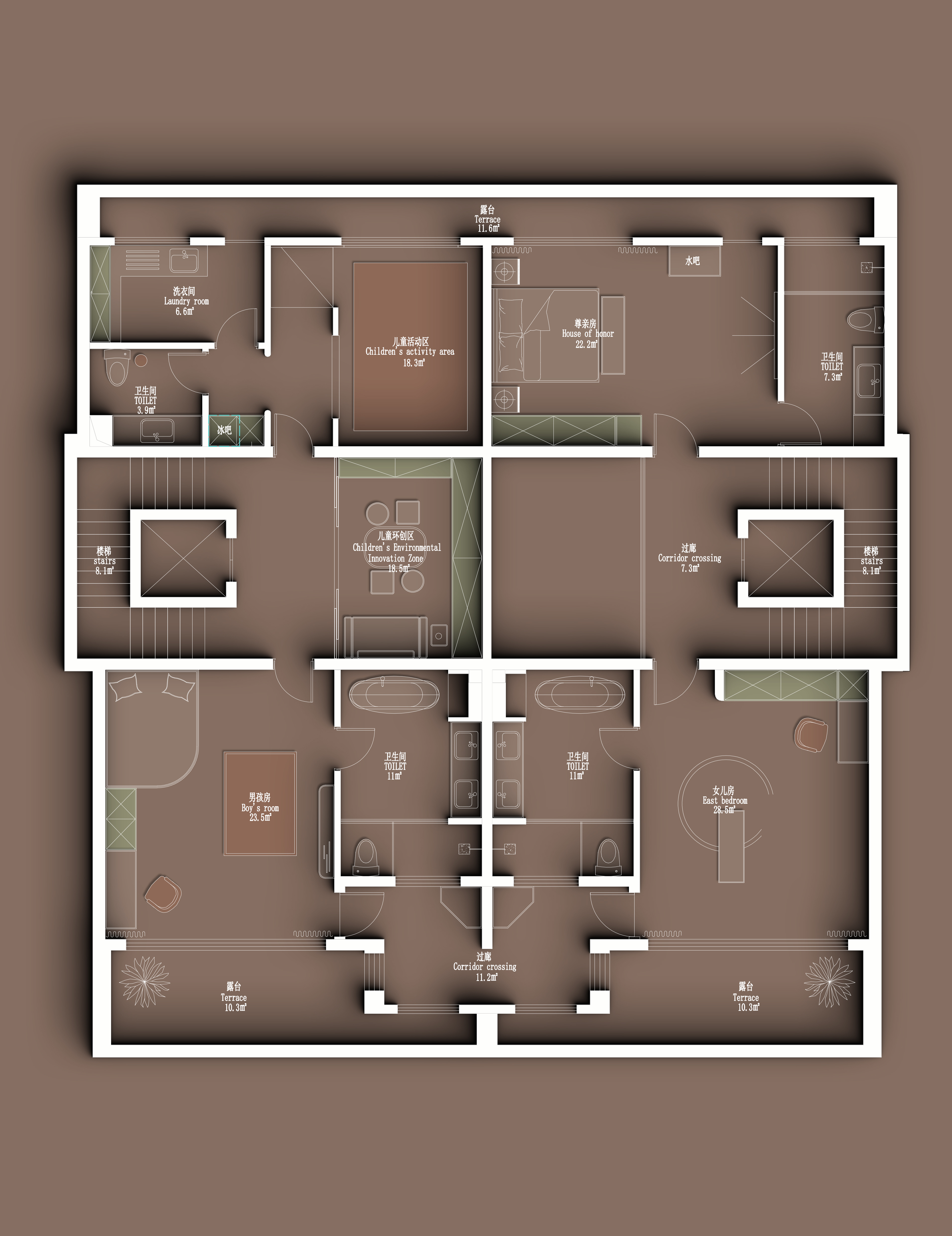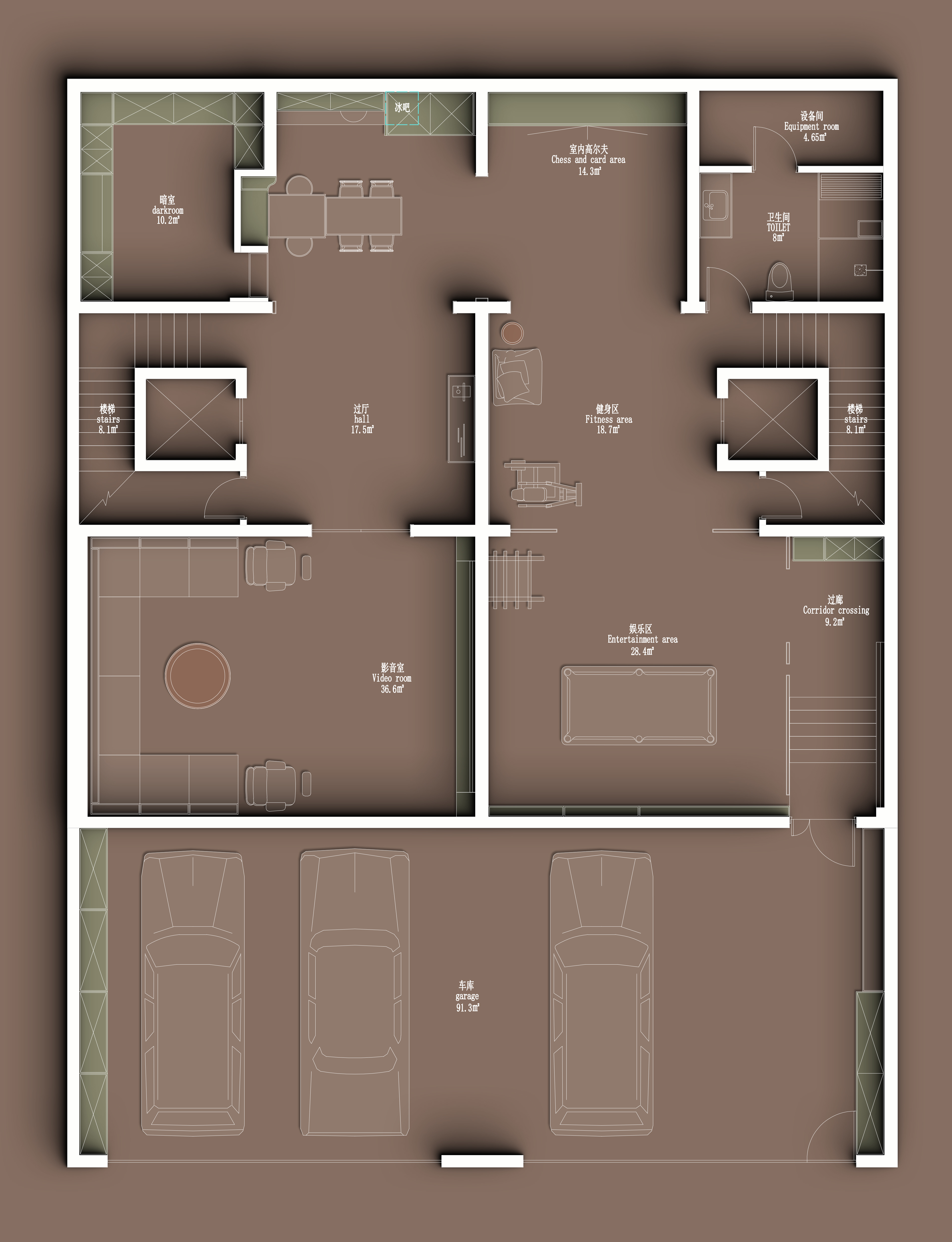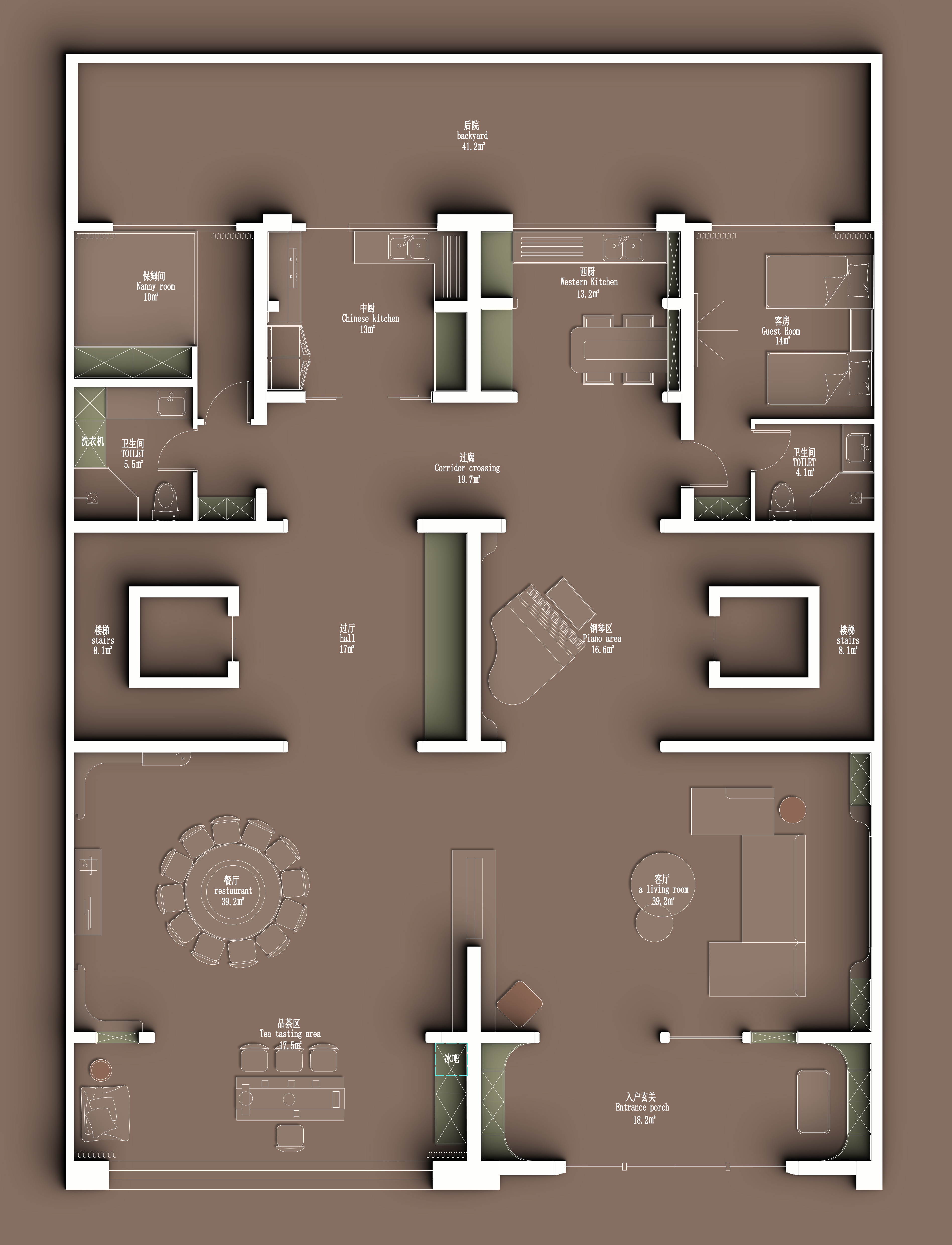 空间意境:外观上,采用简洁大气的线条勾勒出建筑轮廓,搭配质感丰富的石材和金属装饰,营造出高贵而不失现代感的形象。入口处以精致的雕花和华丽的灯光迎接主人与宾客,彰显尊贵。