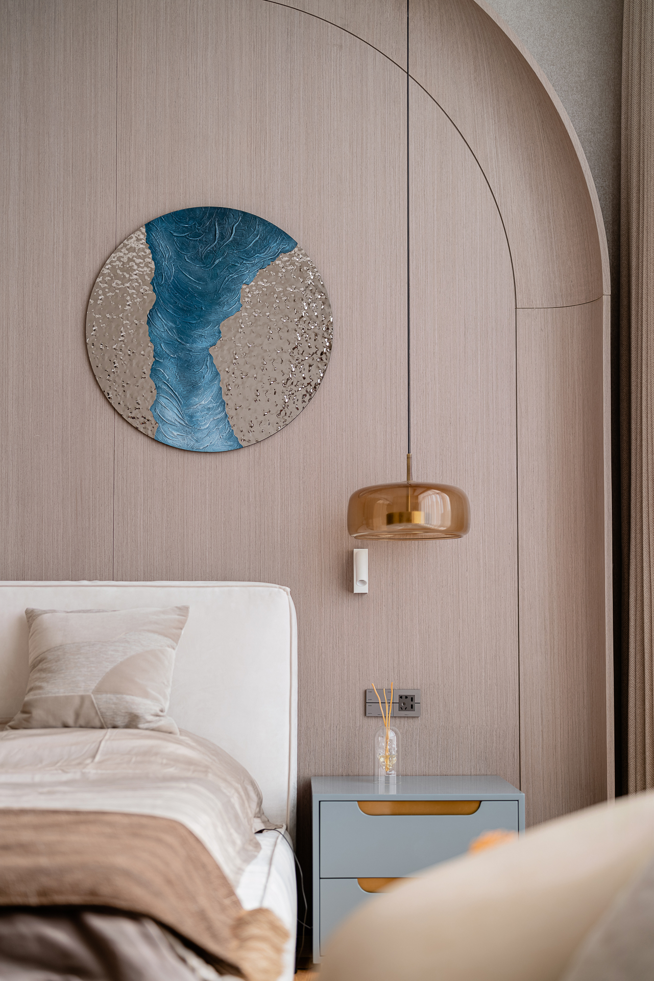 空间布局:餐厅采用开放式设计,与厨房相连,方便互动。厨房配备高端厨具,满足烹饪需求。卧室设计温馨舒适,营造出宁静的休憩氛围。