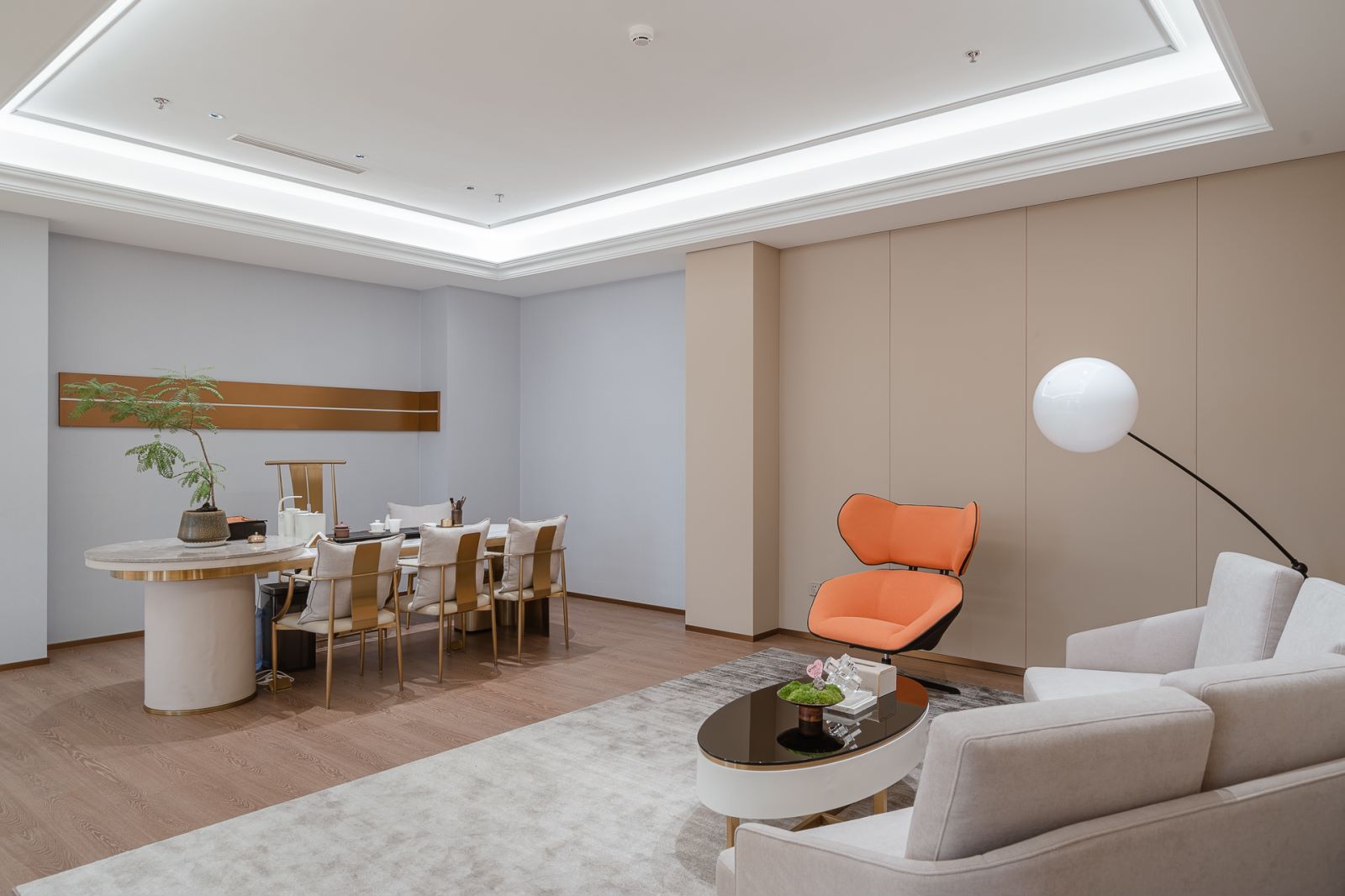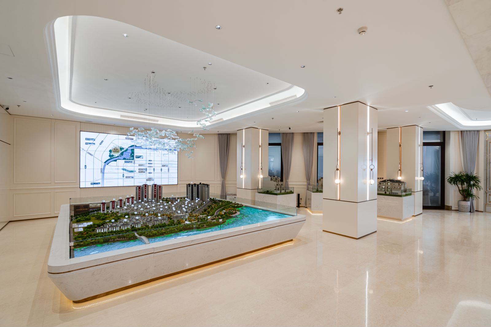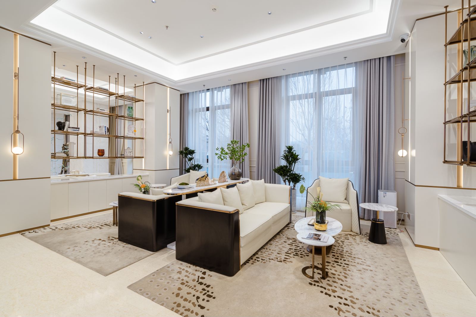 空间布局:遵循“少即是多”的原则,通过合理规划功能分区,使整个空间在形象与功能上更加契合楼盘的法式风格和浪漫情调。法式轻奢风格在这里得到了极致的演绎,既展示了对美好家居生活的向往与追求,也体现了现代精致生活的理念。这种设计不仅满足了访客对高端生活方式的期待,更为他们提供了一种尽情享受美好生活的态度。