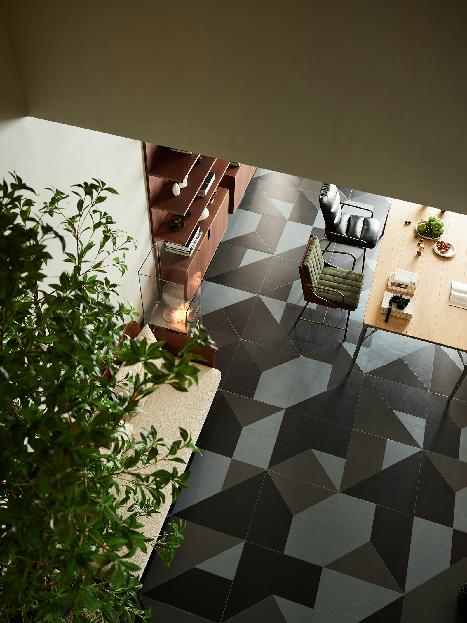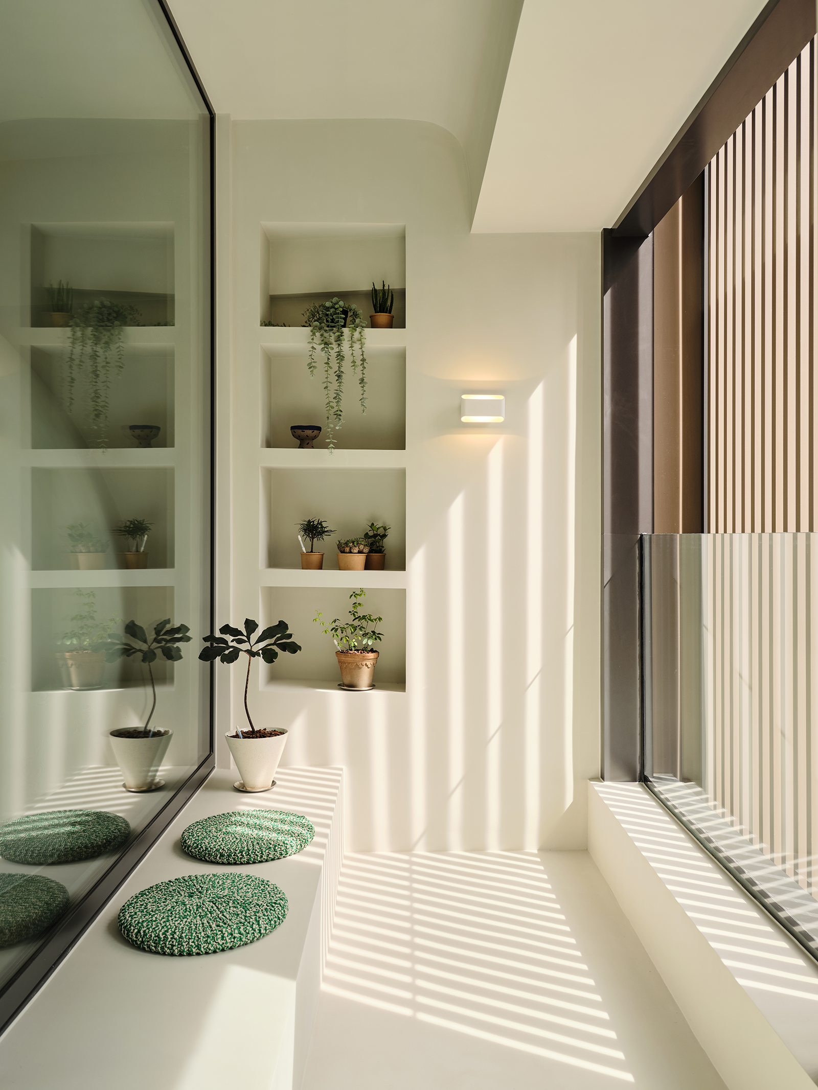 外部区域则围合成了一处休闲区,放上几个座垫,搭配点绿植,夕阳下斜卧在椅中吹着晚风看着落日,想想都是一件畅快事儿。