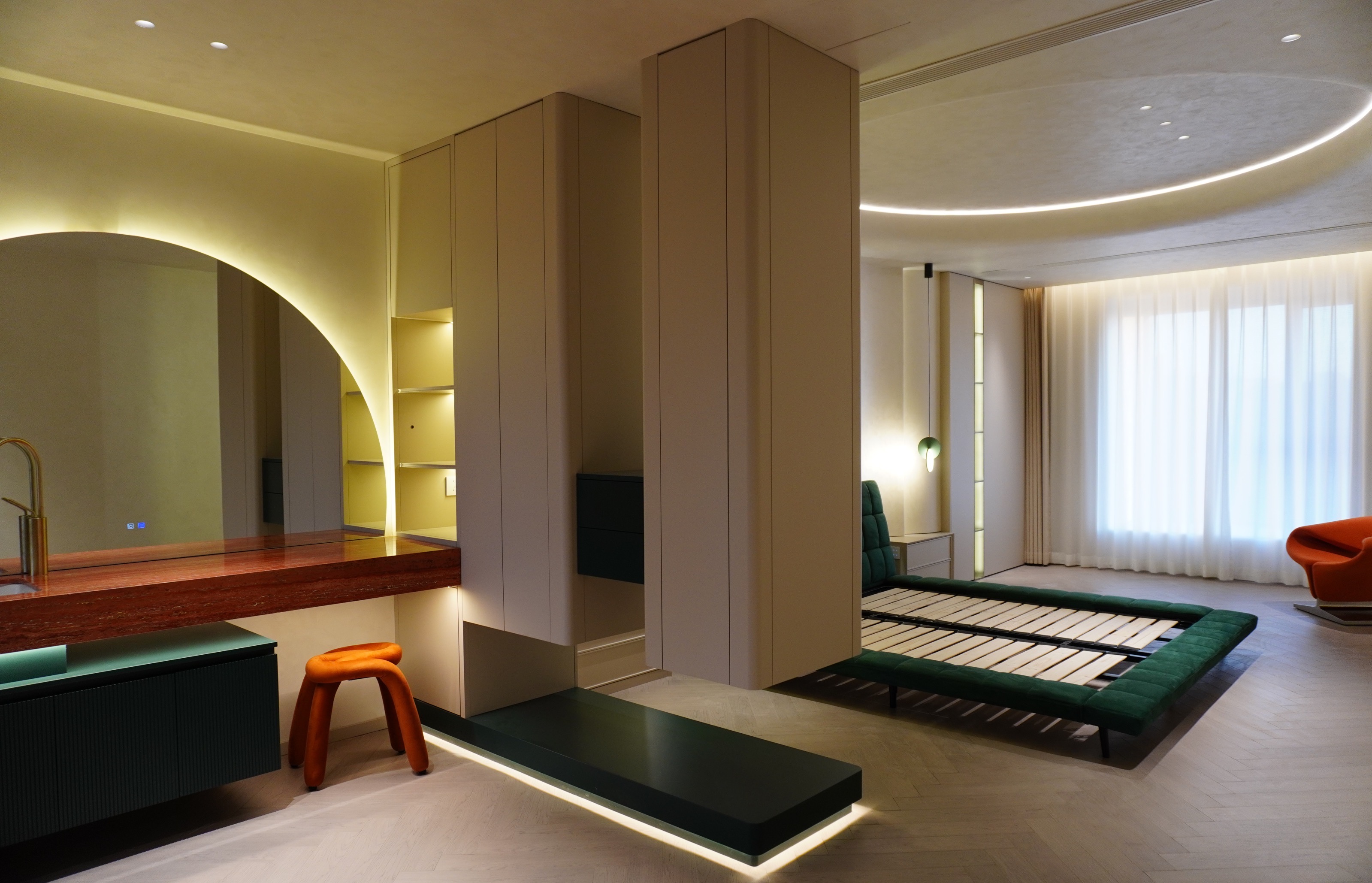 空间意境:曲线、弧线的设计手法,结合整体主色调的柔美,又具专属独特的时尚造型艺术展现。