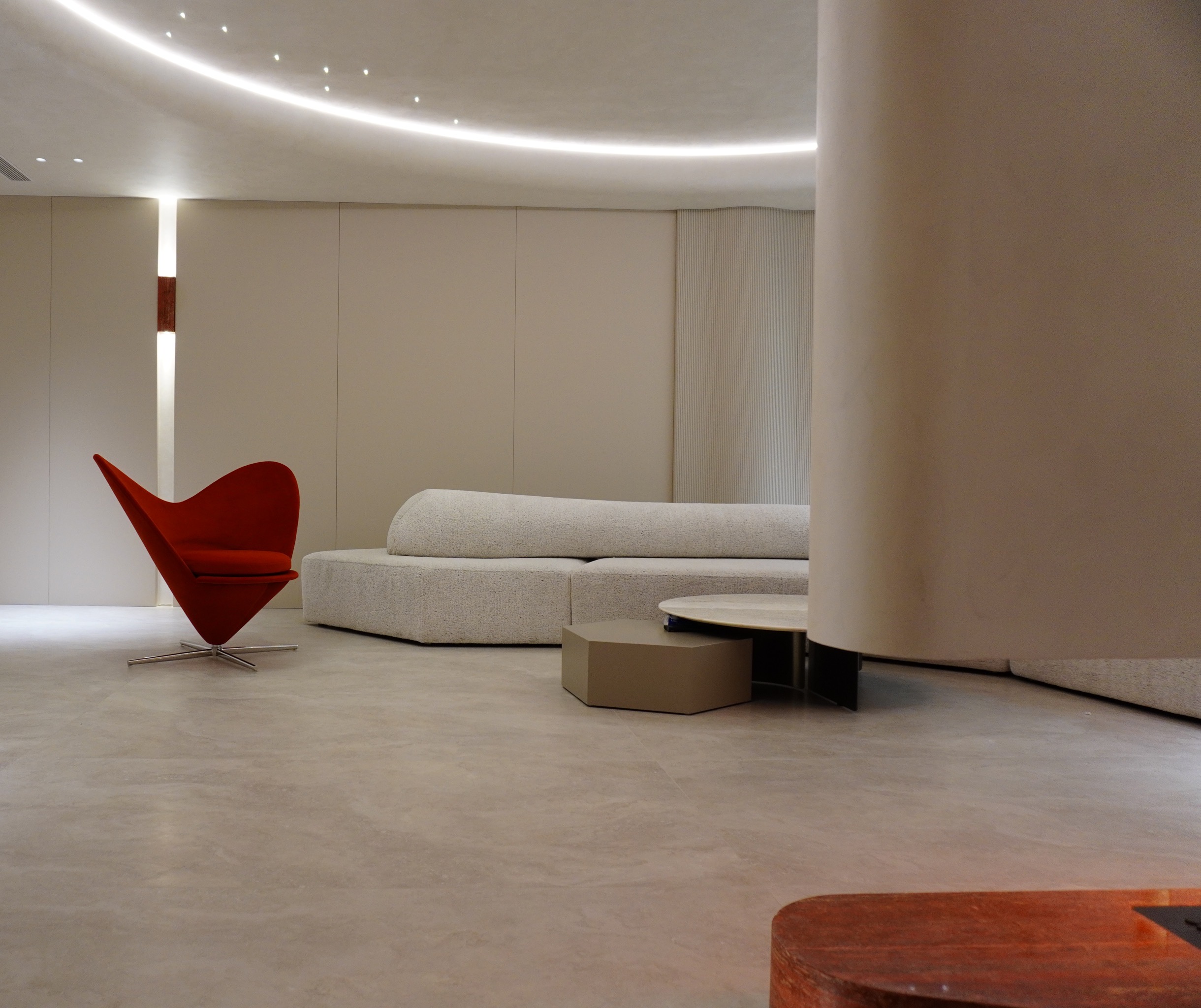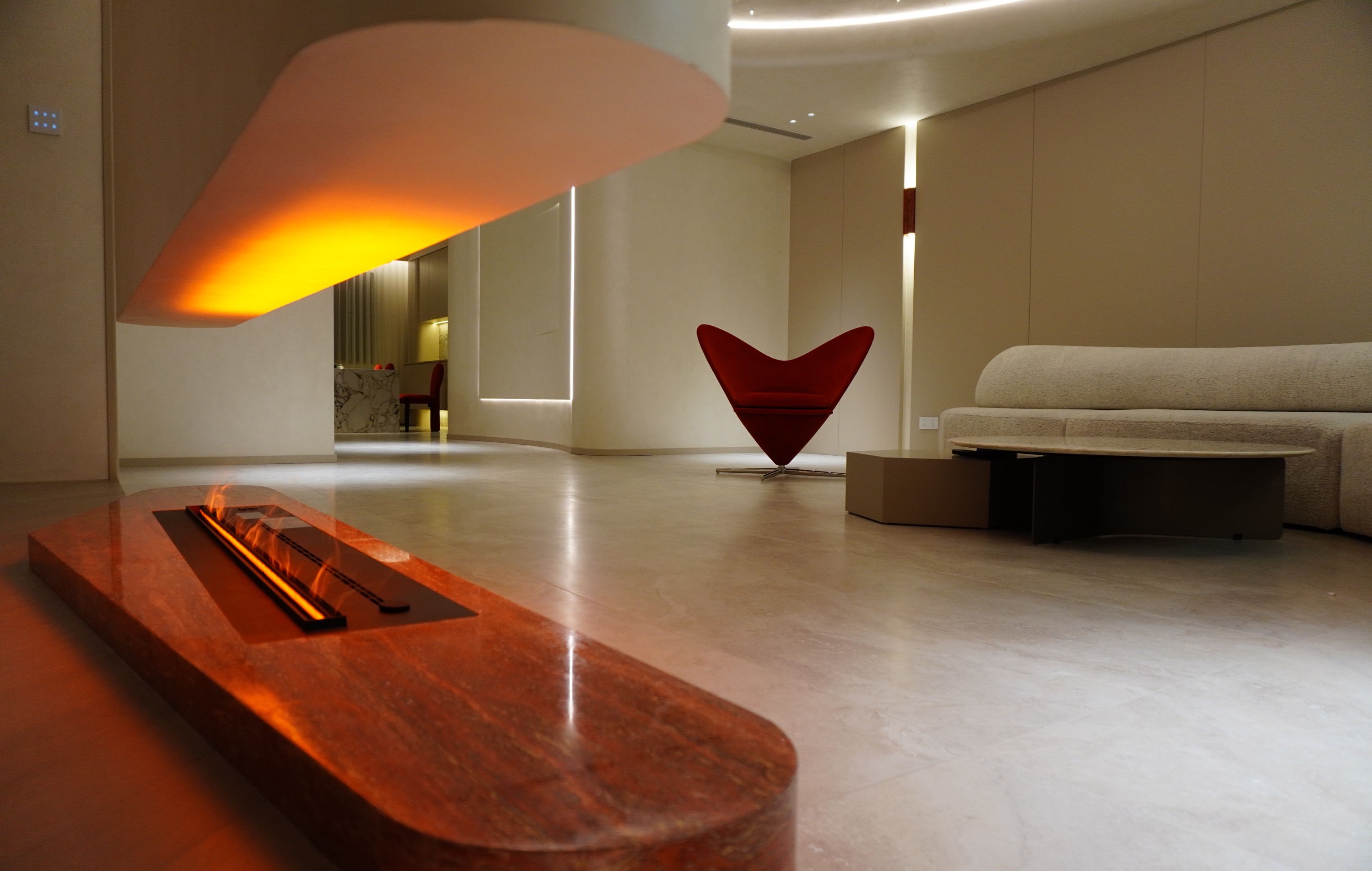 空间布局:空间整改极具宽敞明亮,打破了传统直线形墙面的单调感,使空间过度更加自然流畅,同时更增强了整体空间的连贯性。