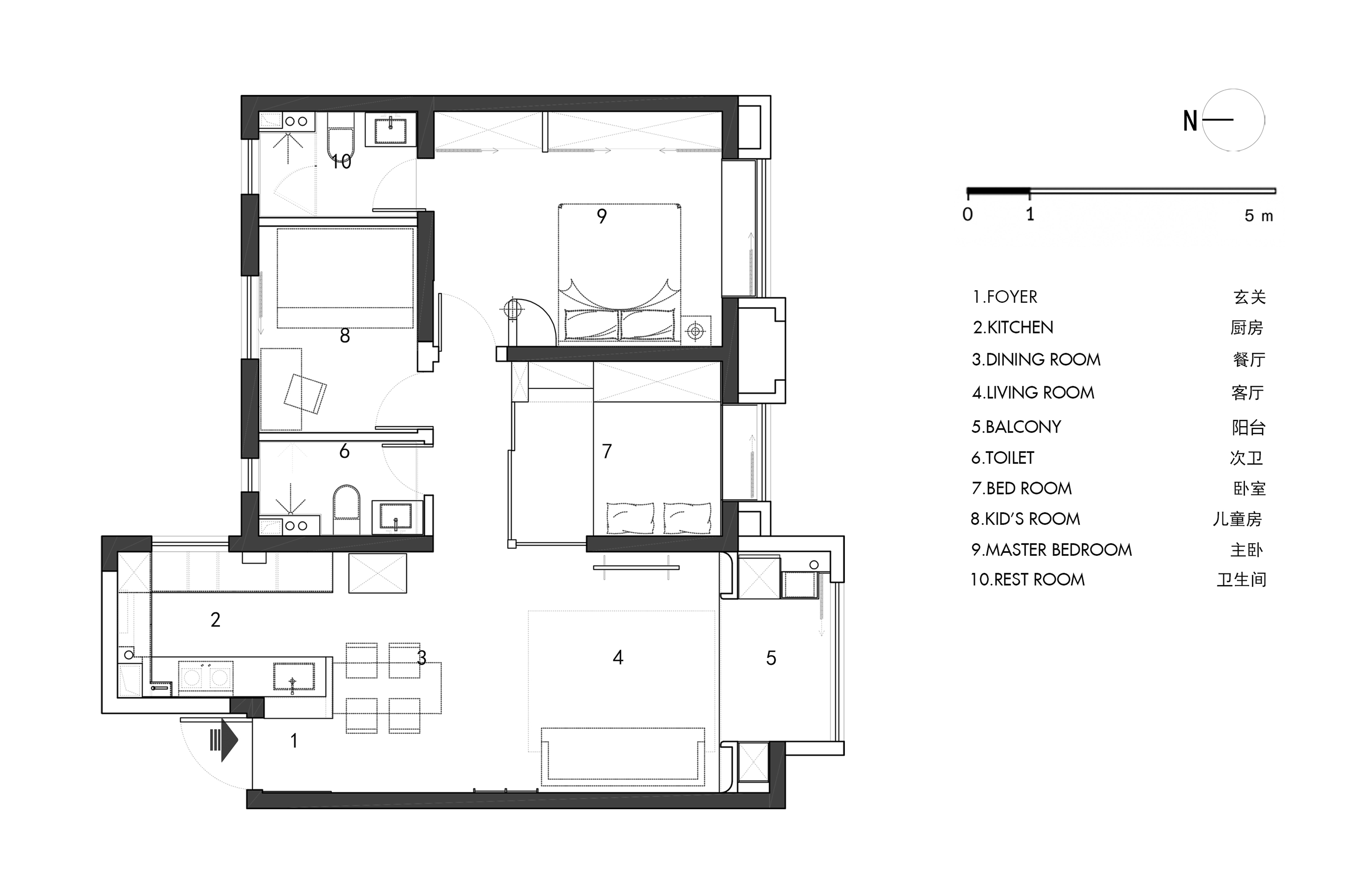 动线优化:通过将储物区与生活区分离,实现了日常高效的使用动线。规划中的卧室功能分区满足了多成员同时使用的私密需求。 -