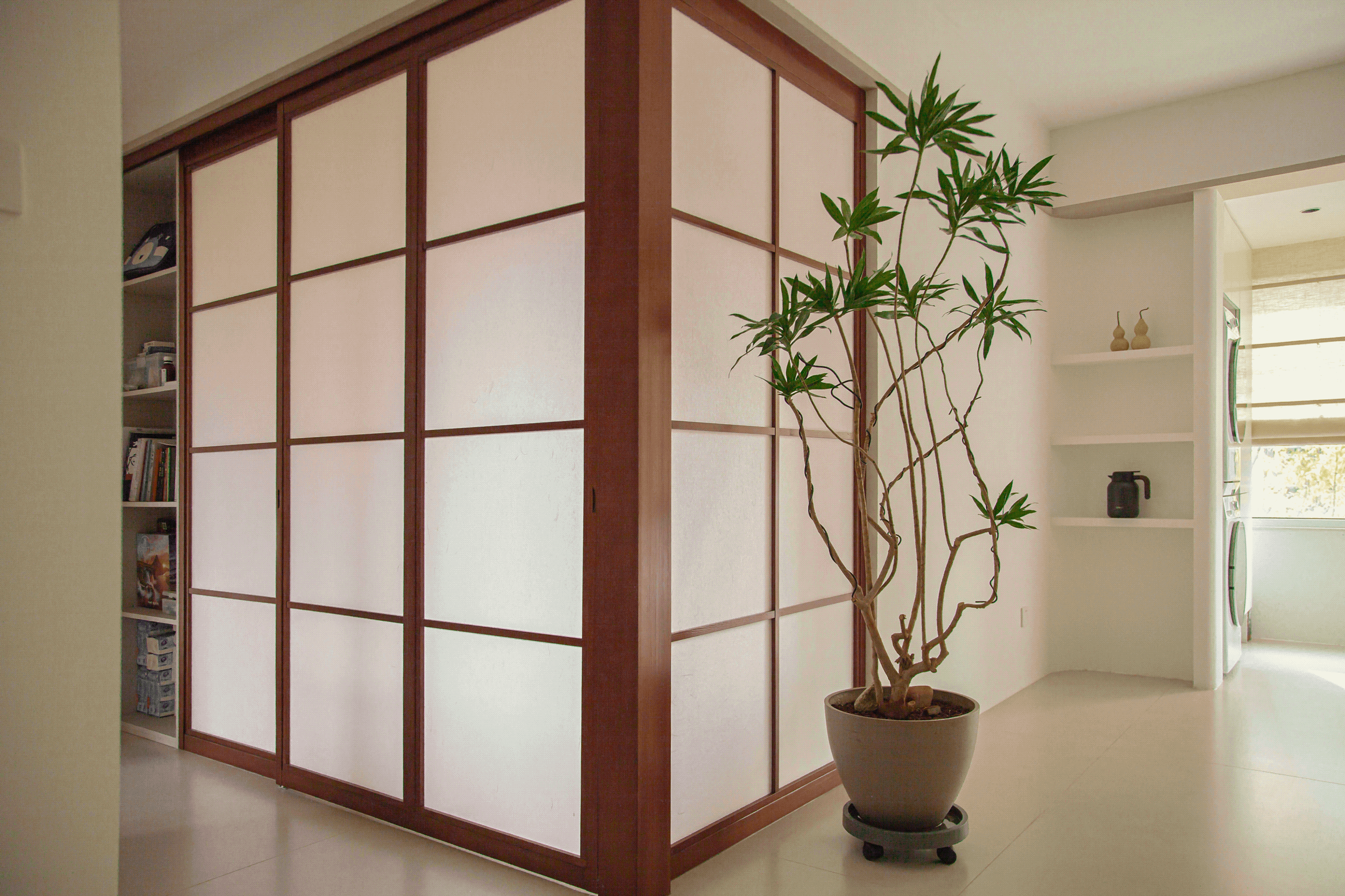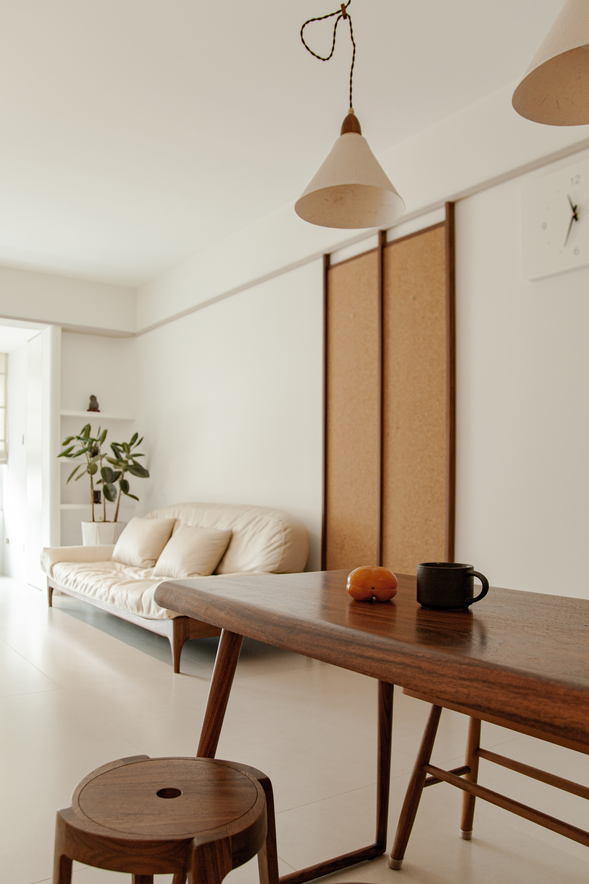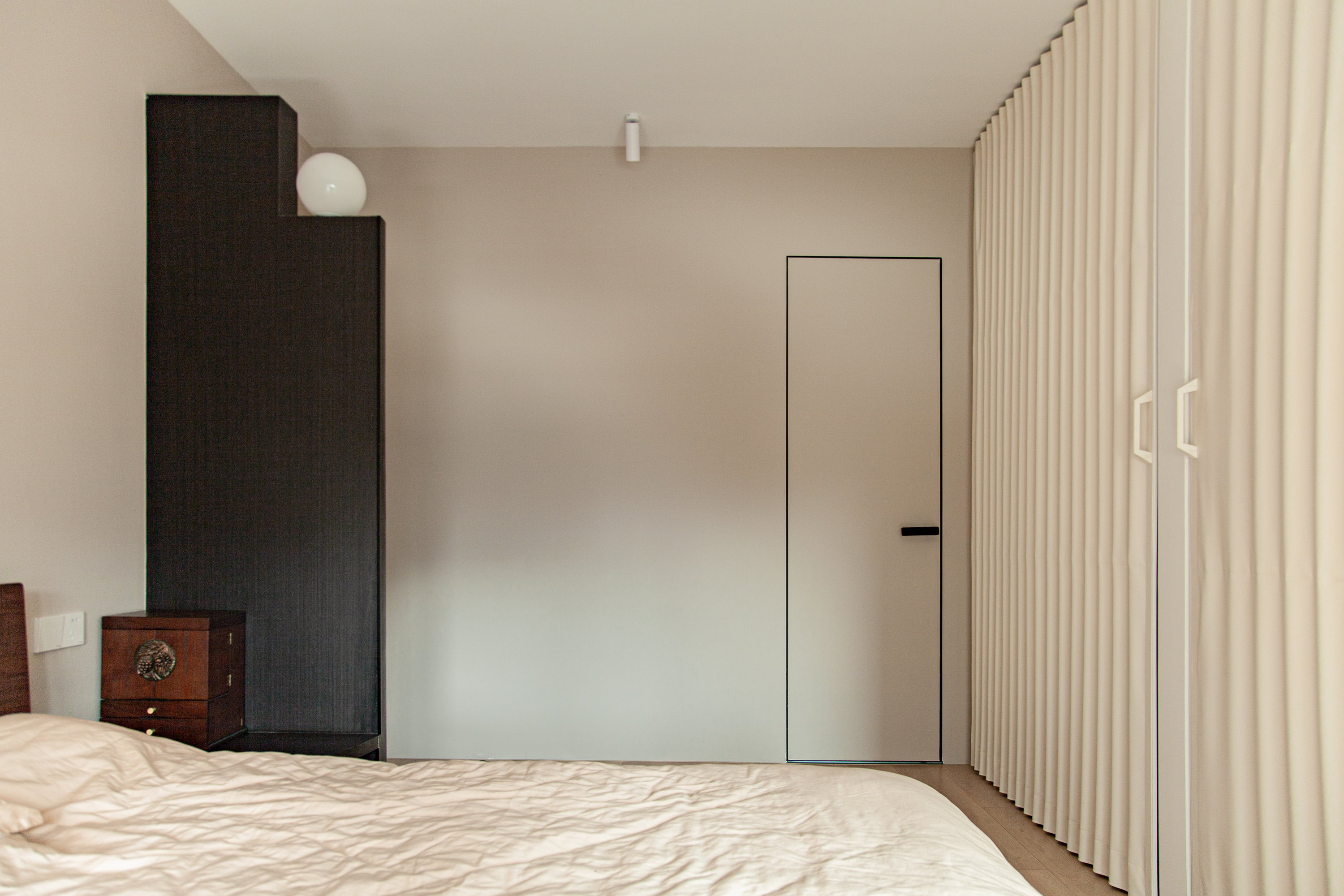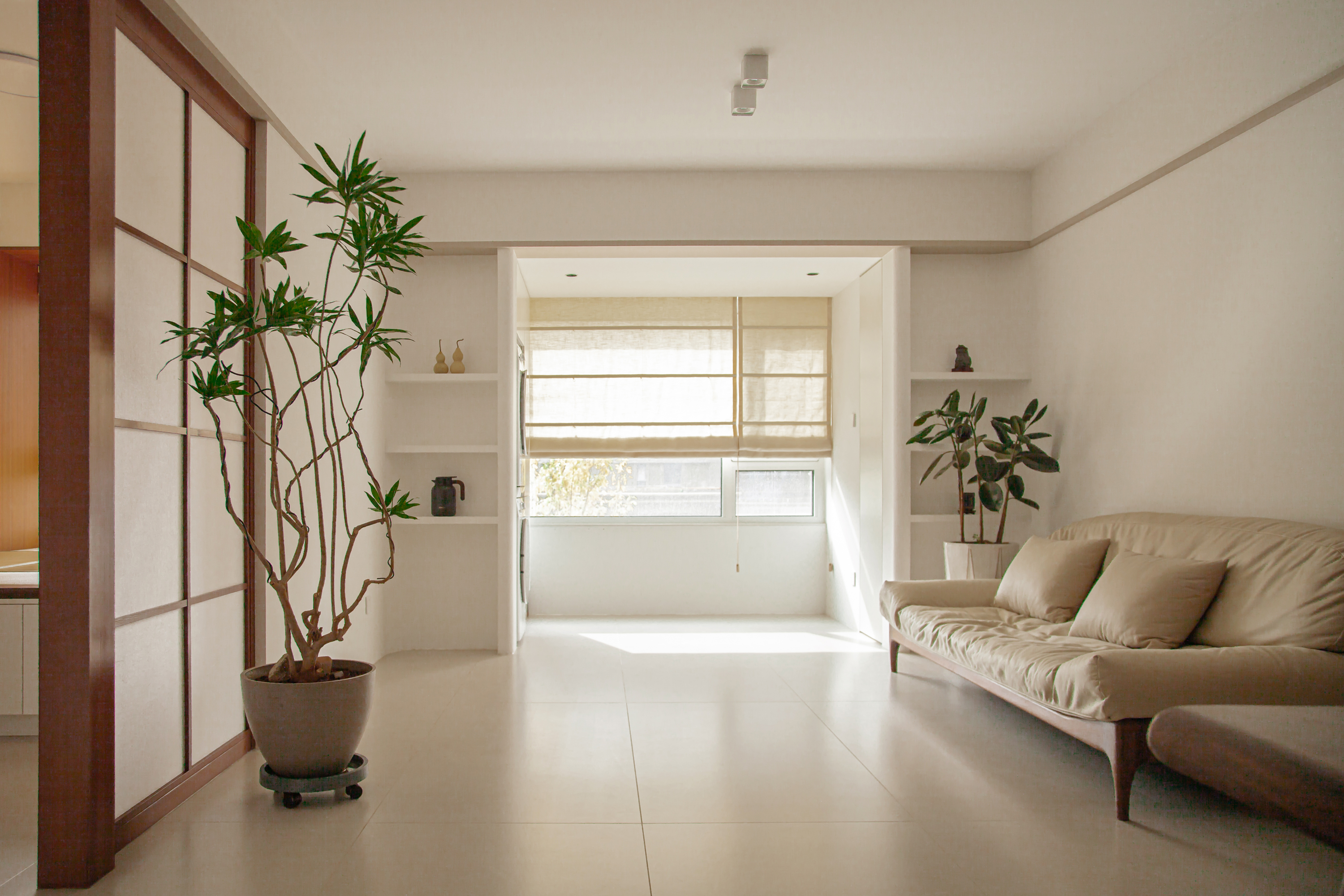 空间意境:设计中融合了自然光线与朴素材质的交互,通过木质、亚麻、障子纸等低碳材料的运用,营造出一种清新、安静且温暖的居家氛围。不同于传统日式风,本项目更加注重“与家对视”的情感表达,通过室内绿植、柔和的光线,以及对物品存放的精细规划,让居住者时刻感受生活的烟火气息。此外,在设计语言上,参考了《老友记》中公寓的开放性与社交场景,赋予空间更多日常交流的可能性。