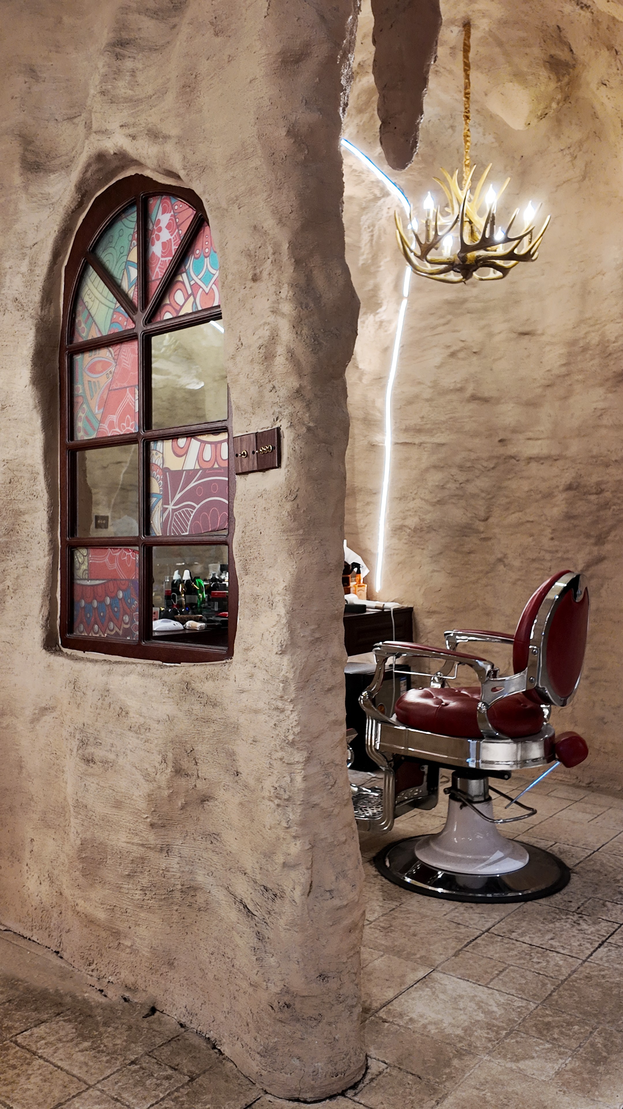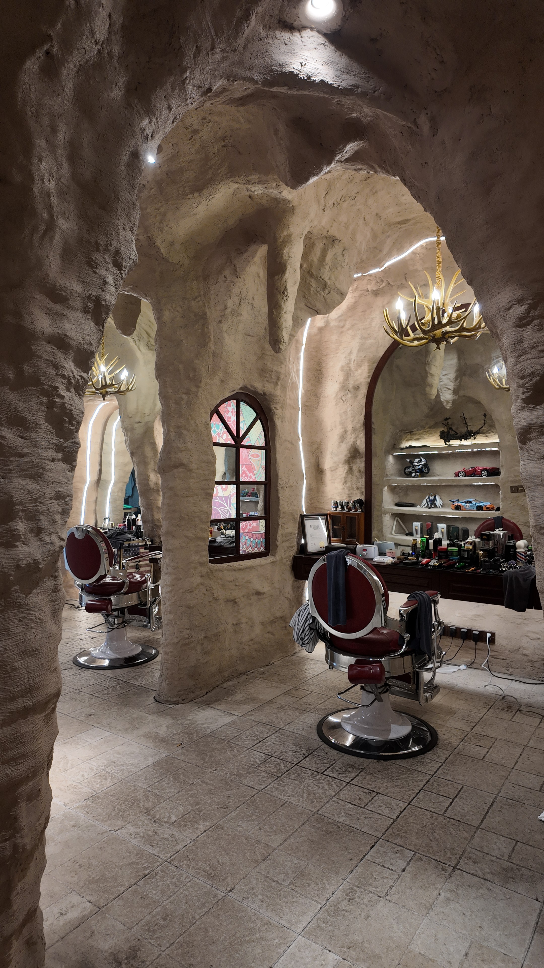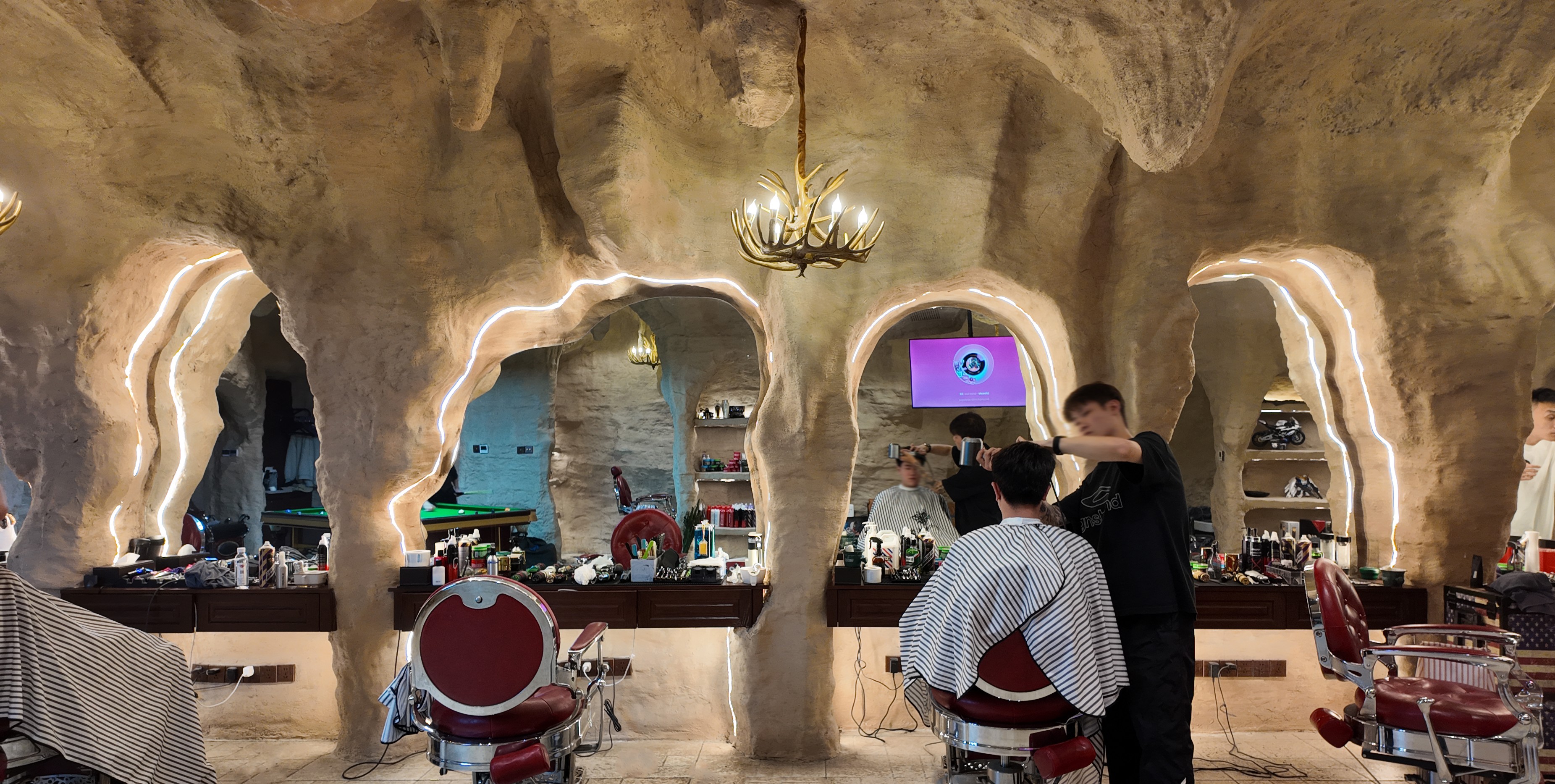 项目定位:溶洞风格男士理发馆的设计理念源自自然界的溶洞景观,旨在为顾客营造一种神秘、宁静且独具风格的理发环境。通过模拟溶洞的自然形态,我们希望为顾客提供一种独特的感官体验,让他们在享受理发服务的同时,感受到自然的宁静与和谐。