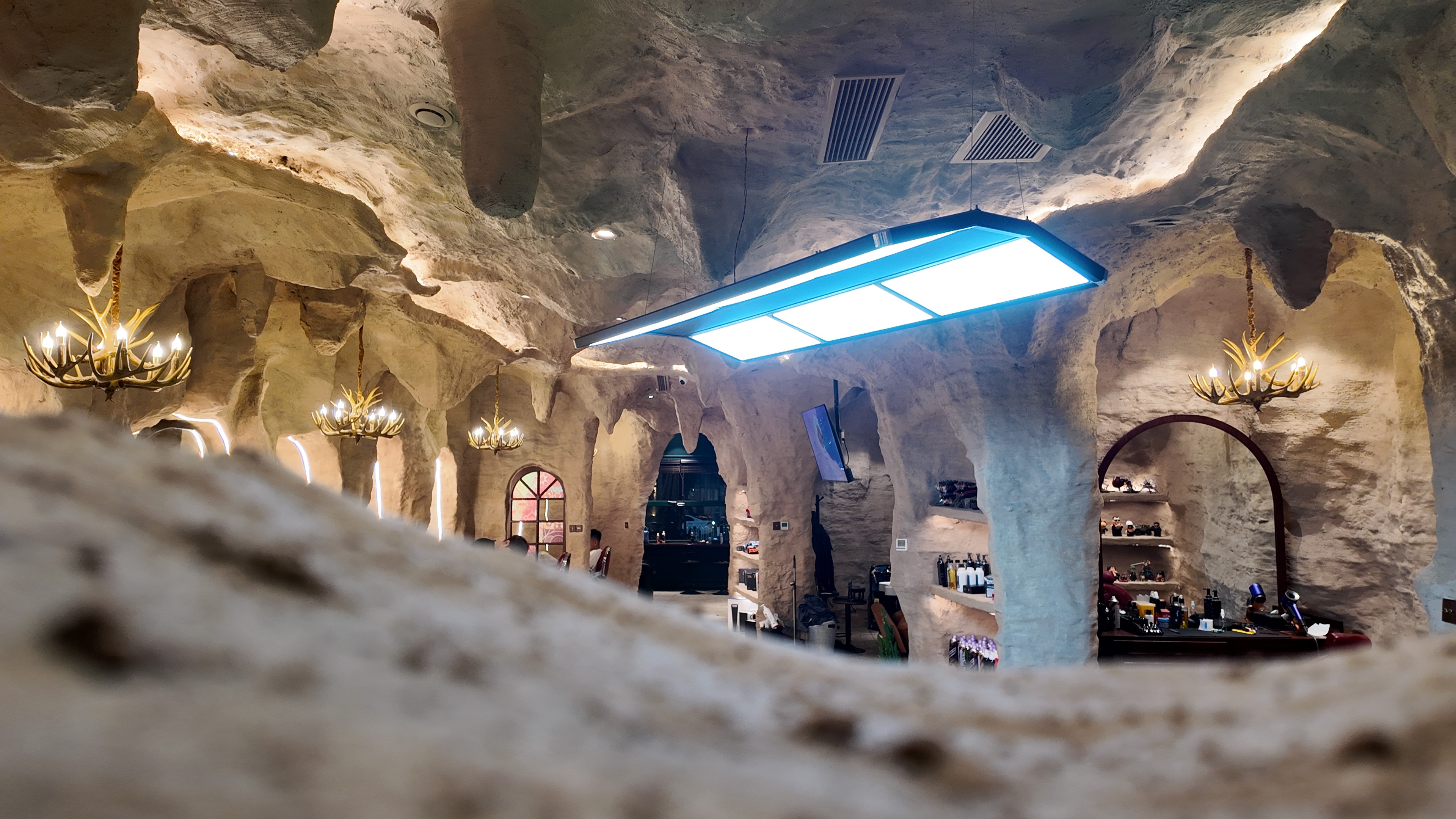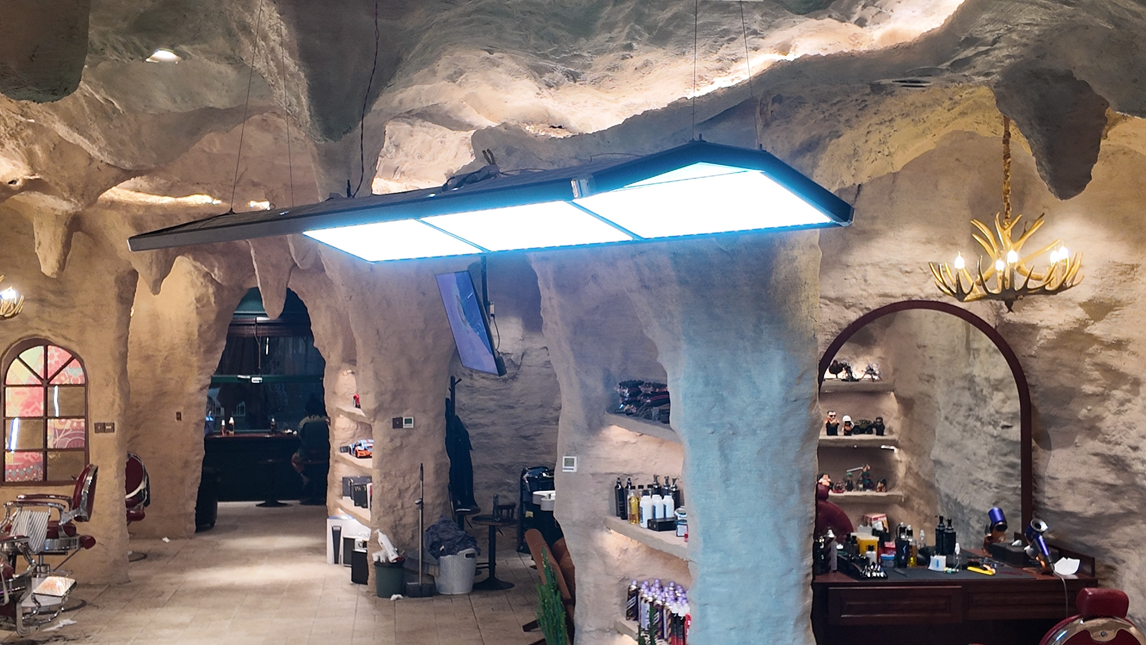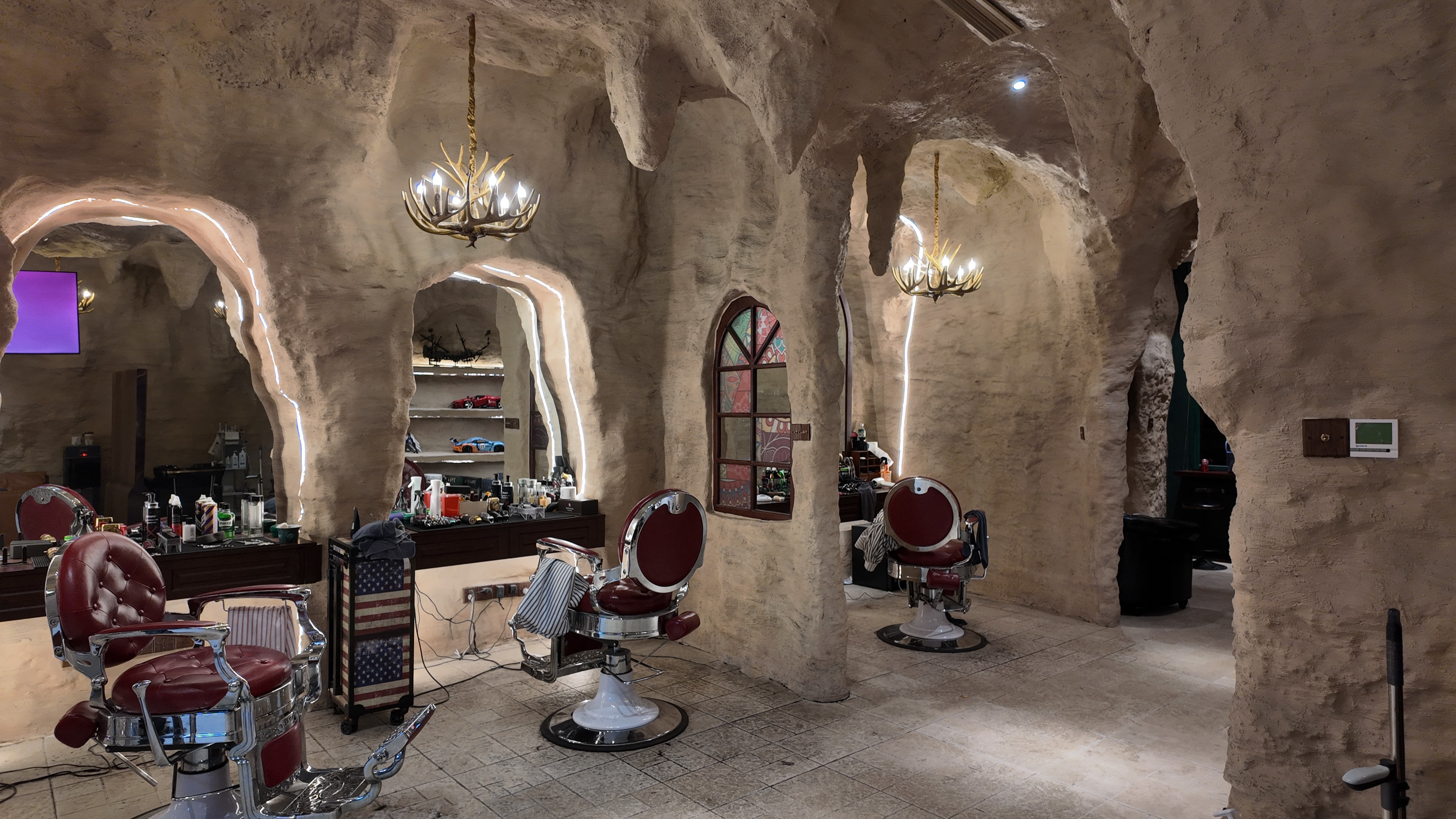 项目定位:溶洞风格男士理发馆的设计理念源自自然界的溶洞景观,旨在为顾客营造一种神秘、宁静且独具风格的理发环境。通过模拟溶洞的自然形态,我们希望为顾客提供一种独特的感官体验,让他们在享受理发服务的同时,感受到自然的宁静与和谐。