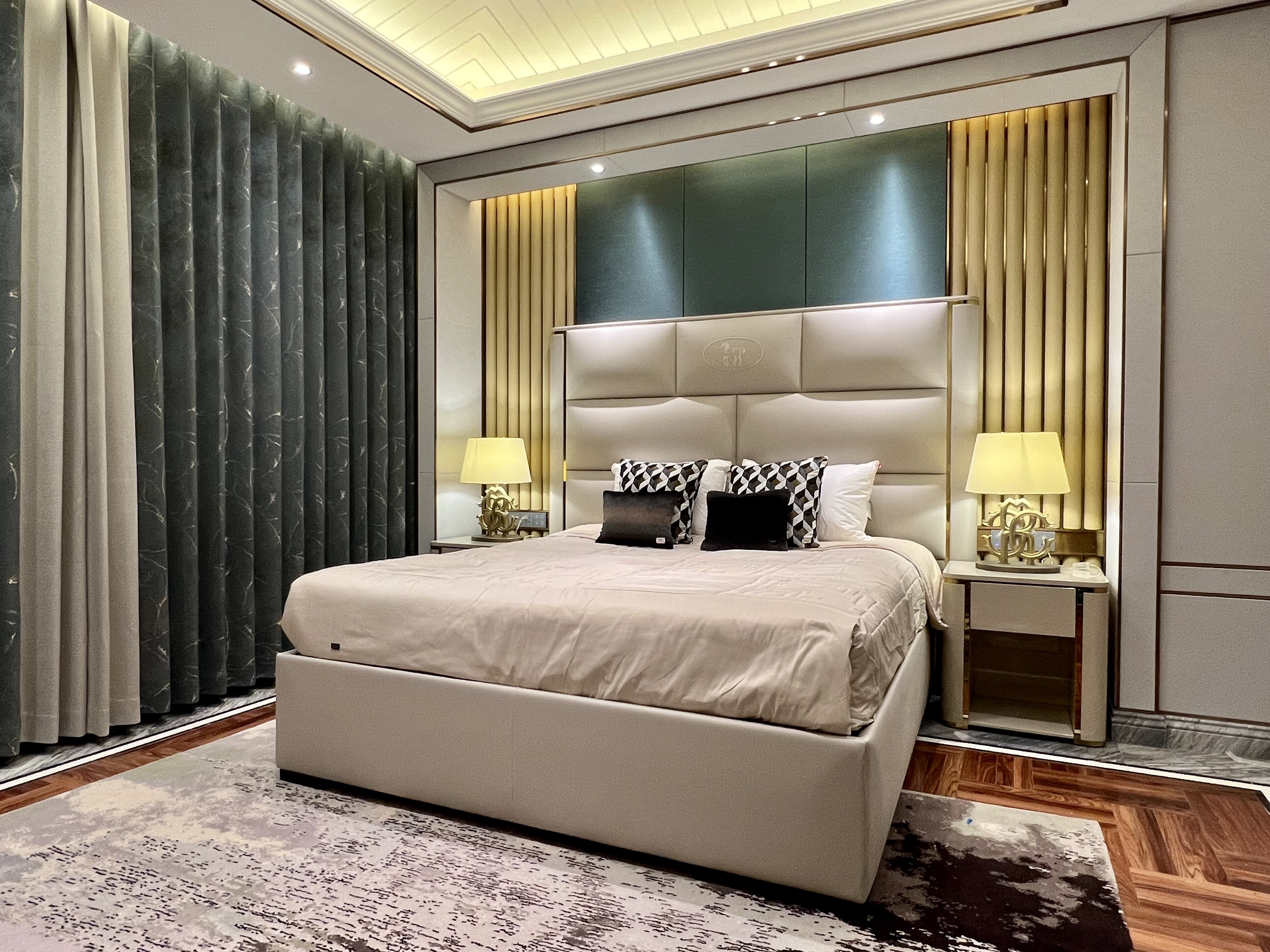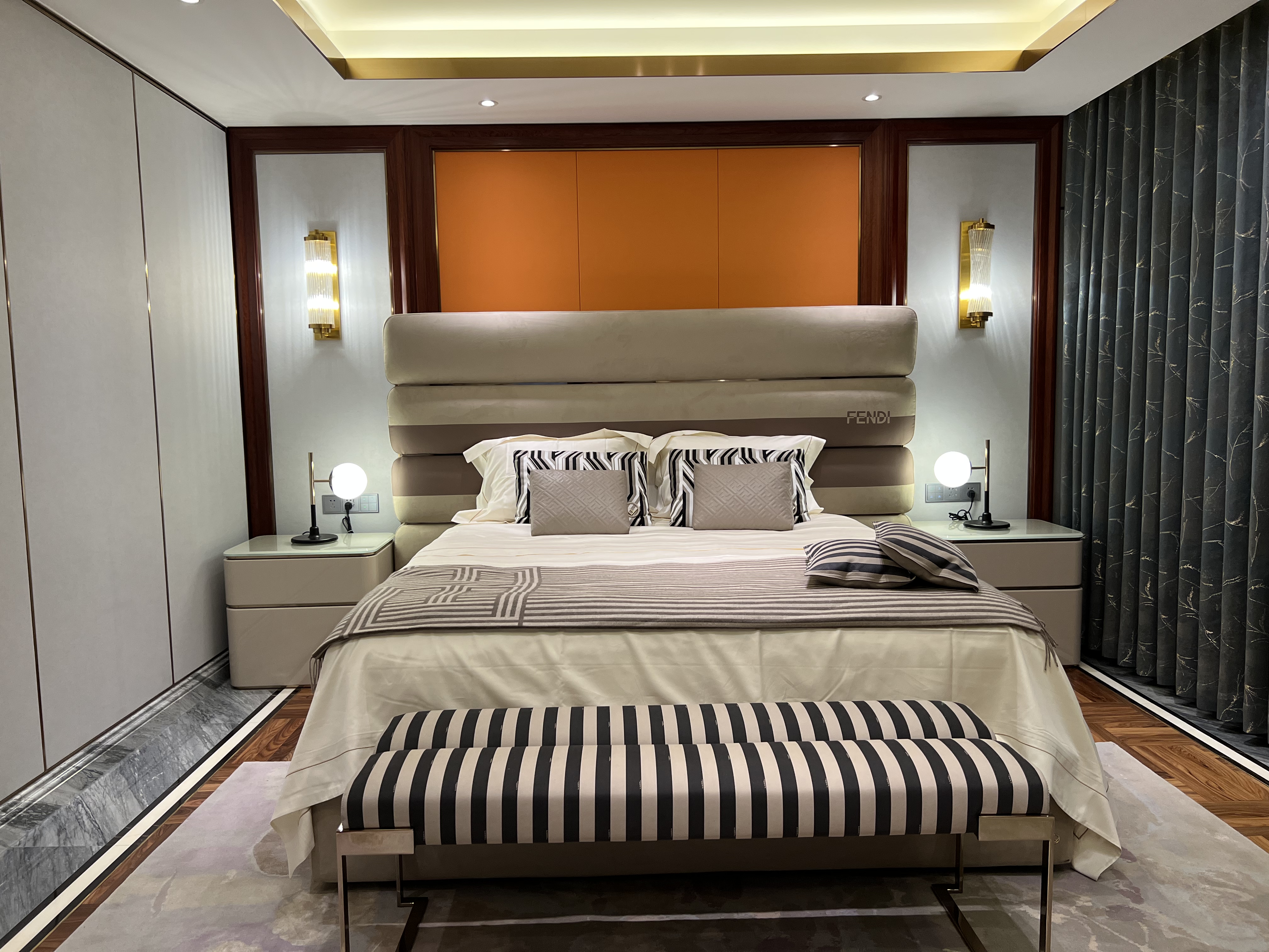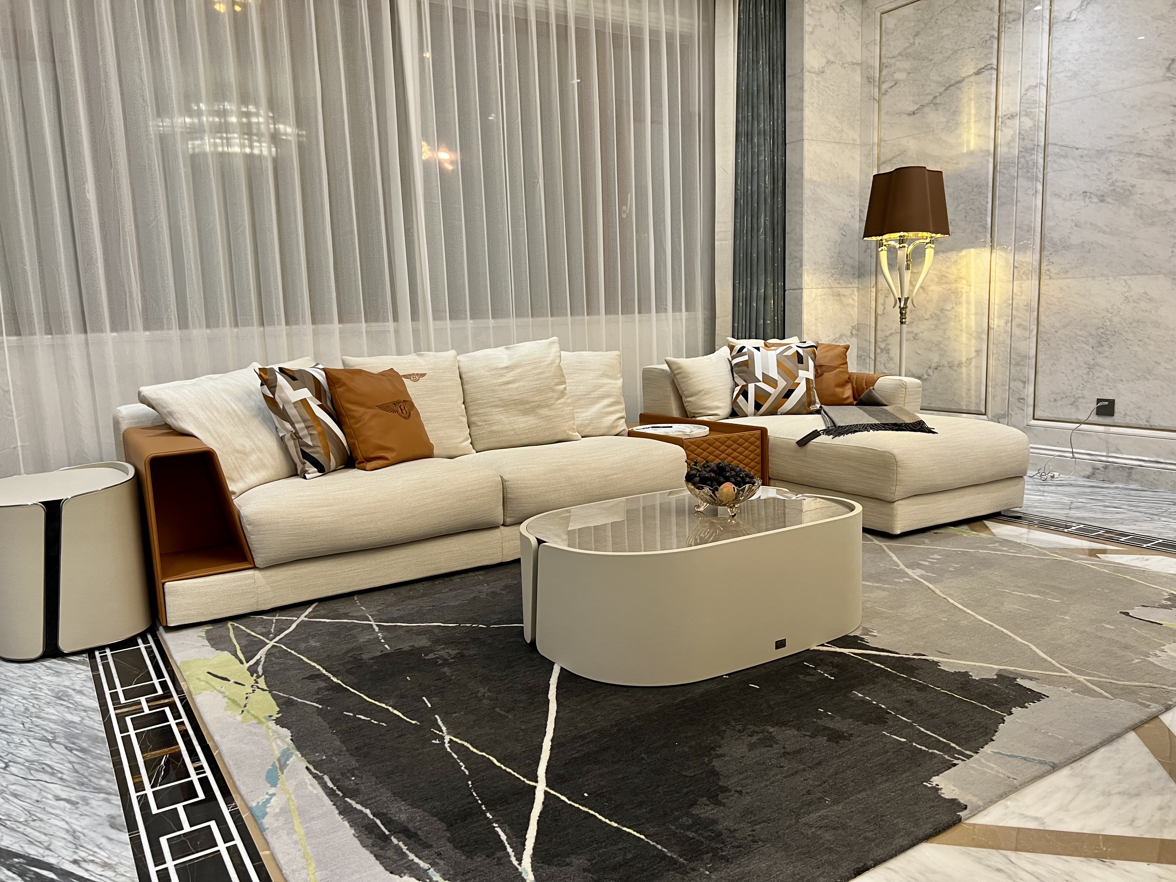 • 材质:Bentley home(宾利家居)亮面金属线条、Fendi casa(芬迪家居)珍稀皮革与温润意大利手工烤漆结合,如金属茶几嵌石材桌面,奢感升级。