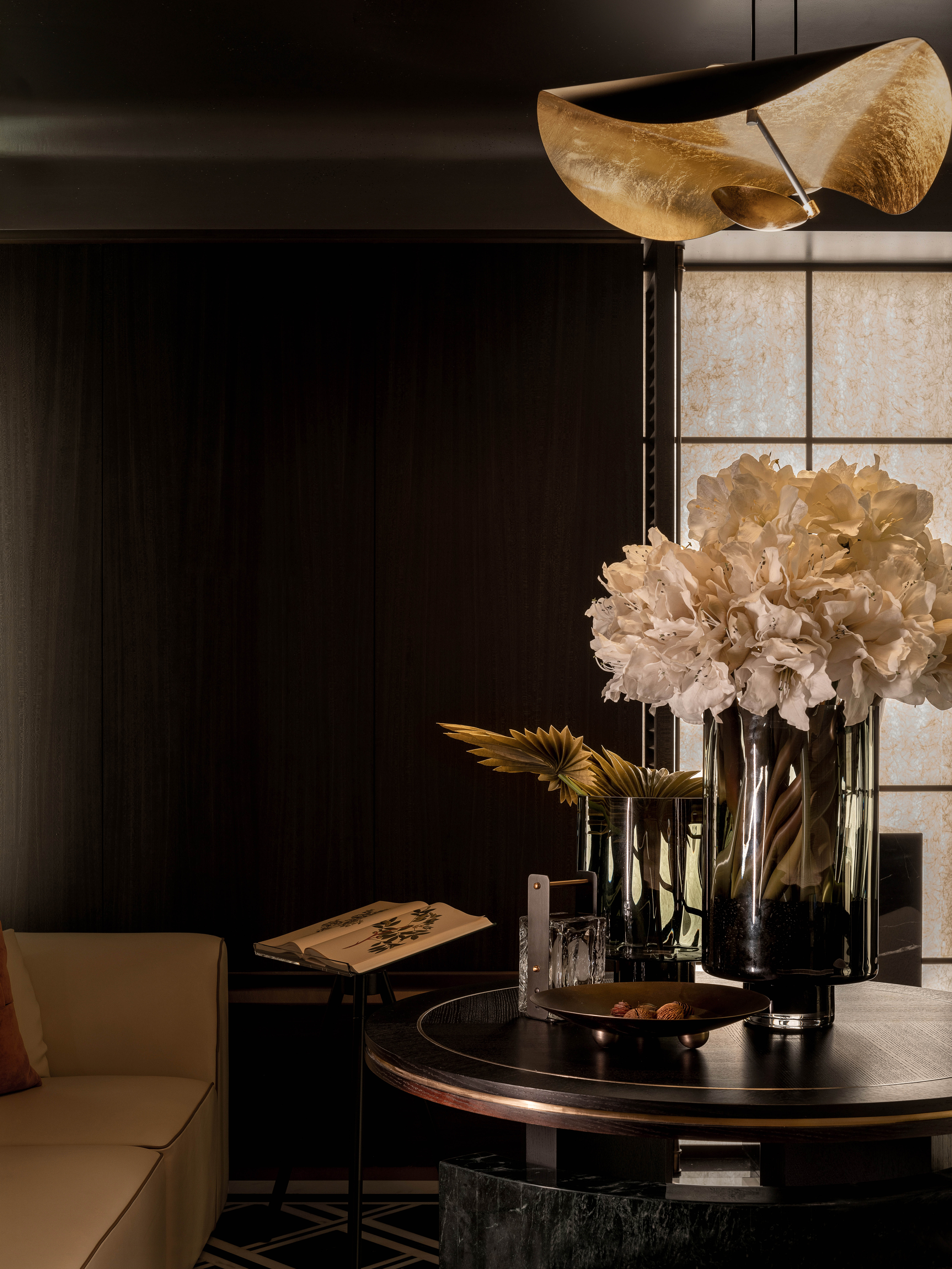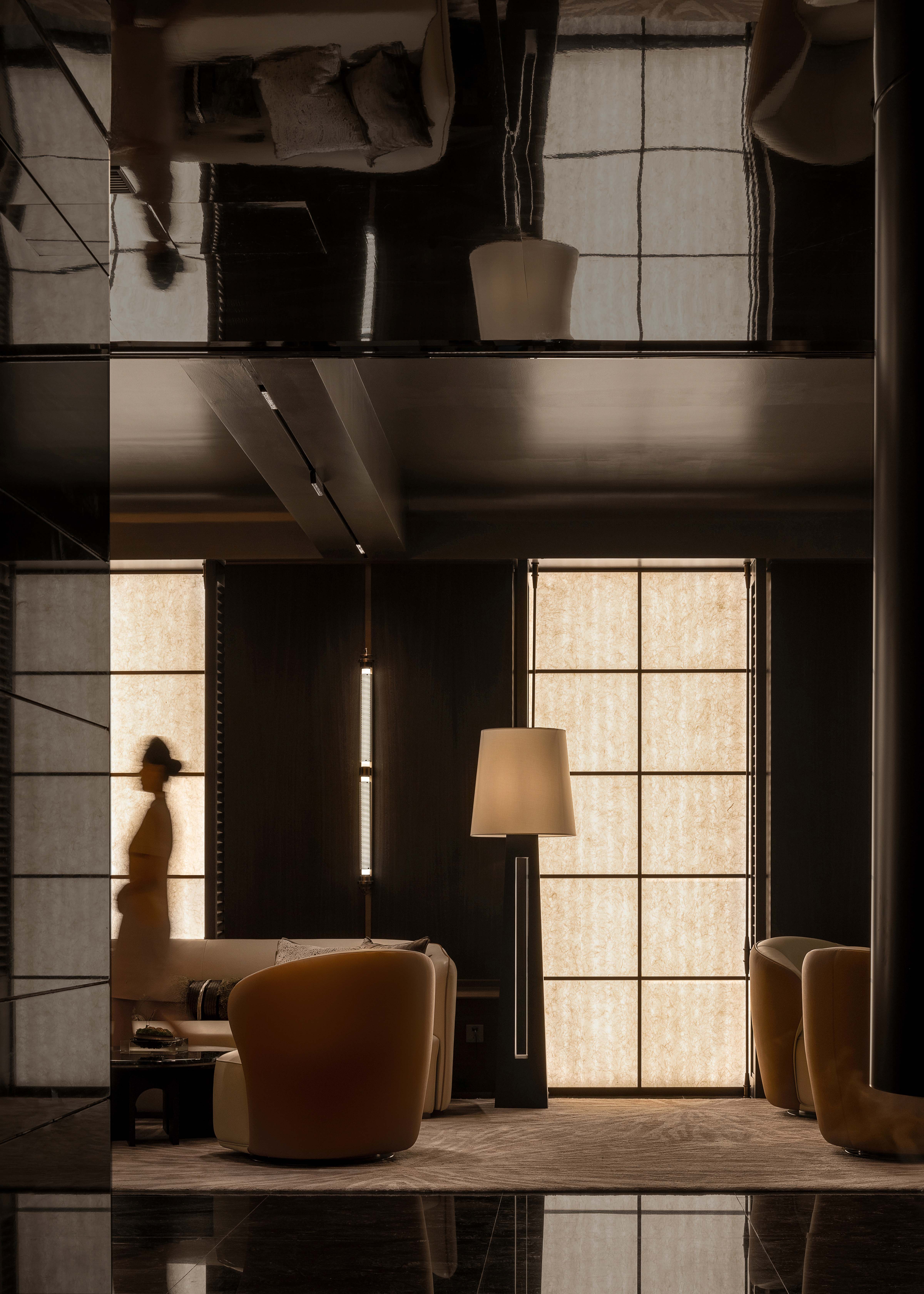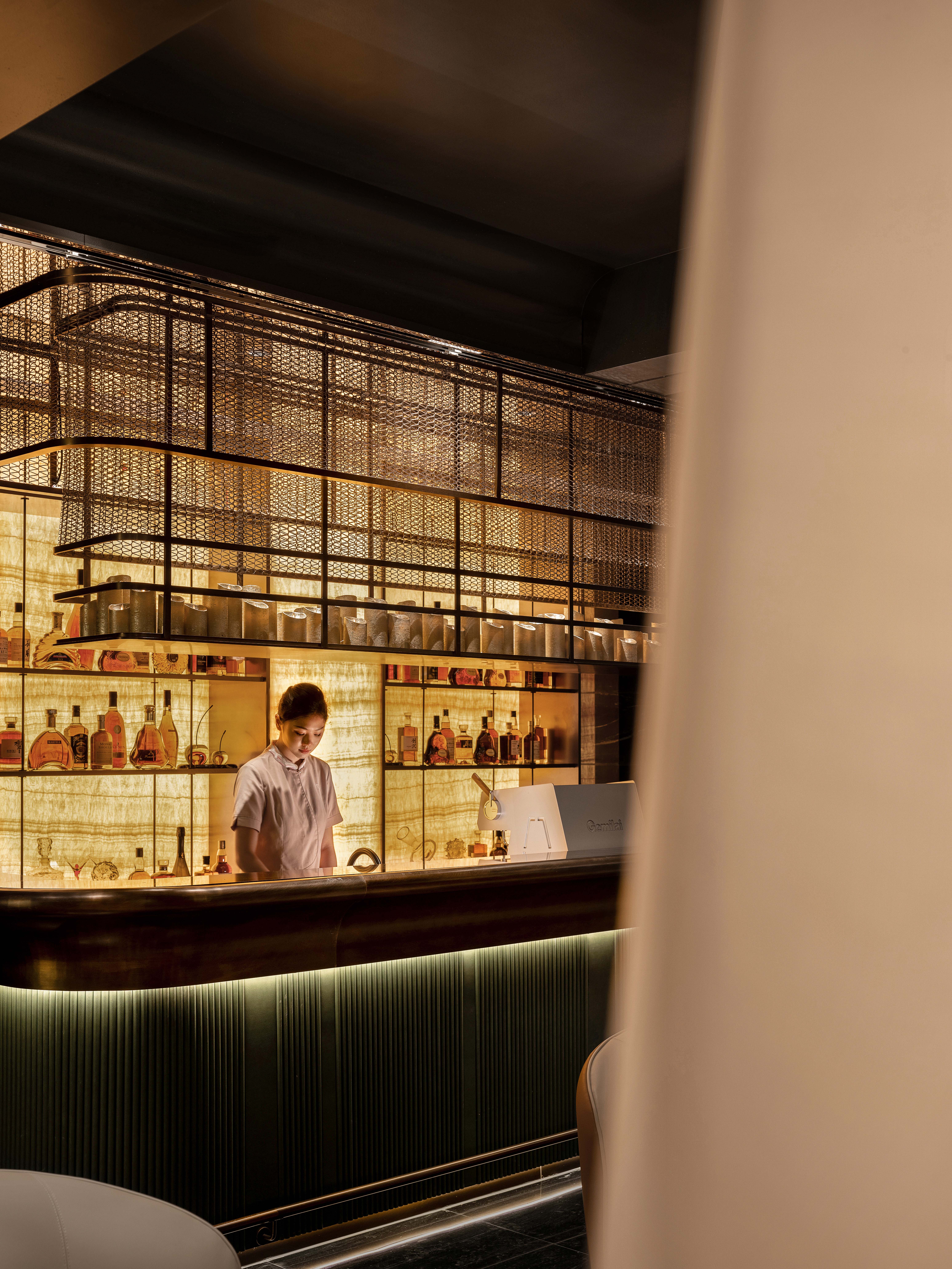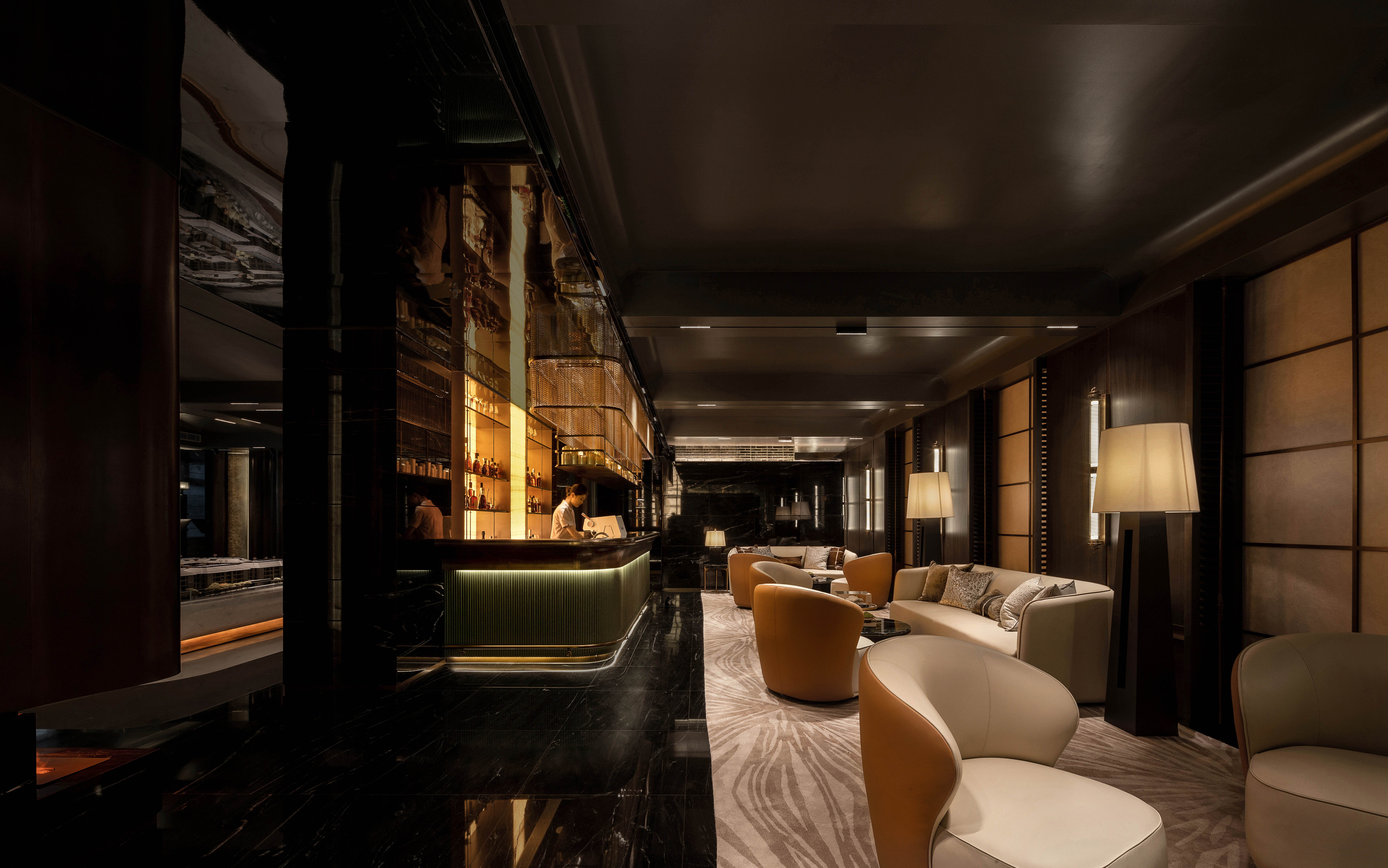 空间意境:设计师以情景化设计手法,将玉兰之美糅于场景空间,取意形、色、意、境、韵,将玉兰融于金属、墙壁、文化走廊及艺术品的运用,张弛有度,编制成一曲精致又创新的视觉交响。在保留老上海的复古海派格调的基础上,设计师创新当代上海国际化都市的艺术属性,做到传承,转译,再创新,来呼应历史文脉,复兴海派城市记忆,塑新城市空间。