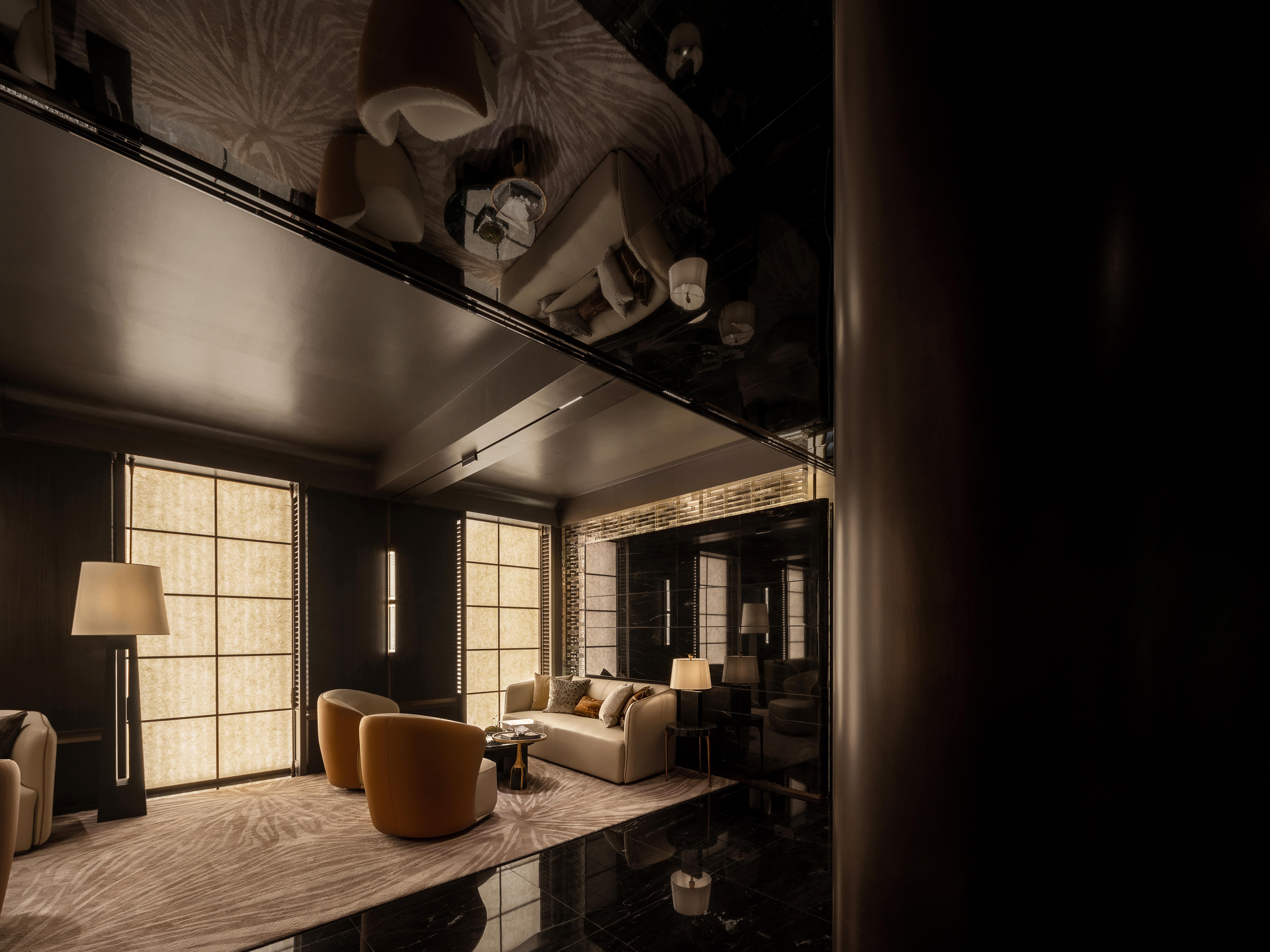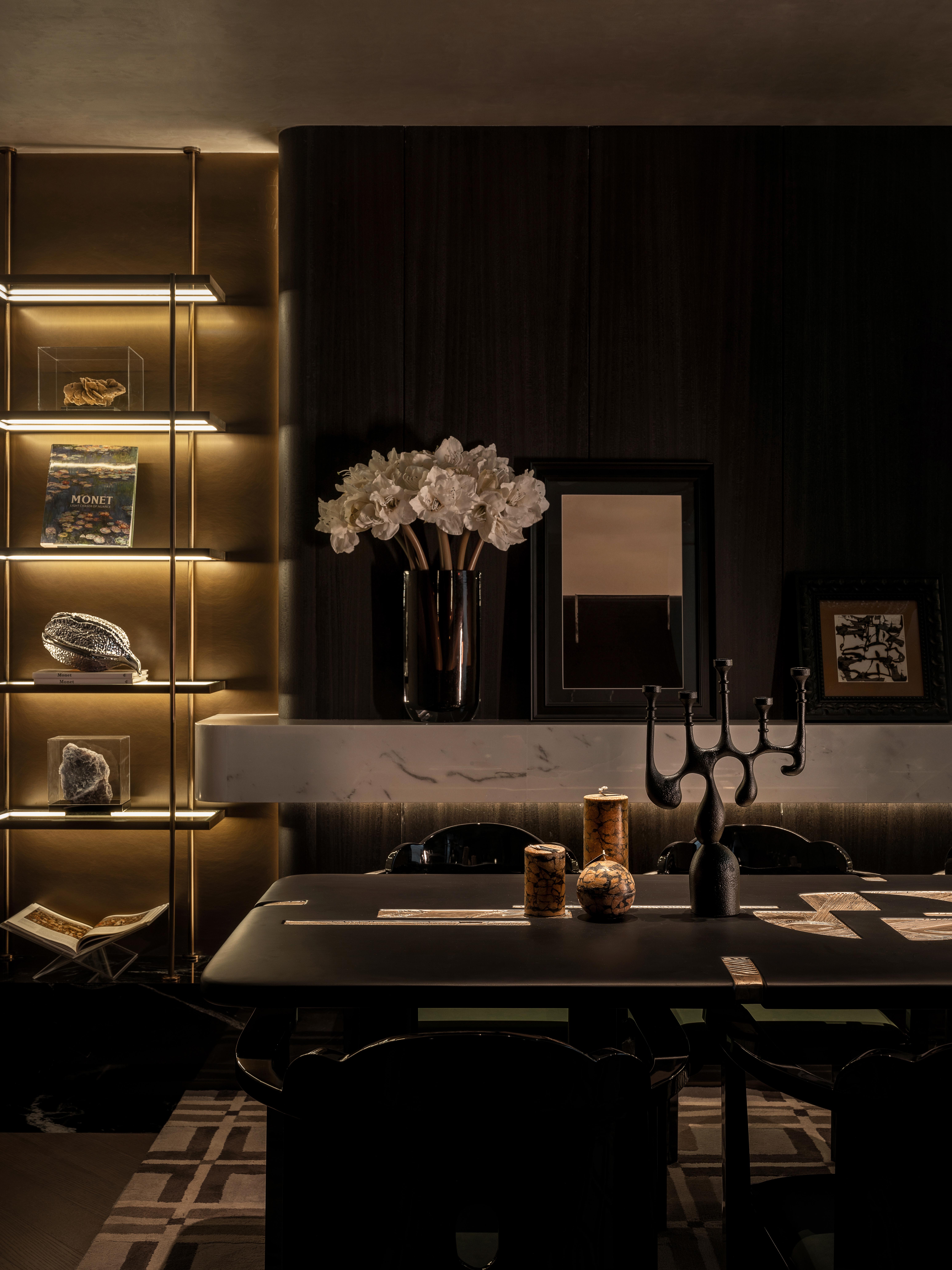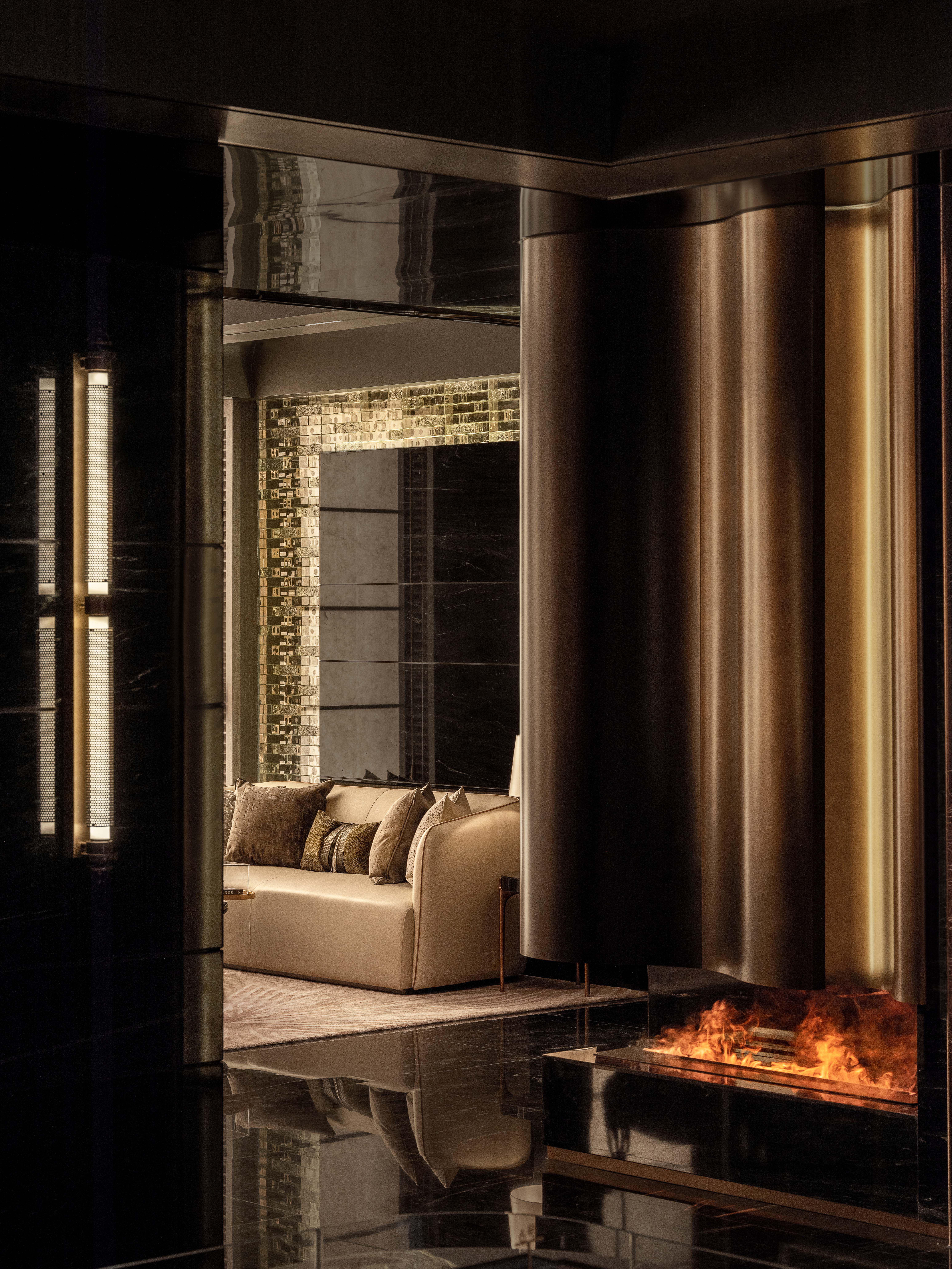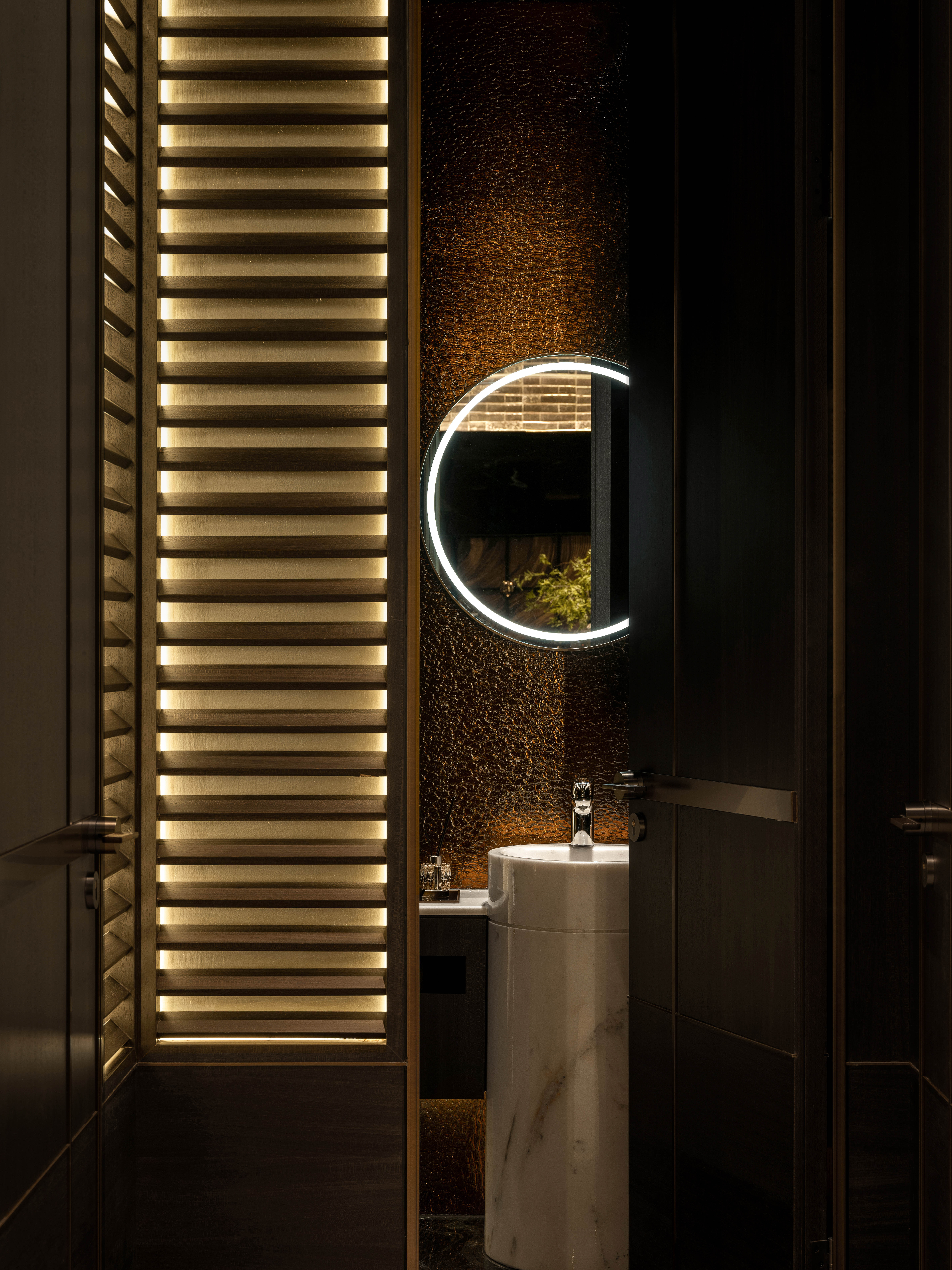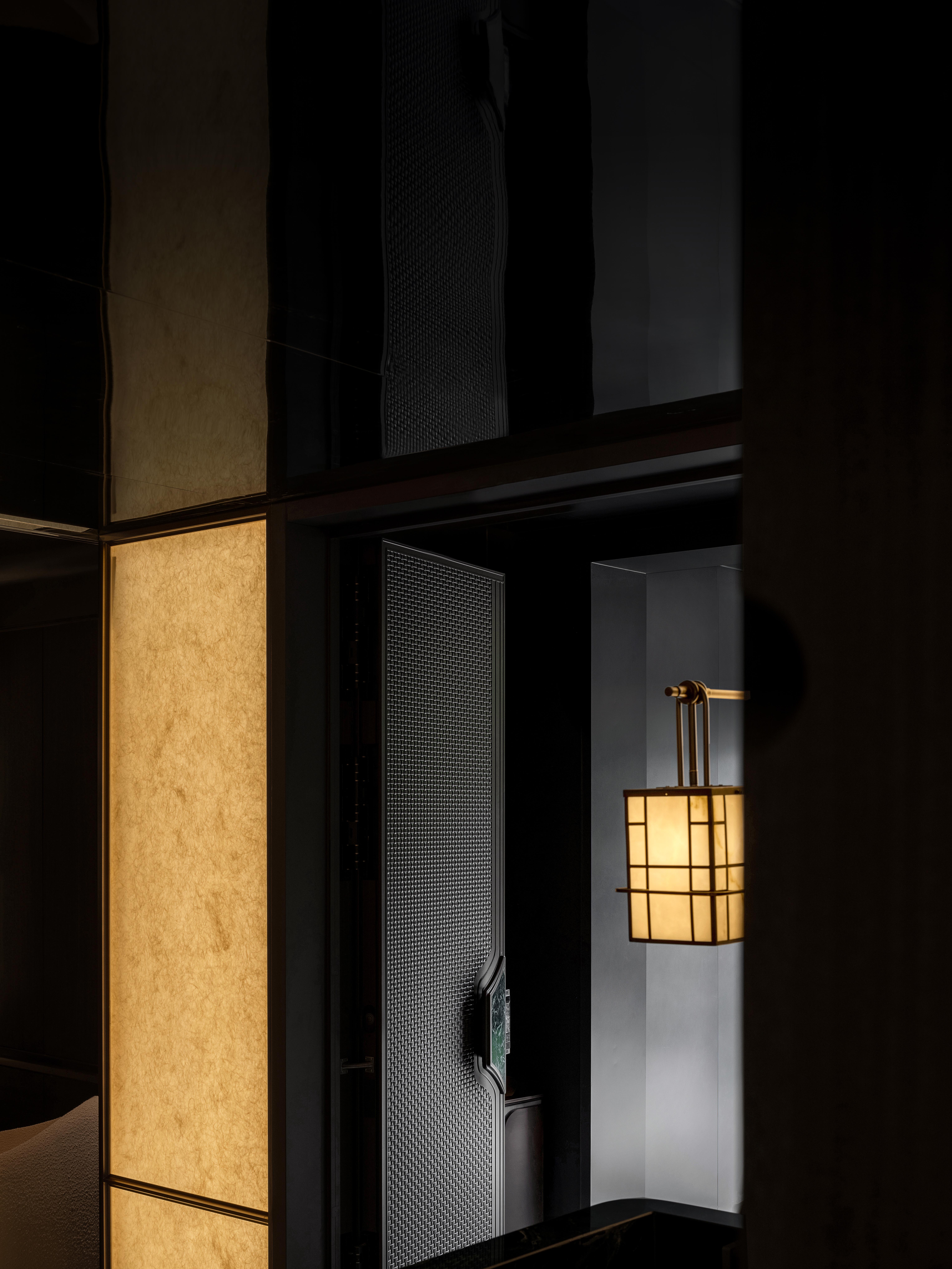 空间意境:设计师以情景化设计手法,将玉兰之美糅于场景空间,取意形、色、意、境、韵,将玉兰融于金属、墙壁、文化走廊及艺术品的运用,张弛有度,编制成一曲精致又创新的视觉交响。在保留老上海的复古海派格调的基础上,设计师创新当代上海国际化都市的艺术属性,做到传承,转译,再创新,来呼应历史文脉,复兴海派城市记忆,塑新城市空间。