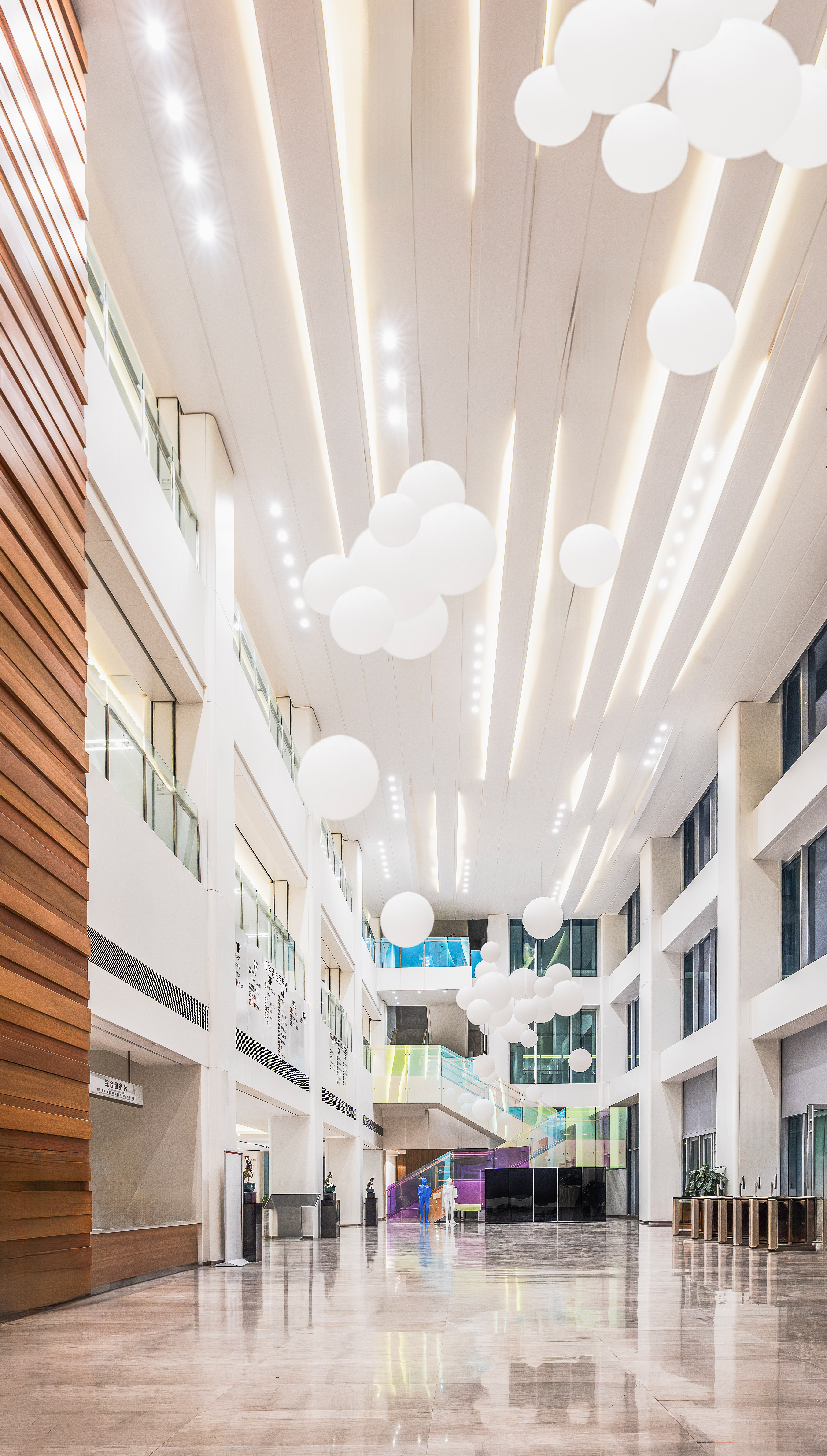 用户体验:结合医疗服务模式发展,人民生活水平的提高,适应预约诊疗的发展,调整门诊布局,人们就医习惯改变,压缩门诊大厅面积,增加一次候诊区、自助服务区面积,尊重患者及家属社交需求,扩大住院患者及家属活动公共空间,川流大厅设置咖啡厅、面包坊区域,表达了设计对疗愈环境和人文情怀的美好愿景。概念的天然独特性最好的诠释妇女和儿童在整个项目中的重要性,体现了医院不仅仅是就医疗愈和康复保健的场所,也是文化传播和艺术感染的场所。
