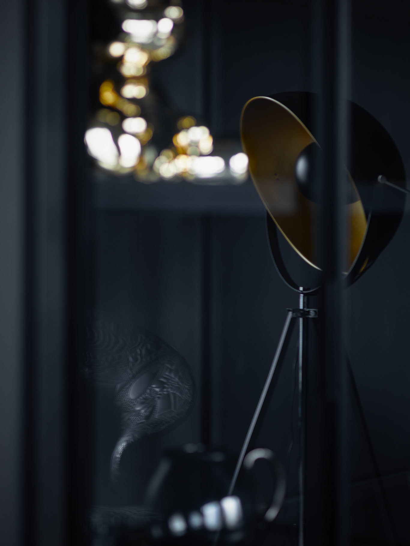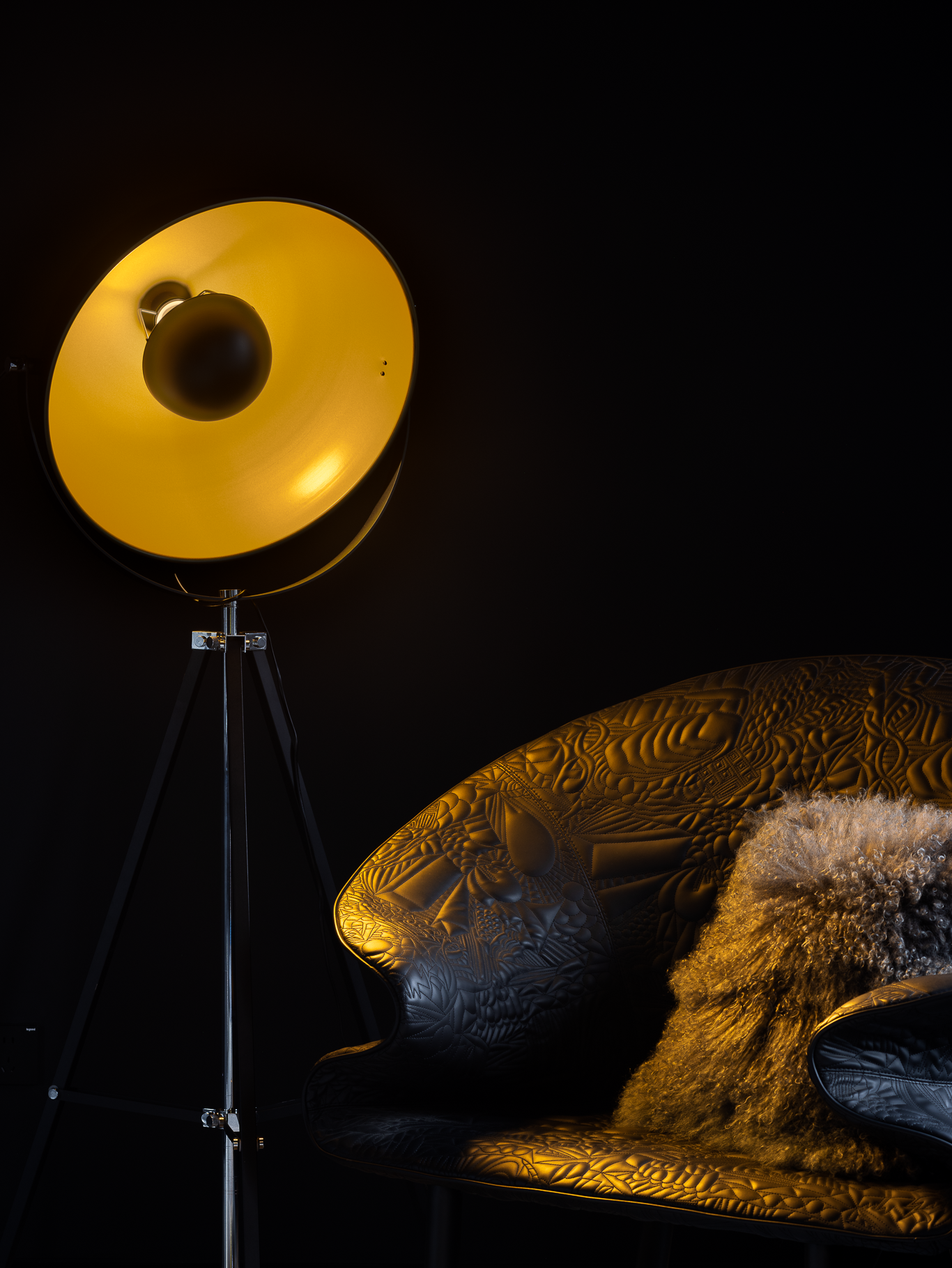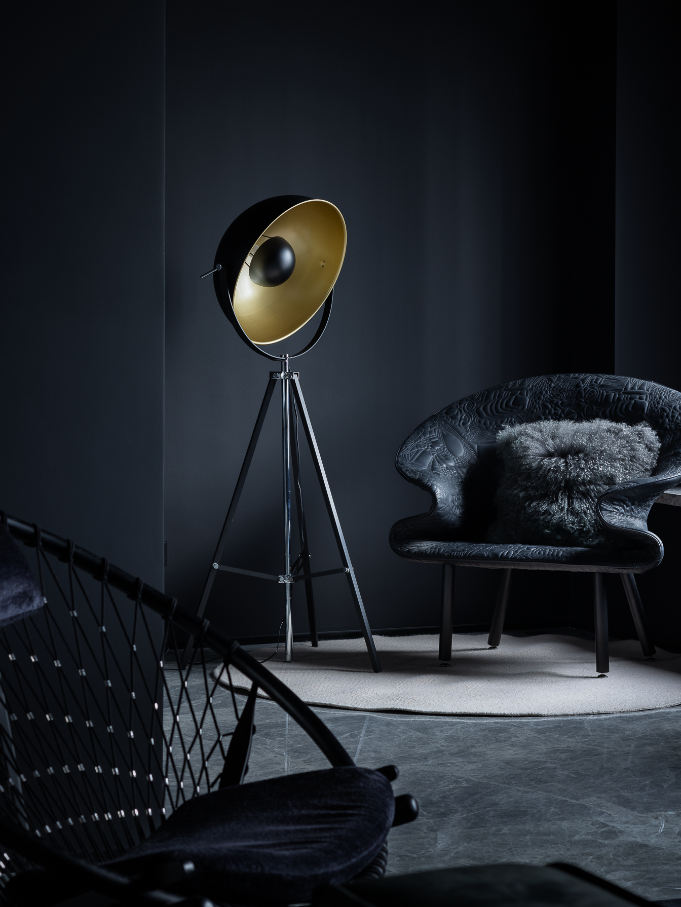 我们发现,黑色并不是一种固定的色调。相反,这个空间因为黑色拥有了更为多元化的形态。有时候静止,有时候静谧,有时候温煦,有时候摩登。这种交融和结合,甚是有趣。 造型前卫且艺术的座椅,是对空间质感的提升。这些与生活相关的家具和器皿的置入,表达出一种设计思想:幽暗的环境,人才是空间的中心,当我在家里穿梭游走,不同的场景下会有不同的情绪释放,这种新颖的享乐和感受,让人体味到家的别具一格。