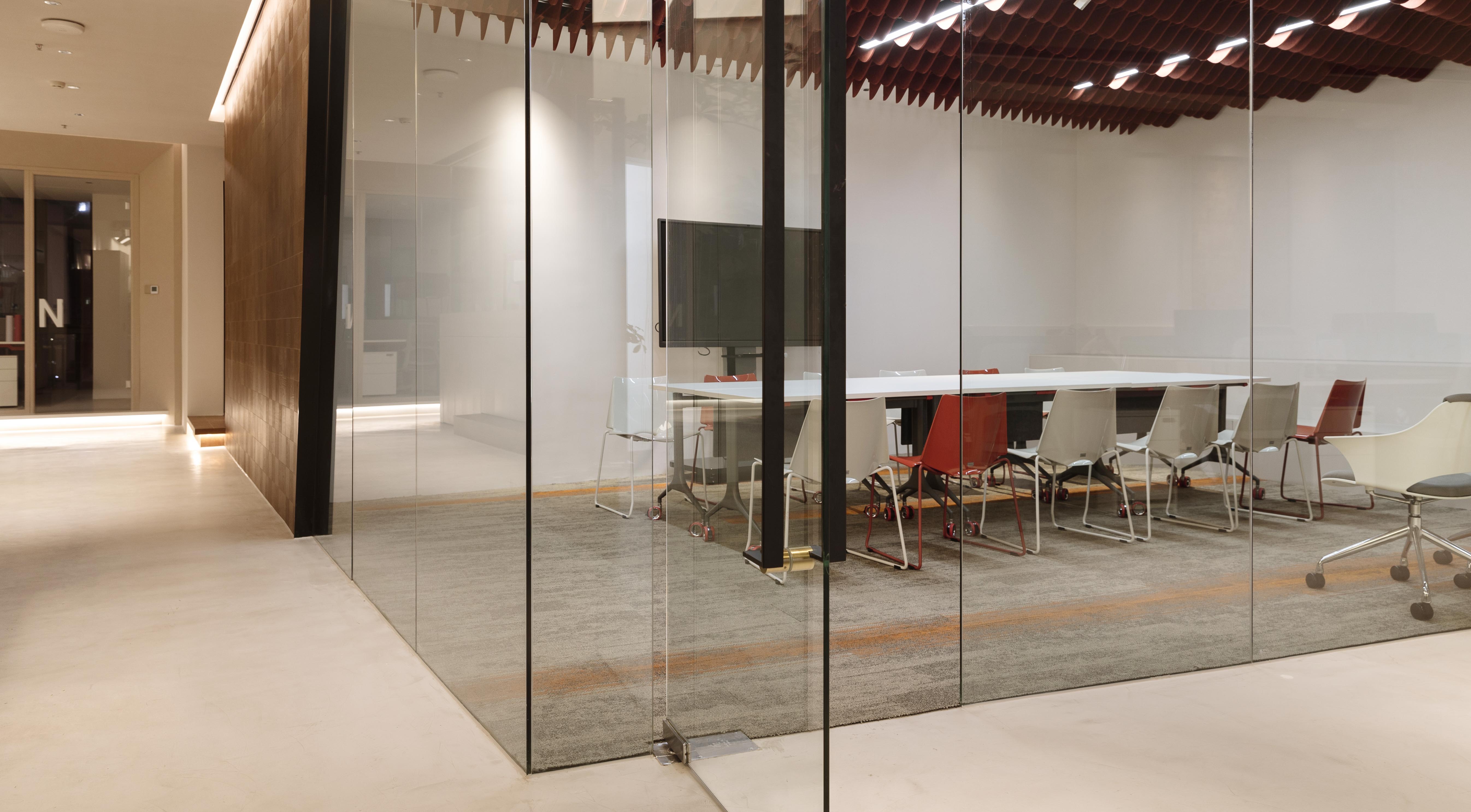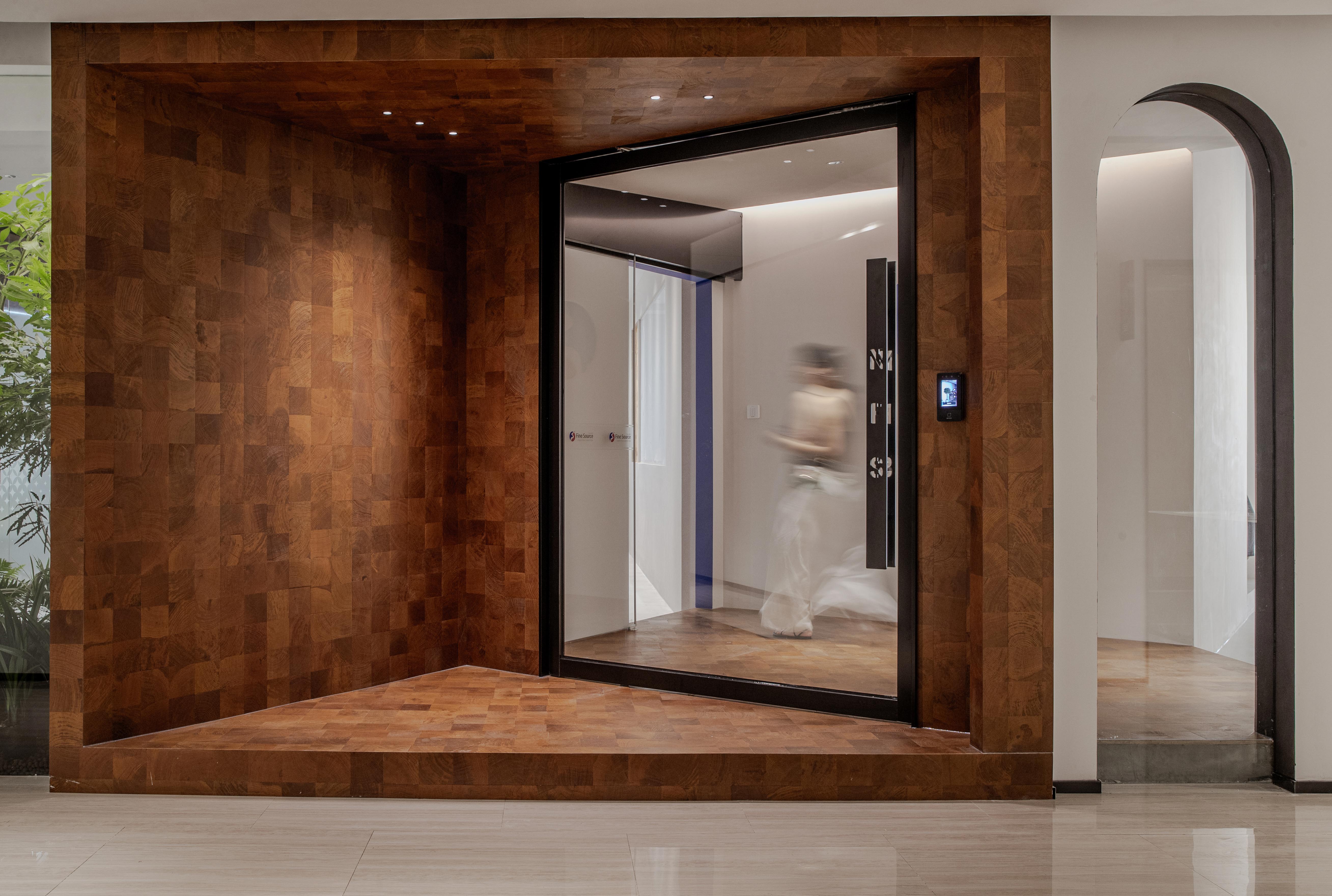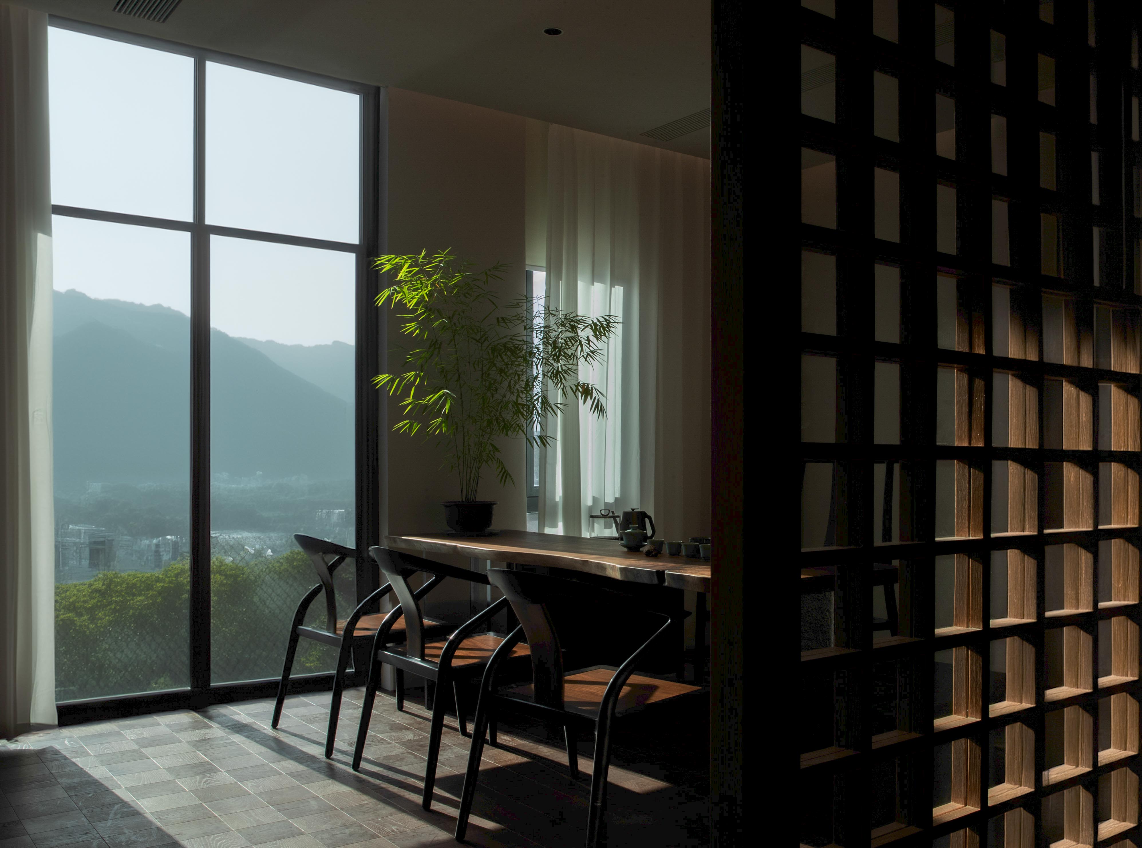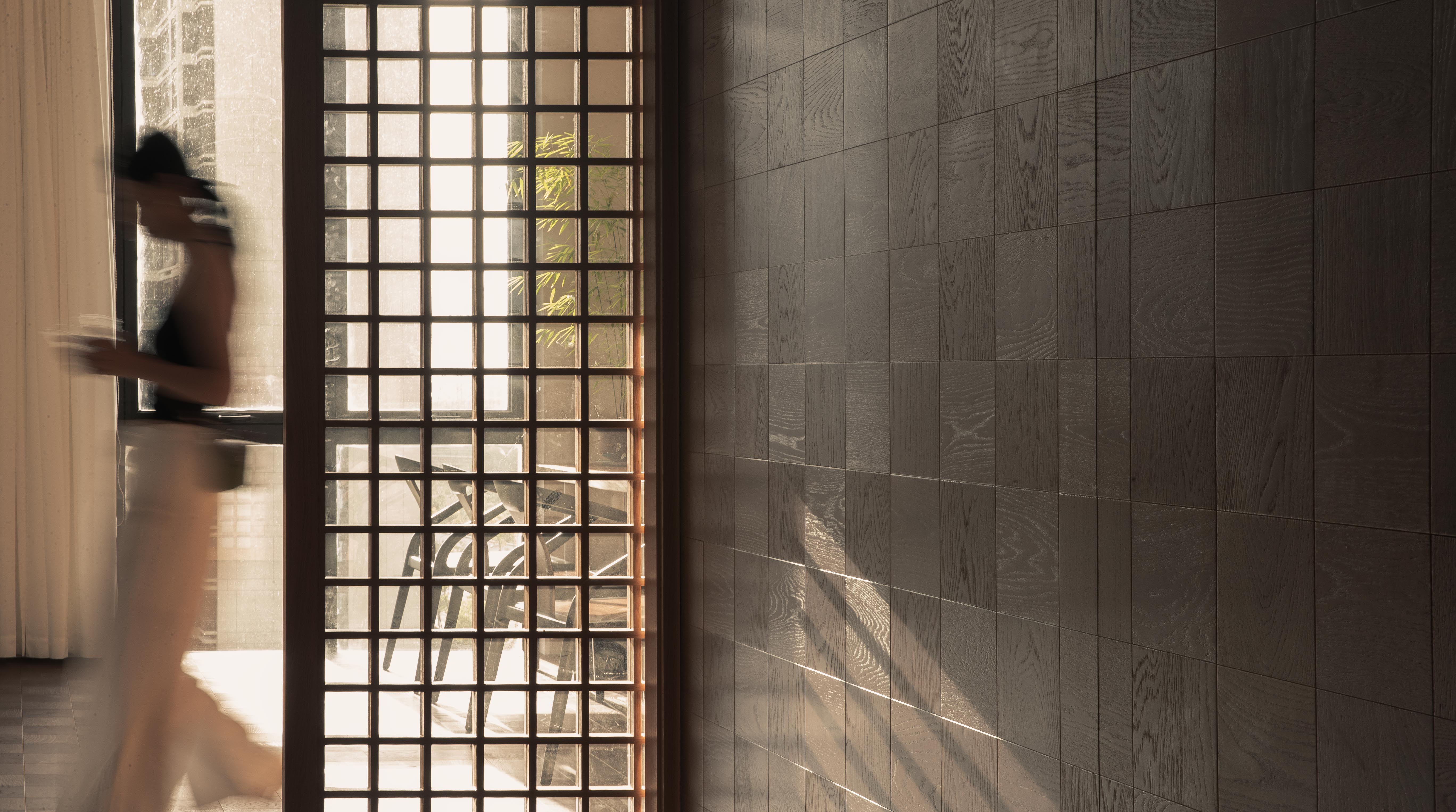 隔栅,以其独特的线条和秩序感,为空间增添了一份精致与优雅。隔栅与玻璃的结合,既保证了空间的通透感,又营造出一种若隐若现的神秘感。