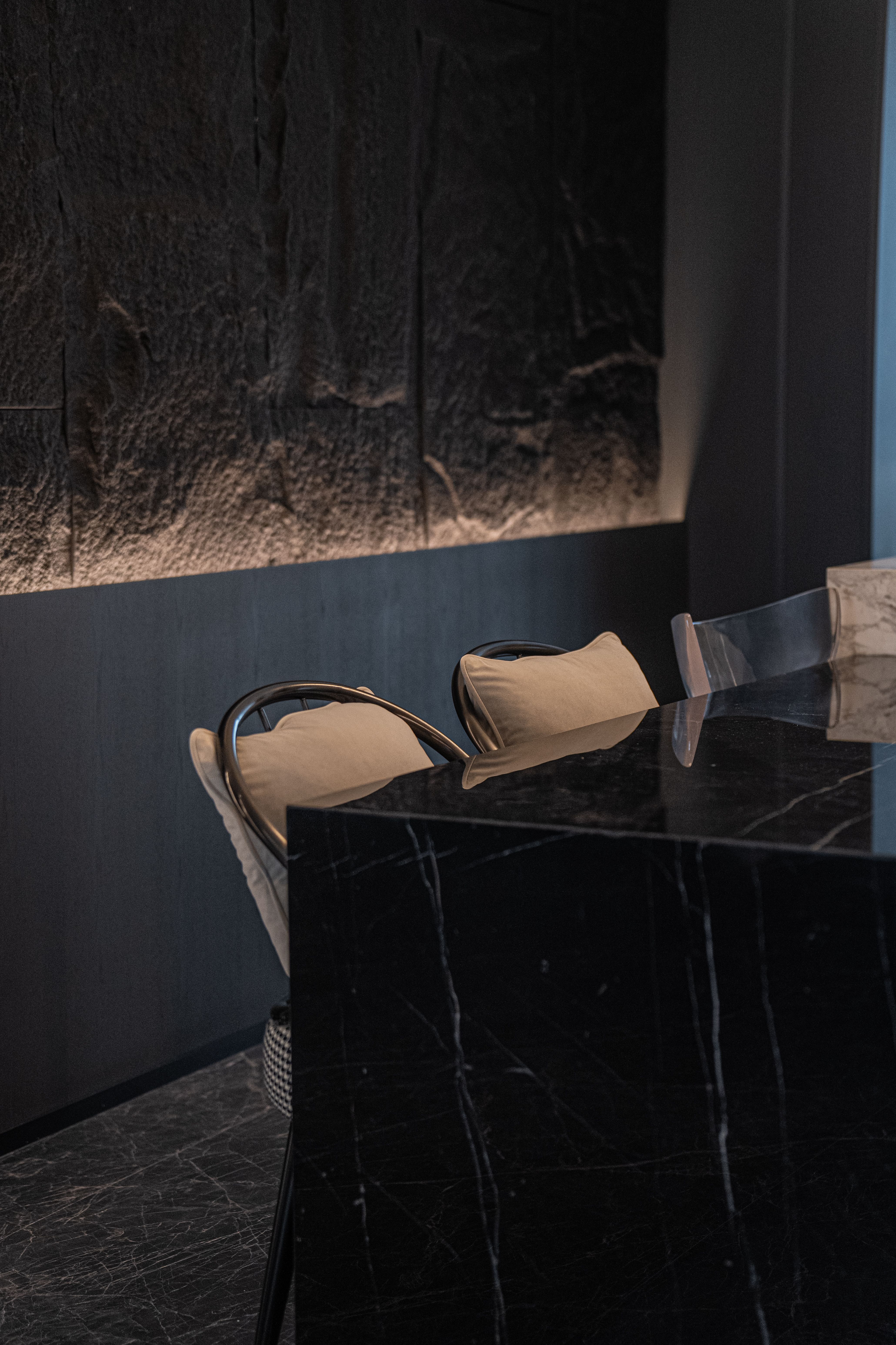 设计选材:此外,暗黑风格的室内设计也注重细节和质感。高品质的家具和装饰品、精致的工艺和细腻的纹理,都是构成这种风格不可或缺的元素。它们共同营造出一种高雅而富有质感的生活环境。