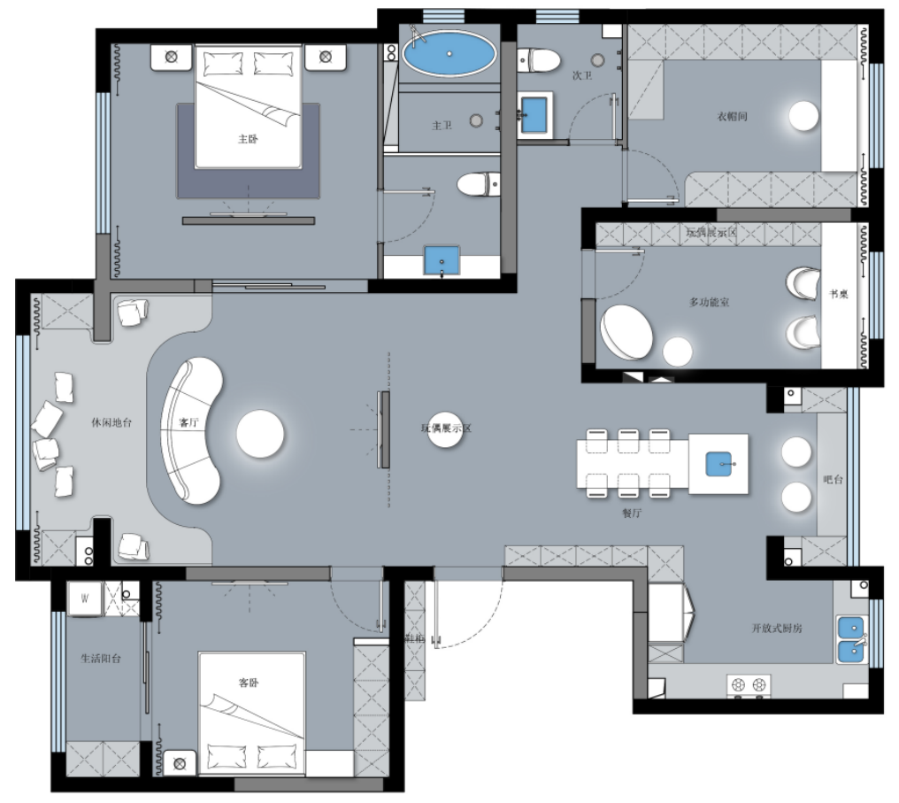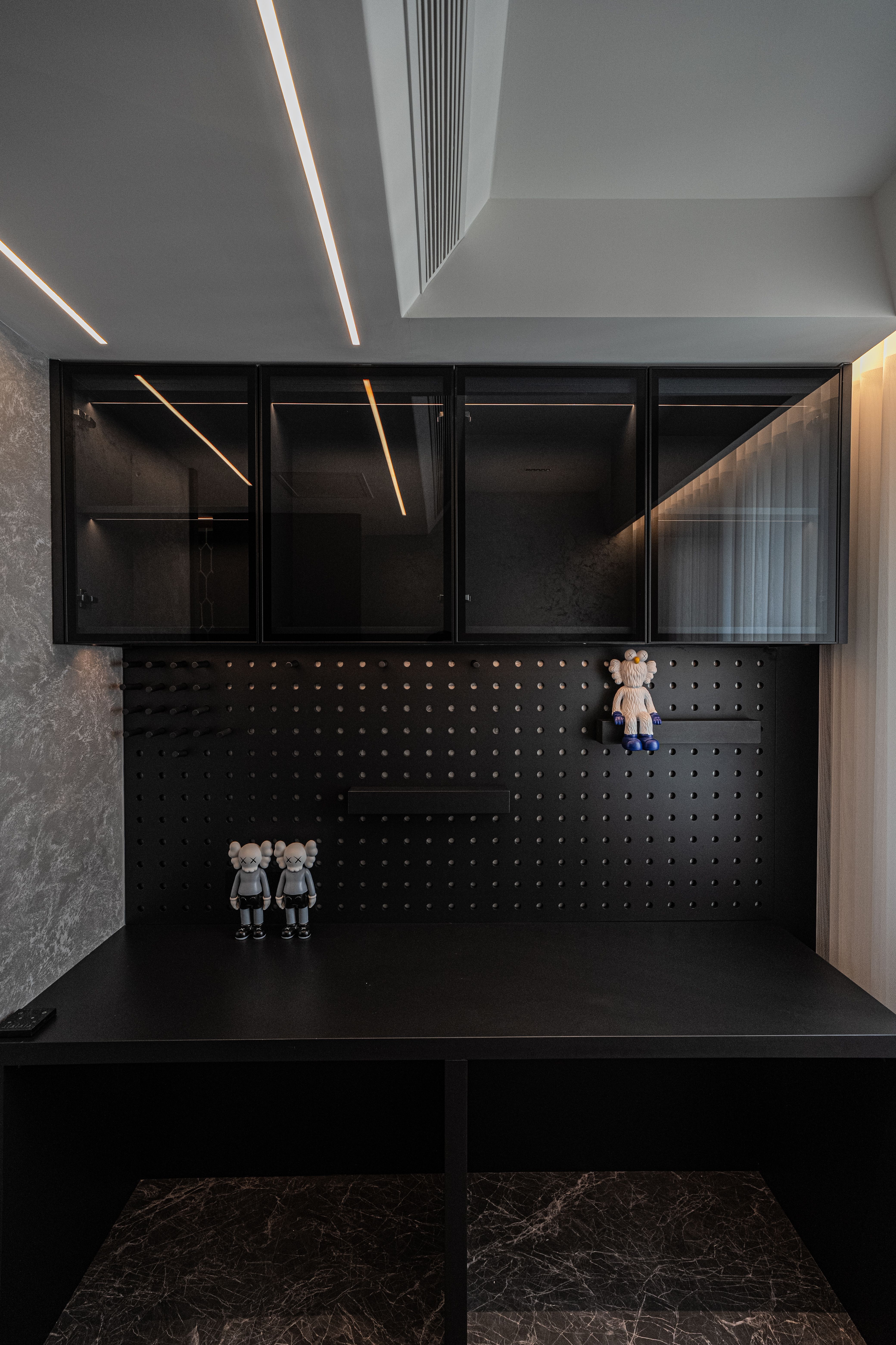 空间布局:然而,暗黑风格并不仅仅意味着沉闷和压抑。在设计中,适当的色彩点缀和材质混搭可以打破单调,增加空间的层次感和趣味性。例如,在深色的主体中加入金属元素或明亮的色彩,既能保持风格的一致性,又能增添些许活泼的气息。
