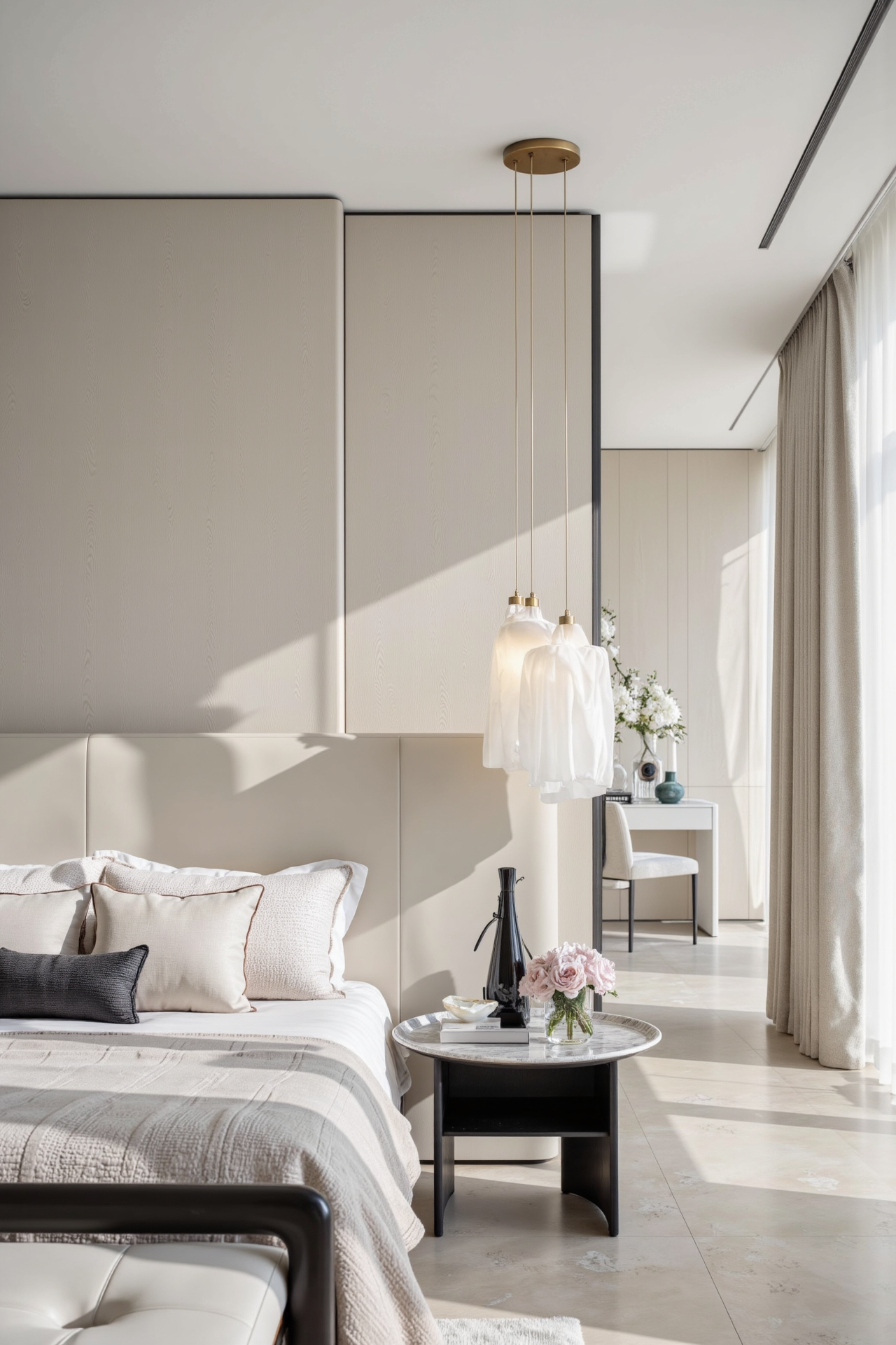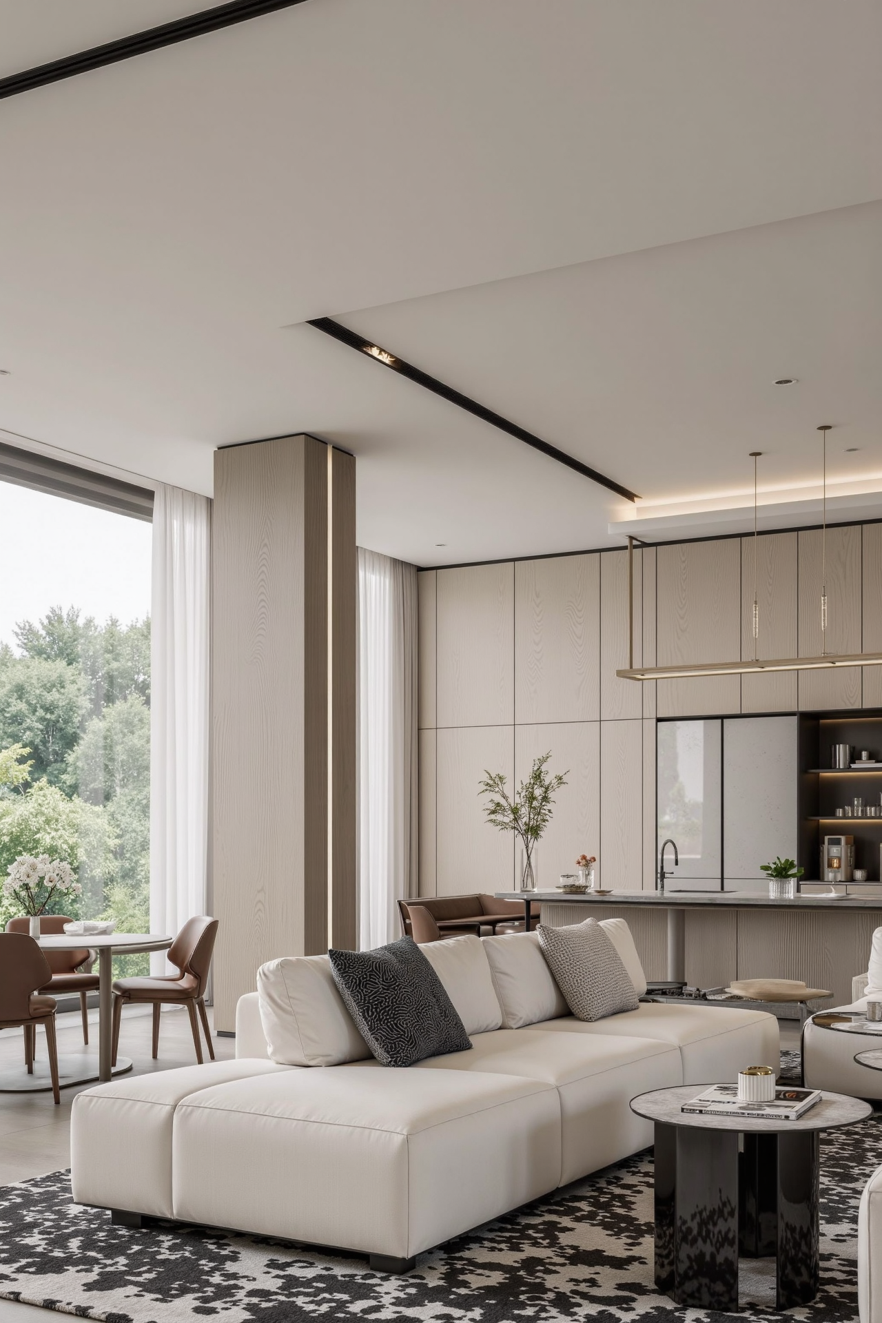 项目定位:这套 200 平现代风格室内设计作品,环境风格创新亮点十足。在色彩运用上,摒弃传统黑白灰主调,采用低饱和度的莫兰迪色系,营造温馨优雅氛围。空间上,打破常规分区,打造开放式洄游动线,使各区域相互交融又独立,增强空间互动性。材质选取独特,将温润的微水泥与光滑的金属板结合,碰撞出工业风与自然风交织的质感。软装搭配上,引入绿植与艺术雕塑,为硬朗的现代空间注入生机与艺术气息,给人焕然一新的居住体验。