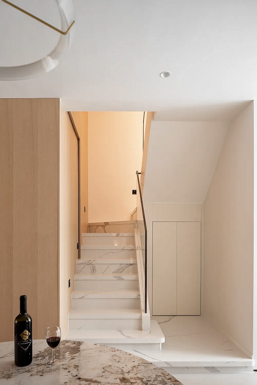 项目定位:这是一套289㎡叠墅,设计灵感来源于极简风格和现代美学,呈现出一片白色纯粹的空间。每一个细节都体现了设计师的细腻用心,带来了舒适的居家体验。