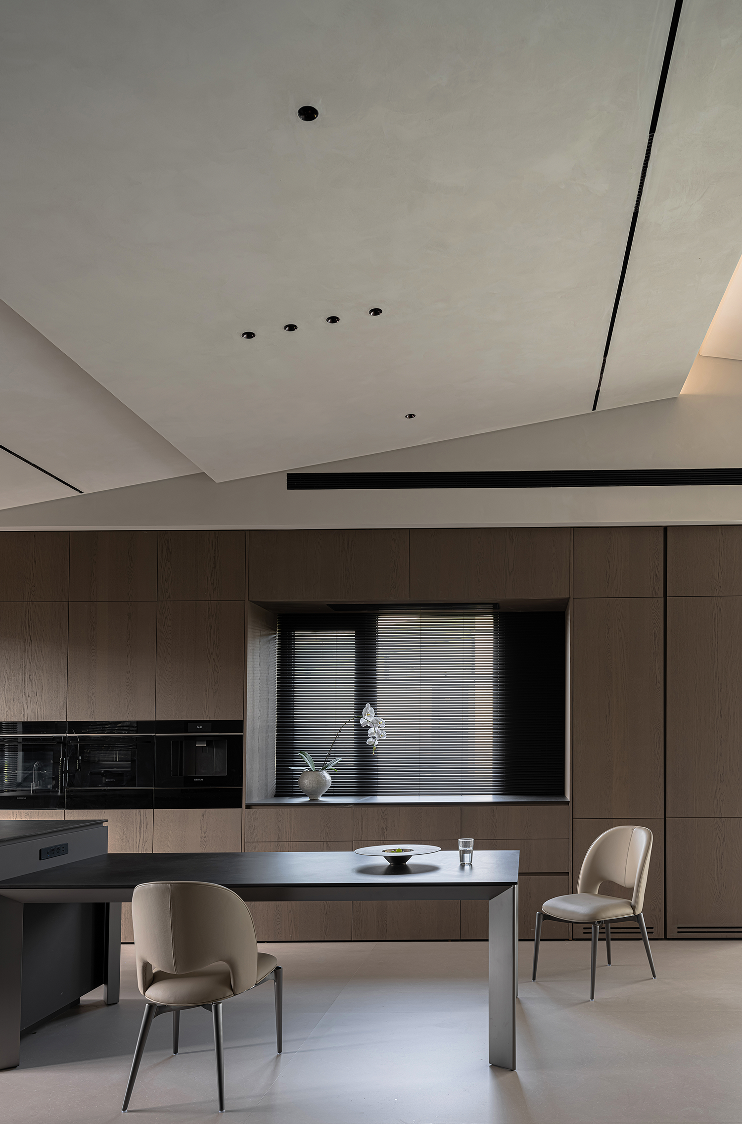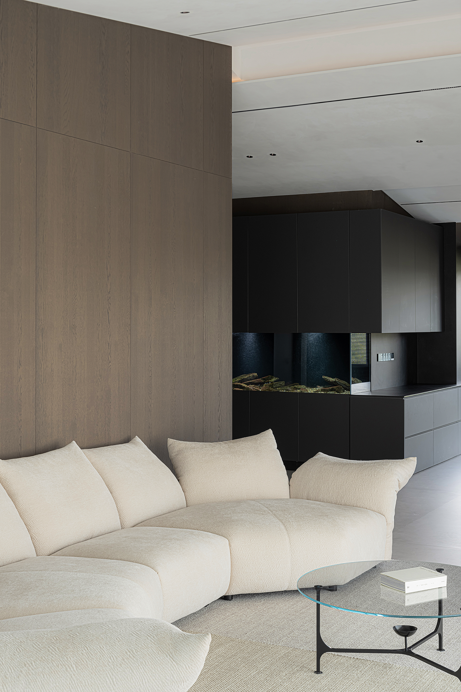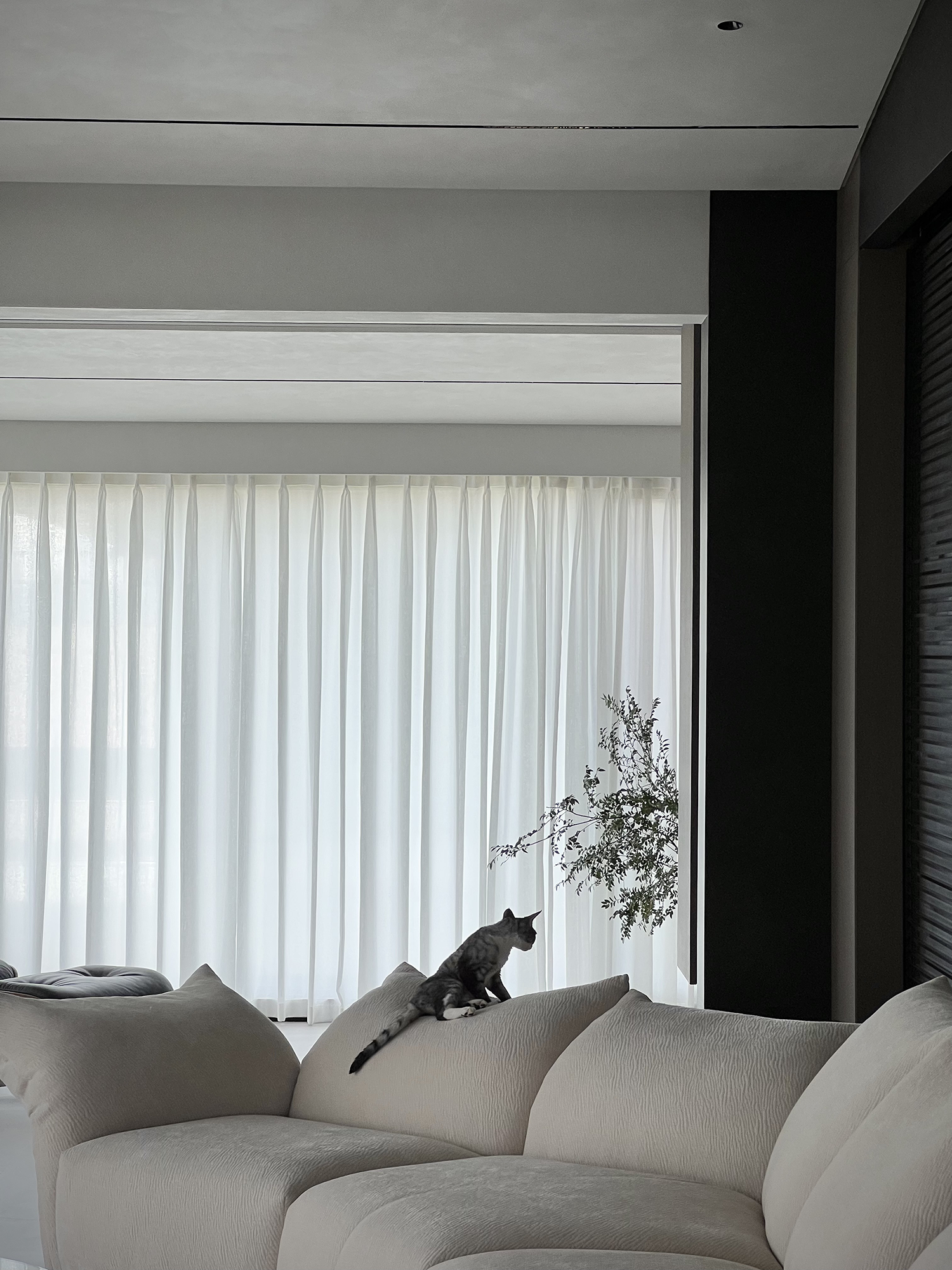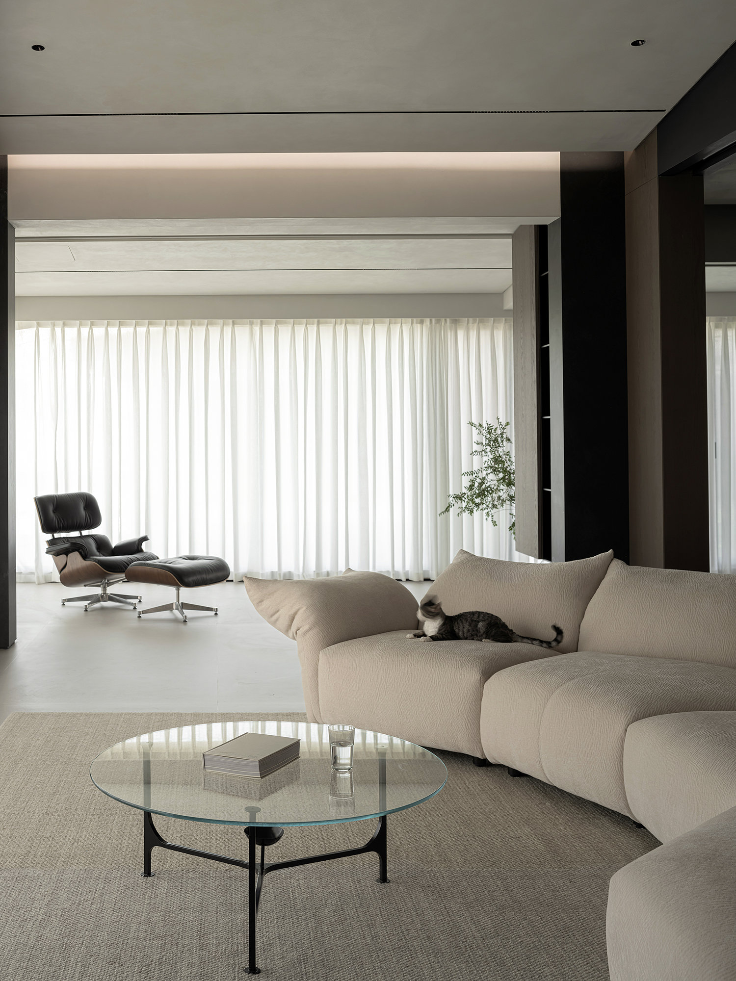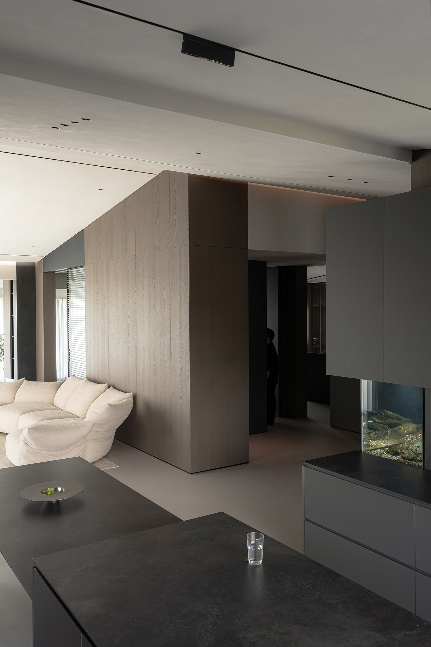 项目定位:屋主是土木工程学博士,购房时,他特意选了融创国宾雅集这套有着缓坡人字形斜屋顶的238㎡户型,他希望这次装修,不仅要发挥出建筑结构的最大优势,同时在意式极简的风格下,打造出一个能够自在养鱼逗猫,包容未来生活变化的温暖明净的家。